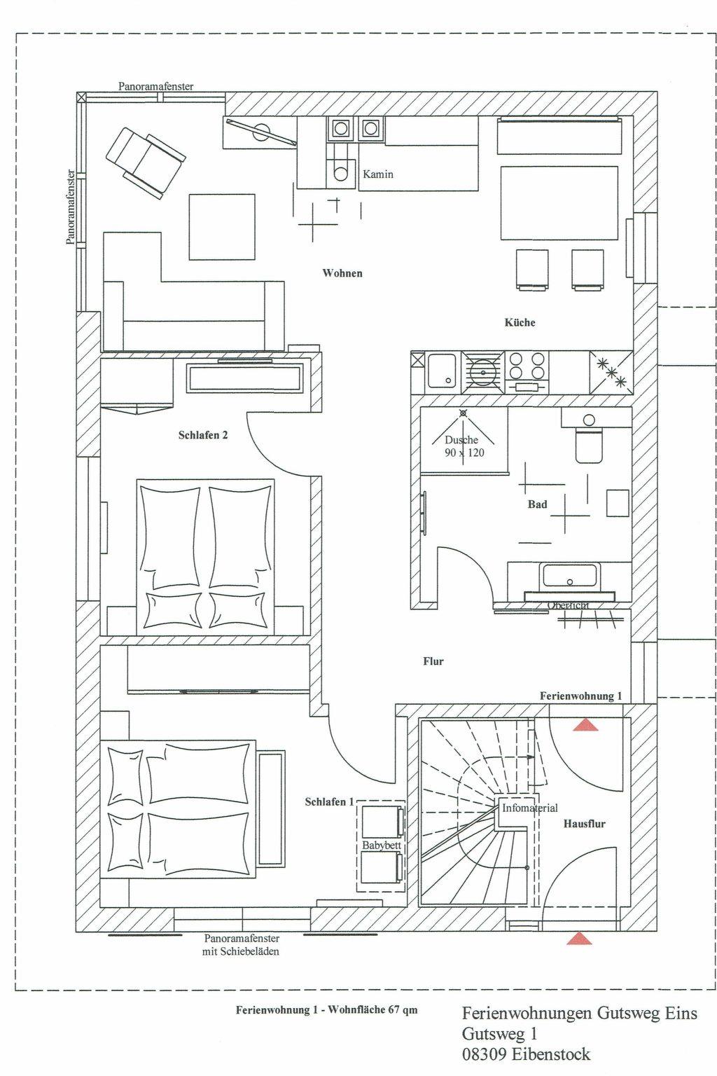 Detached small building complex with 3 holiday flats on the outskirts of Eibenstock in the Westerzgebirge, quietly situated in a side street with little traffic.