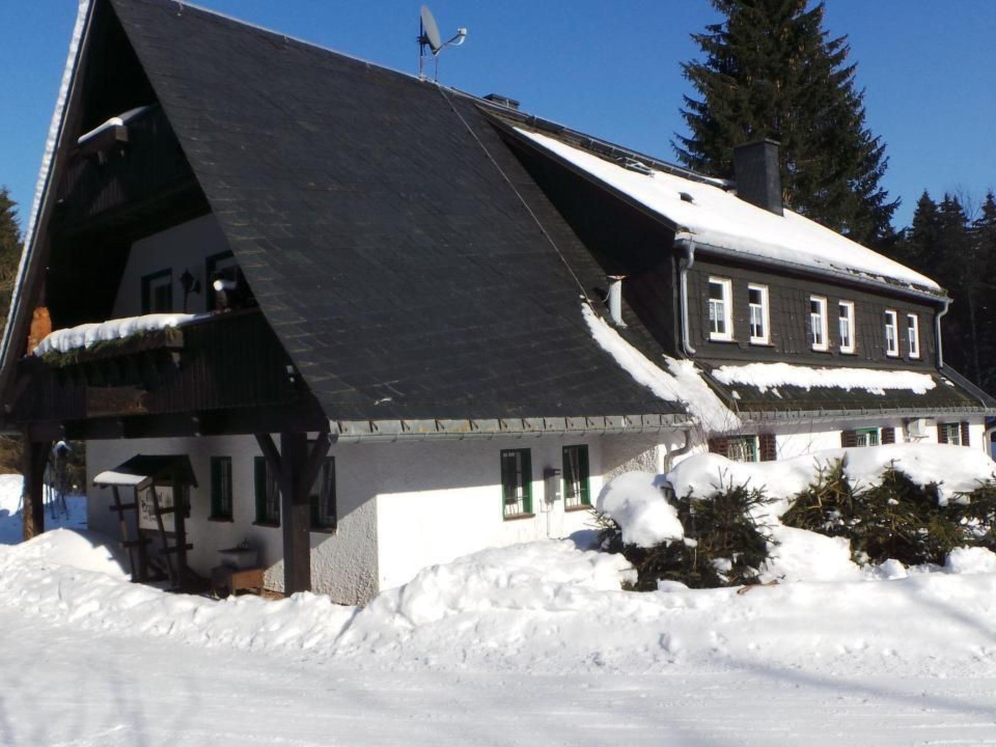 The surrounding area offers a wealth of activities and sights. The holiday apartment is located in Weitersglashütte, a former district of Carlsfeld, and is situated directly on the Westerzgebirge ridgeway. There are nature and landscape conservation areas, clean springs and streams as well as an extensive network of hiking and cycling trails in the immediate vicinity. In winter, the area attracts visitors with a family-friendly ski and toboggan slope in Carlsfeld and the longest groomed ridge trail in Germany. Not far away, the Eibenstock bathing gardens with sauna rituals and massages as well as other cultural and sporting activities invite you to explore.