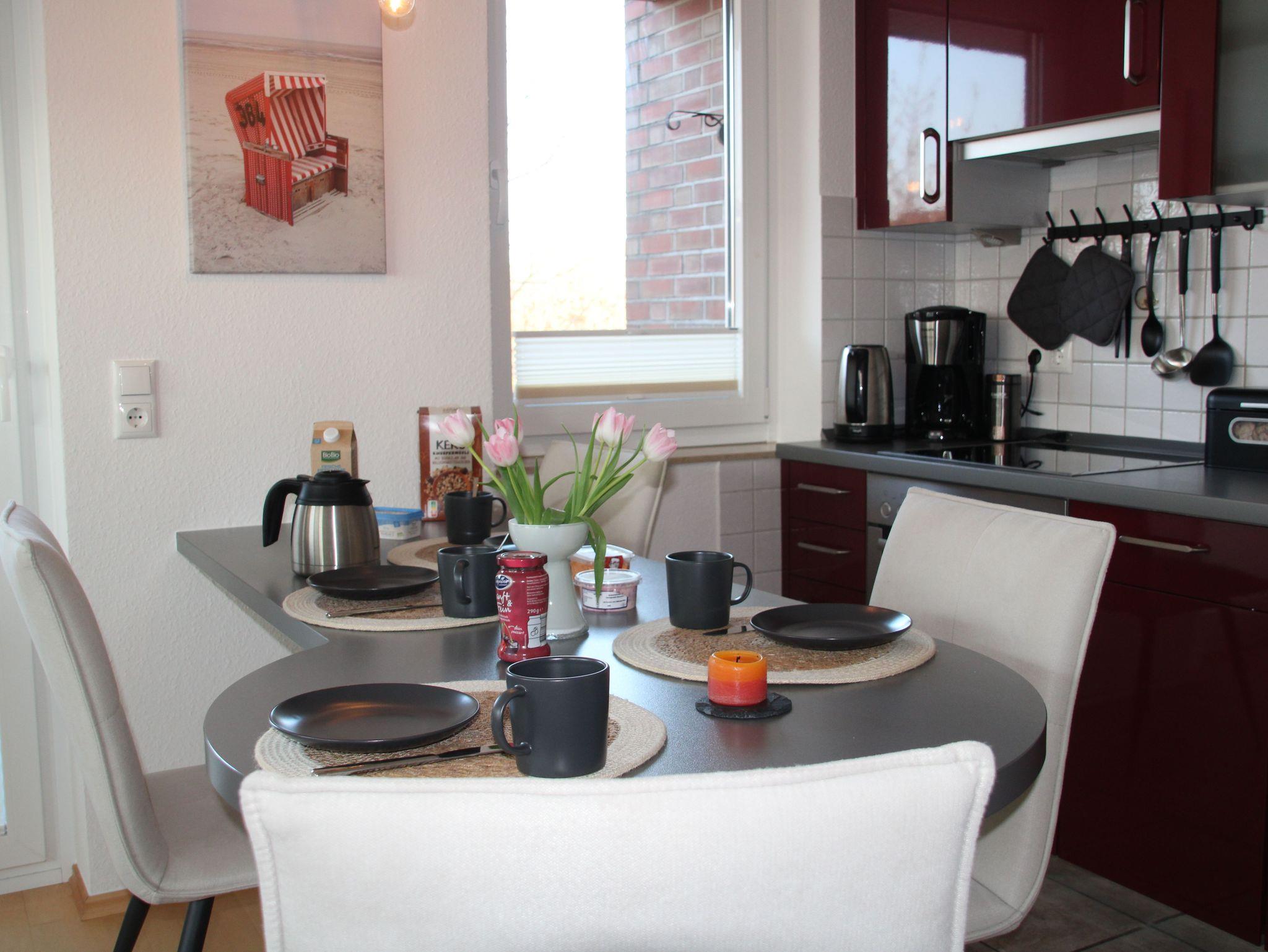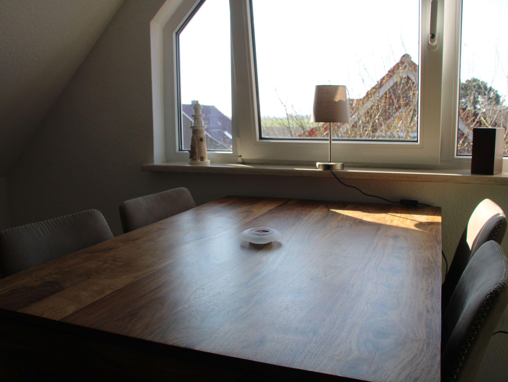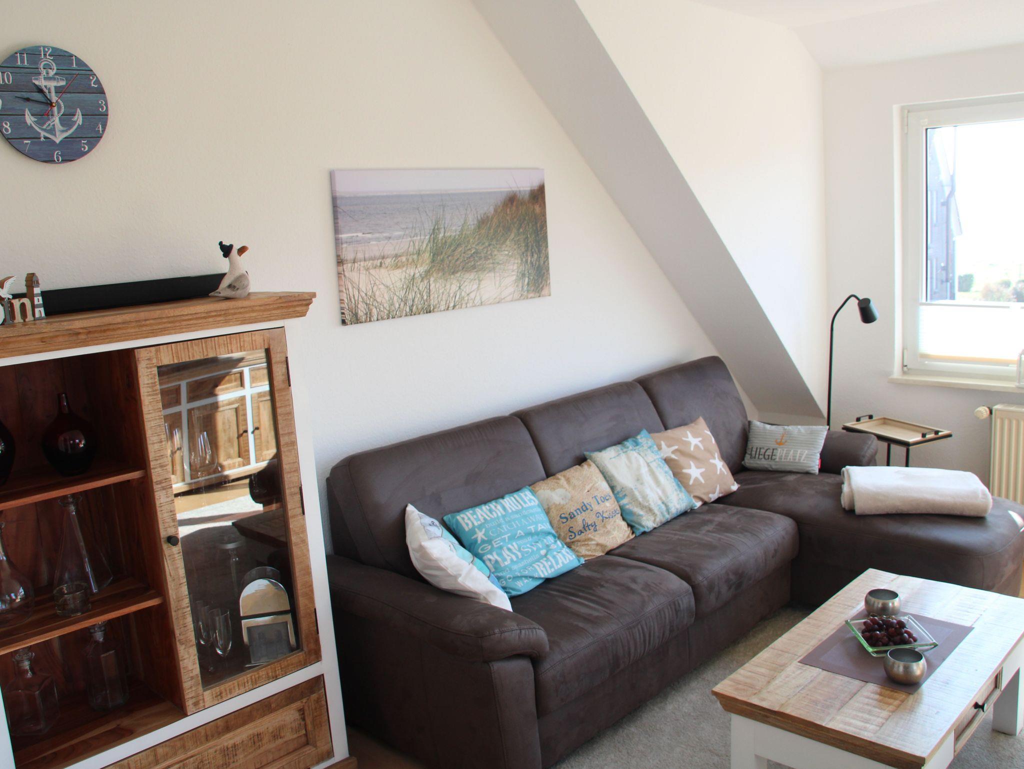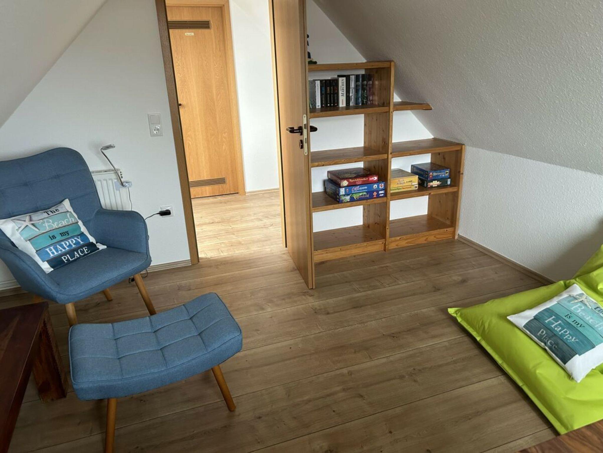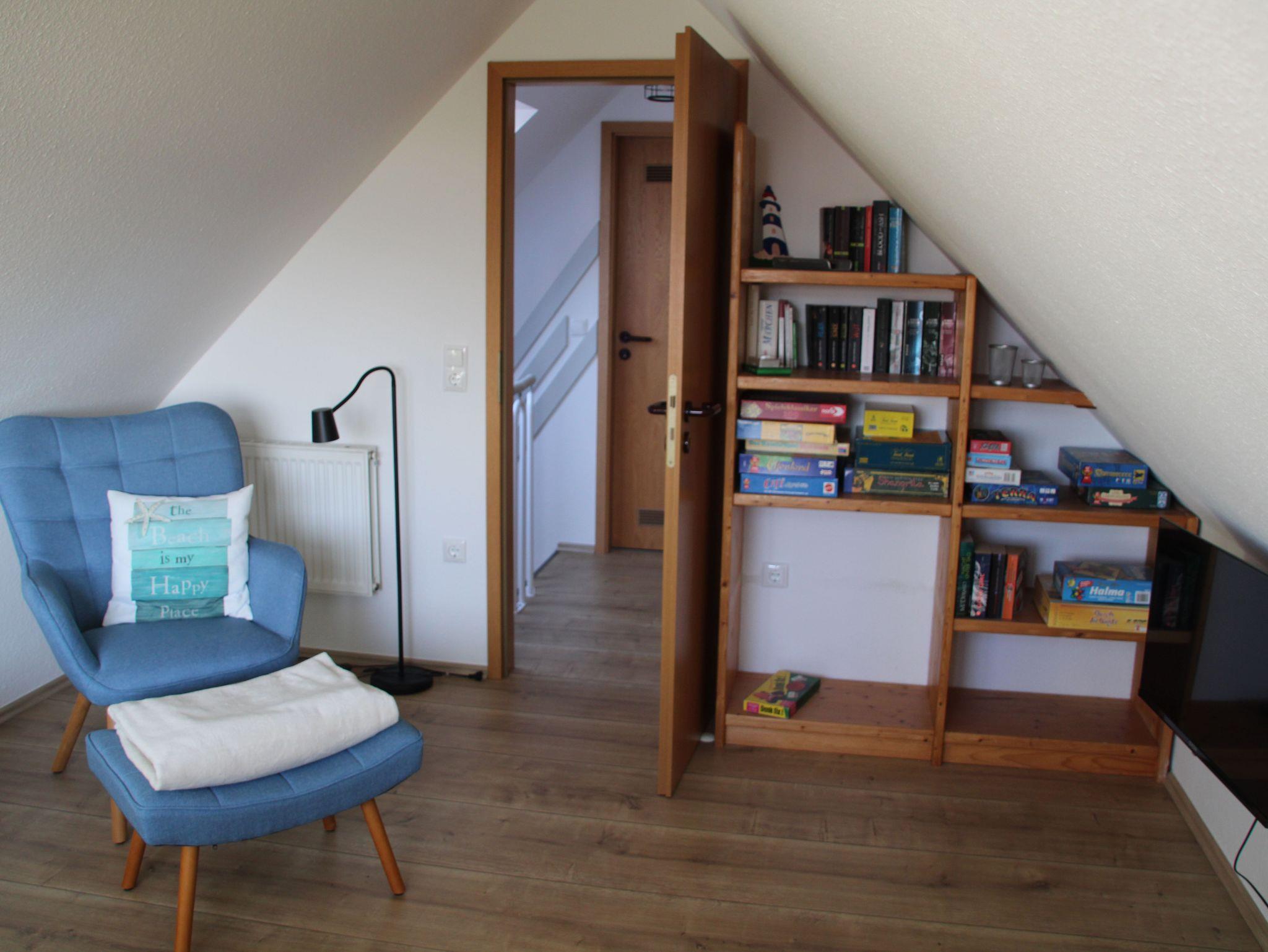 Diese frisch renovierte, modern und liebevoll eingerichtete Ferienwohnung befindet sich in einer ruhigen Sackgasse in unmittelbarer Nähe zur Harle und dem Fährhafen Wangerooge. Die Wohnung erstreckt sich über das Ober- und Dachgeschoss und ist für 1 - 4 Personen plus Baby geeignet. Ein Babybett und Hochstuhl sind vorhanden. Im Obergeschoss befinden sich zwei separate Schlafzimmer, das modere Duschbad inkl. Waschmaschine, die vollausgestattete Wohnküche (Herd, Backofen, Geschirrspüler, Kühlschrank, Mikrowelle, Toaster, Kaffeemaschine, Wasserkocher), eine Loggia (Südwestausrichtung) mit Gartenmöbeln und ein kleiner Abstellraum. Im Dachgeschoss befindet sich ein Raum, der dazu einlädt, im Lesesessel zu entspannen, am Tisch die vorhandenen Brettspiele auszuprobieren oder auf dem internetfähigen (Zweit-) Fernseher einen Film anzuschauen.