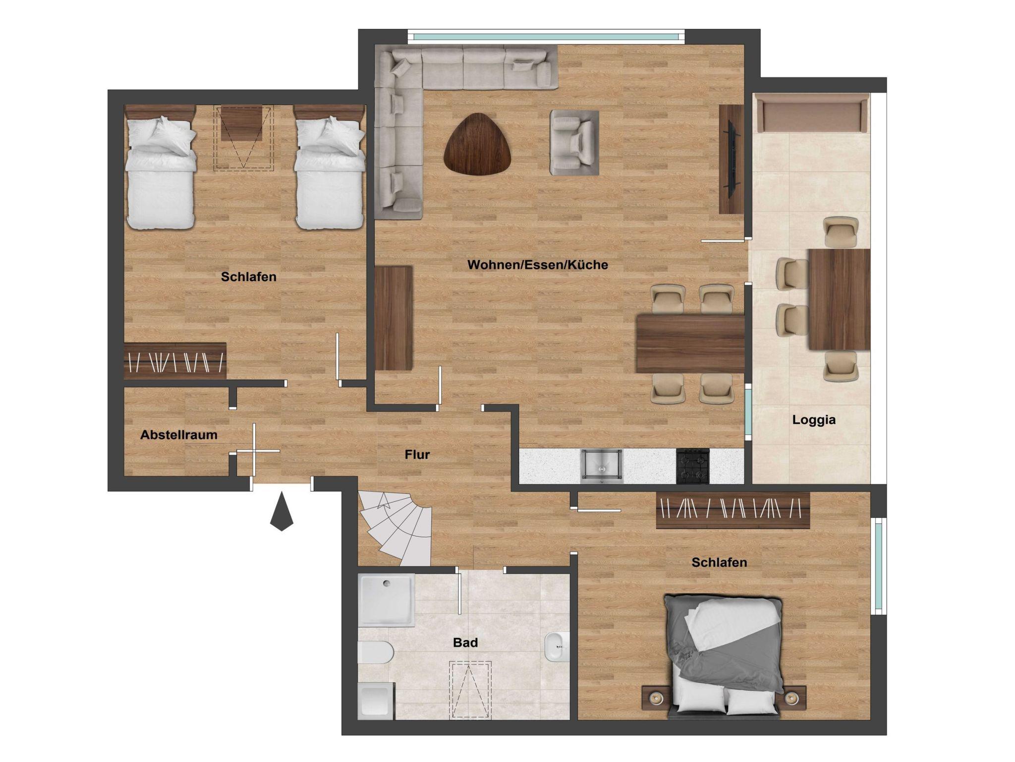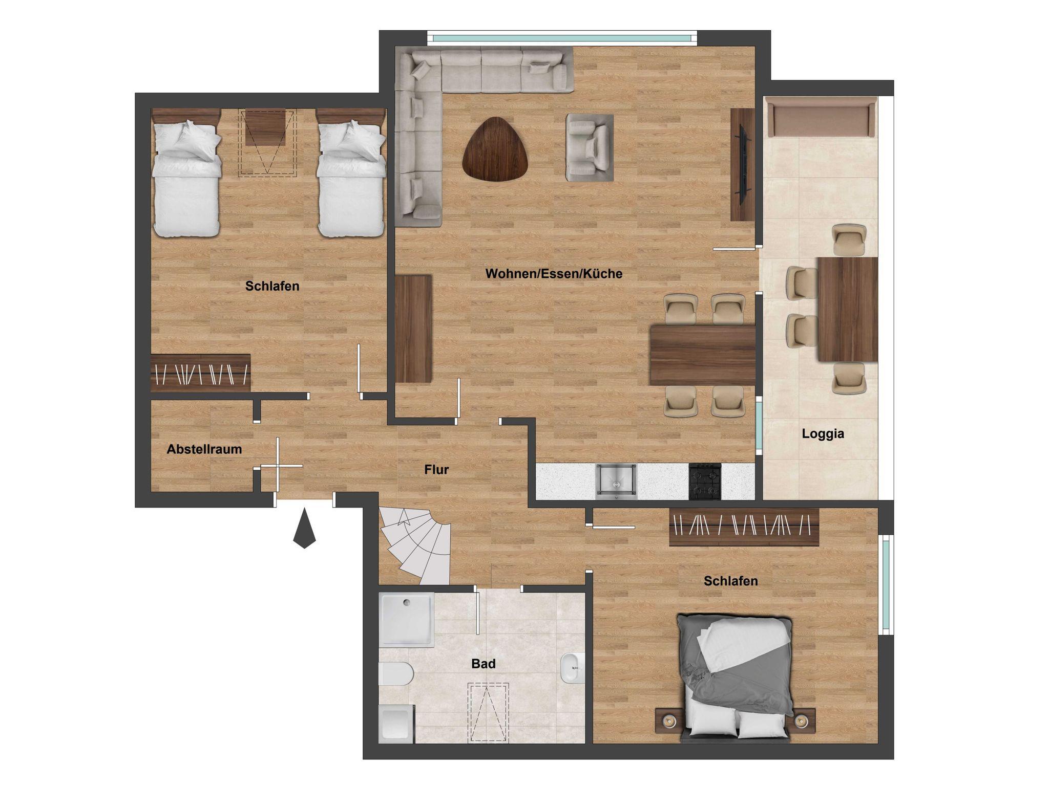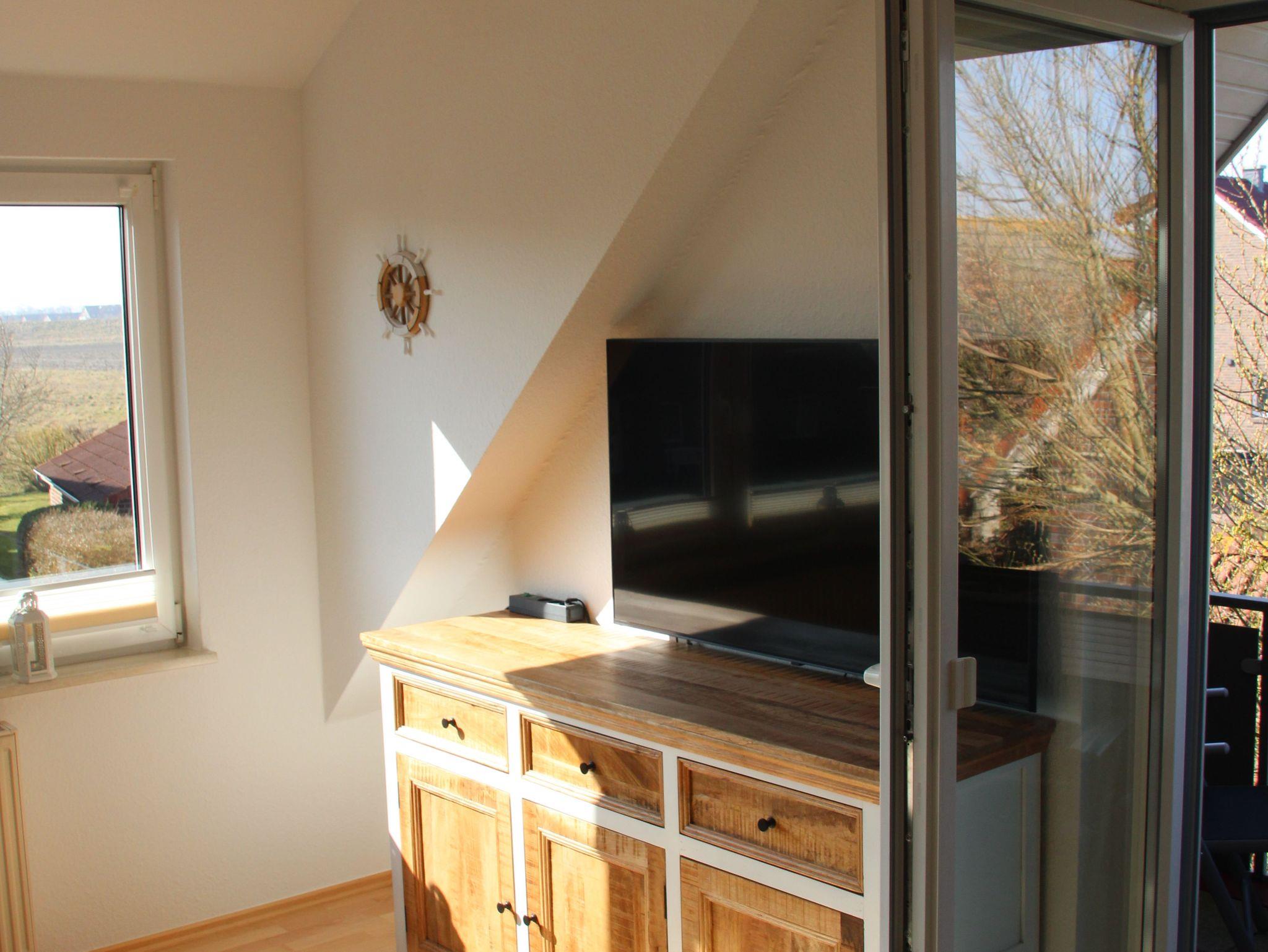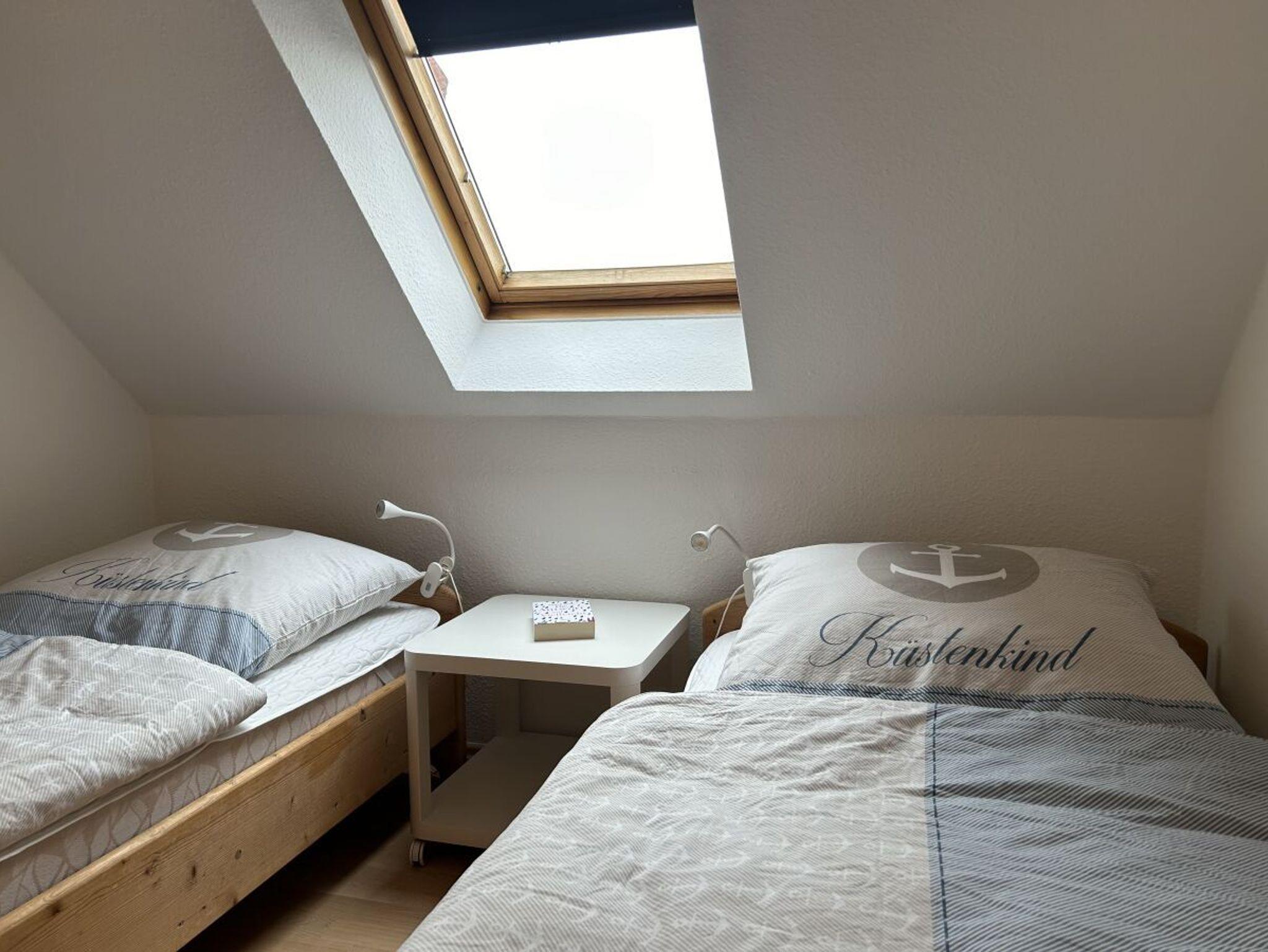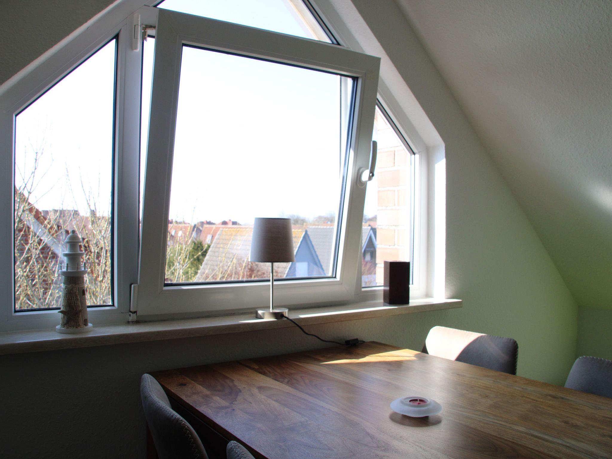 Diese frisch renovierte, modern und liebevoll eingerichtete Ferienwohnung befindet sich in einer ruhigen Sackgasse in unmittelbarer Nähe zur Harle und dem Fährhafen Wangerooge. Die Wohnung erstreckt sich über das Ober- und Dachgeschoss und ist für 1 - 4 Personen plus Baby geeignet. Ein Babybett und Hochstuhl sind vorhanden. Im Obergeschoss befinden sich zwei separate Schlafzimmer, das modere Duschbad inkl. Waschmaschine, die vollausgestattete Wohnküche (Herd, Backofen, Geschirrspüler, Kühlschrank, Mikrowelle, Toaster, Kaffeemaschine, Wasserkocher), eine Loggia (Südwestausrichtung) mit Gartenmöbeln und ein kleiner Abstellraum. Im Dachgeschoss befindet sich ein Raum, der dazu einlädt, im Lesesessel zu entspannen, am Tisch die vorhandenen Brettspiele auszuprobieren oder auf dem internetfähigen (Zweit-) Fernseher einen Film anzuschauen.