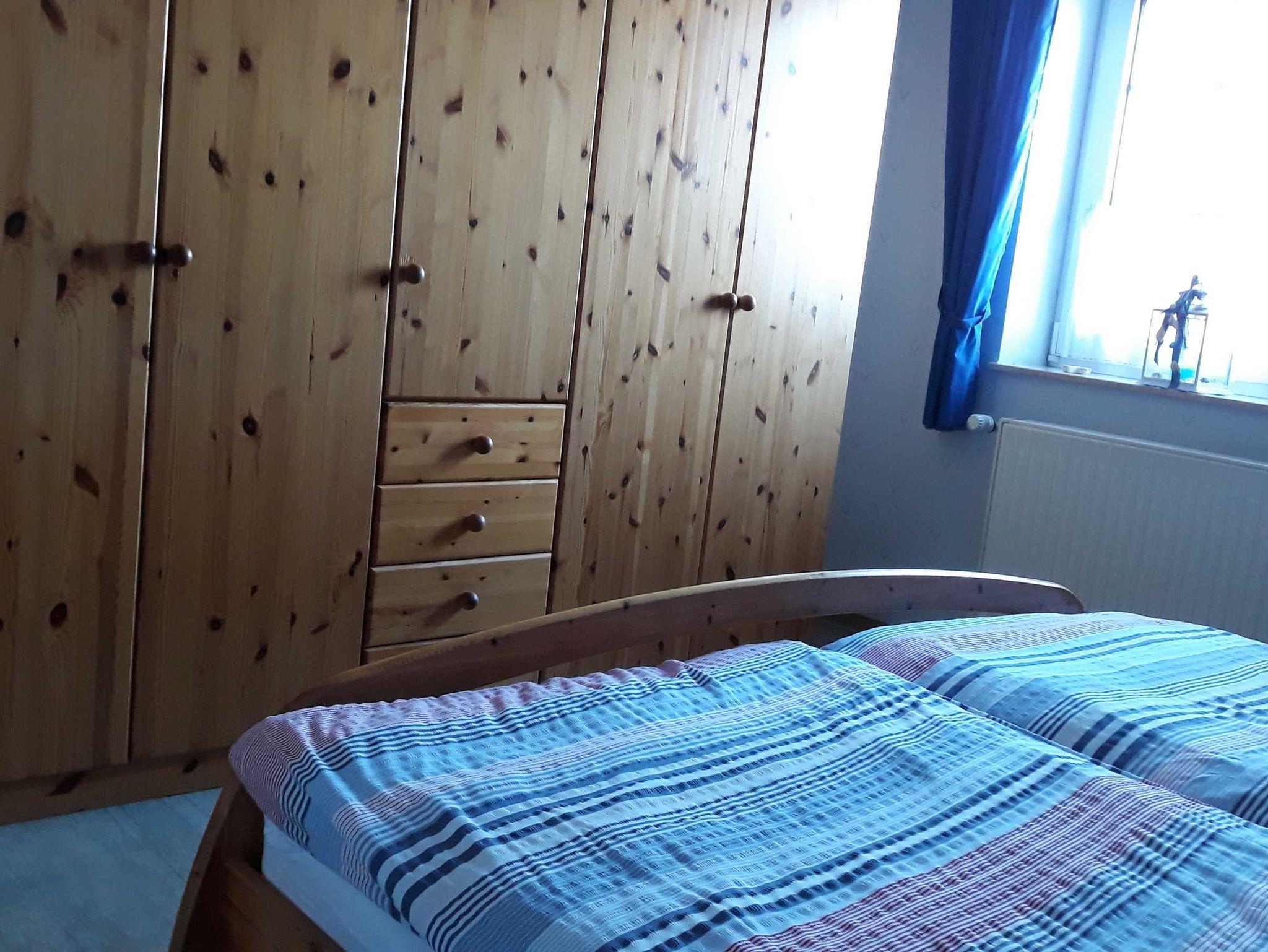 Die allergikerfreundliche Ferienwohnung mit 2 Schlafzimmern ist gemütlich und hell eingerichtet und bietet ein Bad mit Dusche/WC und Reisefön. Das eine Schlafzimmer verfügt über ein 1,80x200 m Doppelbett mit 2 Matratzen und großen Schrank. In dem 2. Schlafzimmer steht ein 90x1,90 m Einzelbett und Schrank. Dort befindet sich auch eine gemütliche Leseecke. Die Wohnküche ist hell und geräumig. Sie wurde ausgestattet mit einer komplett eingerichteten Einbauküche inkl. Backofen. Der Essplatz befindet sich am Fenster und das Ecksofa mit Couchtisch lädt zur Entspannung ein. Die Wohnung verfügt in allen Räumen über freundlichen Vinyl-Laminatboden.