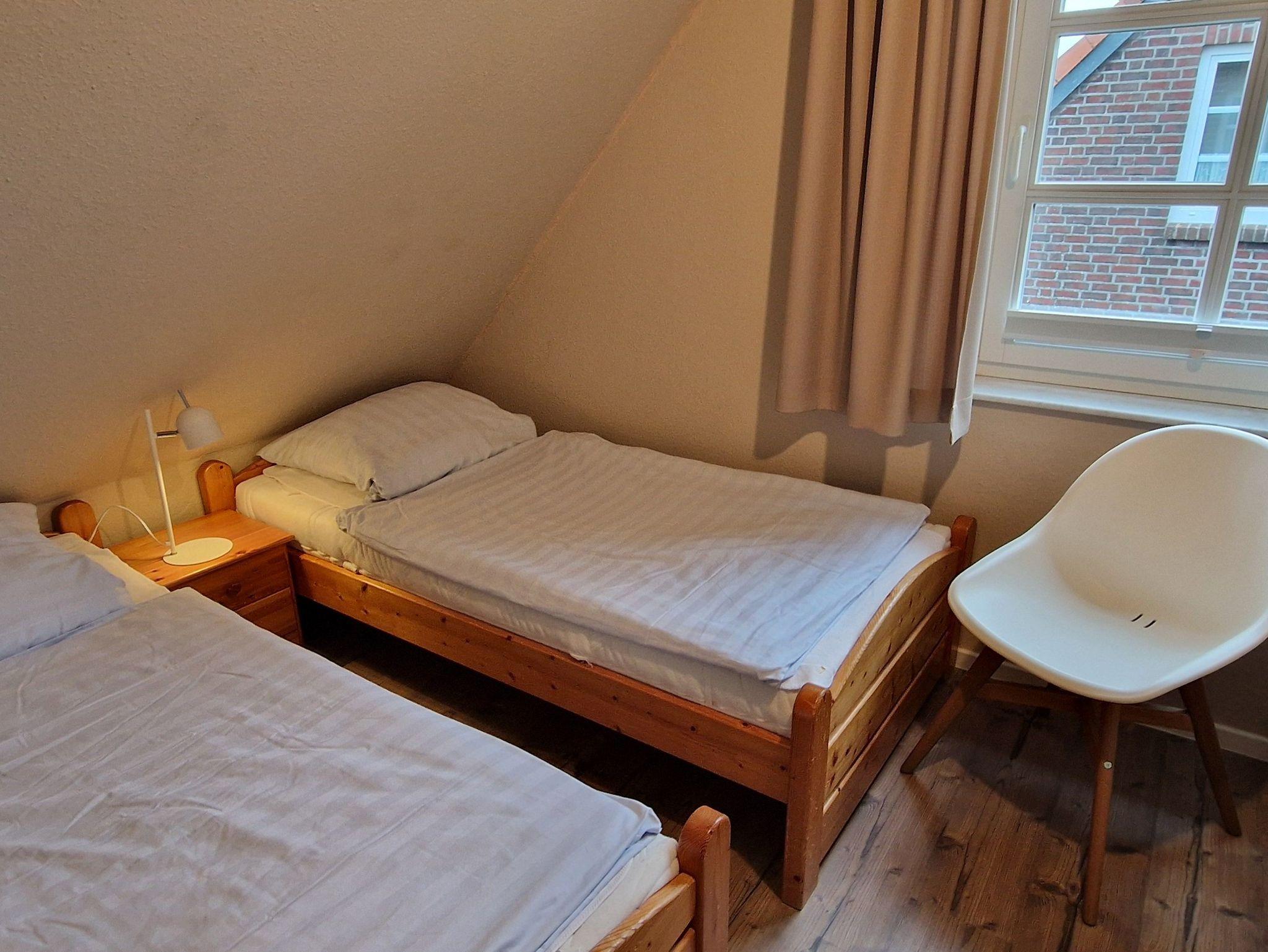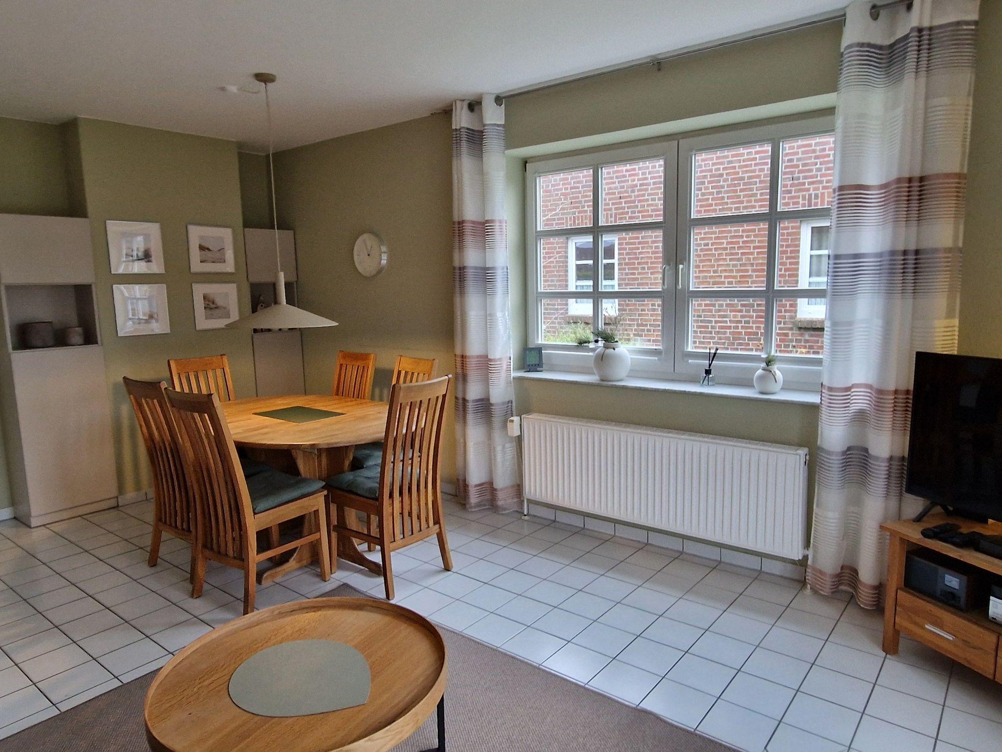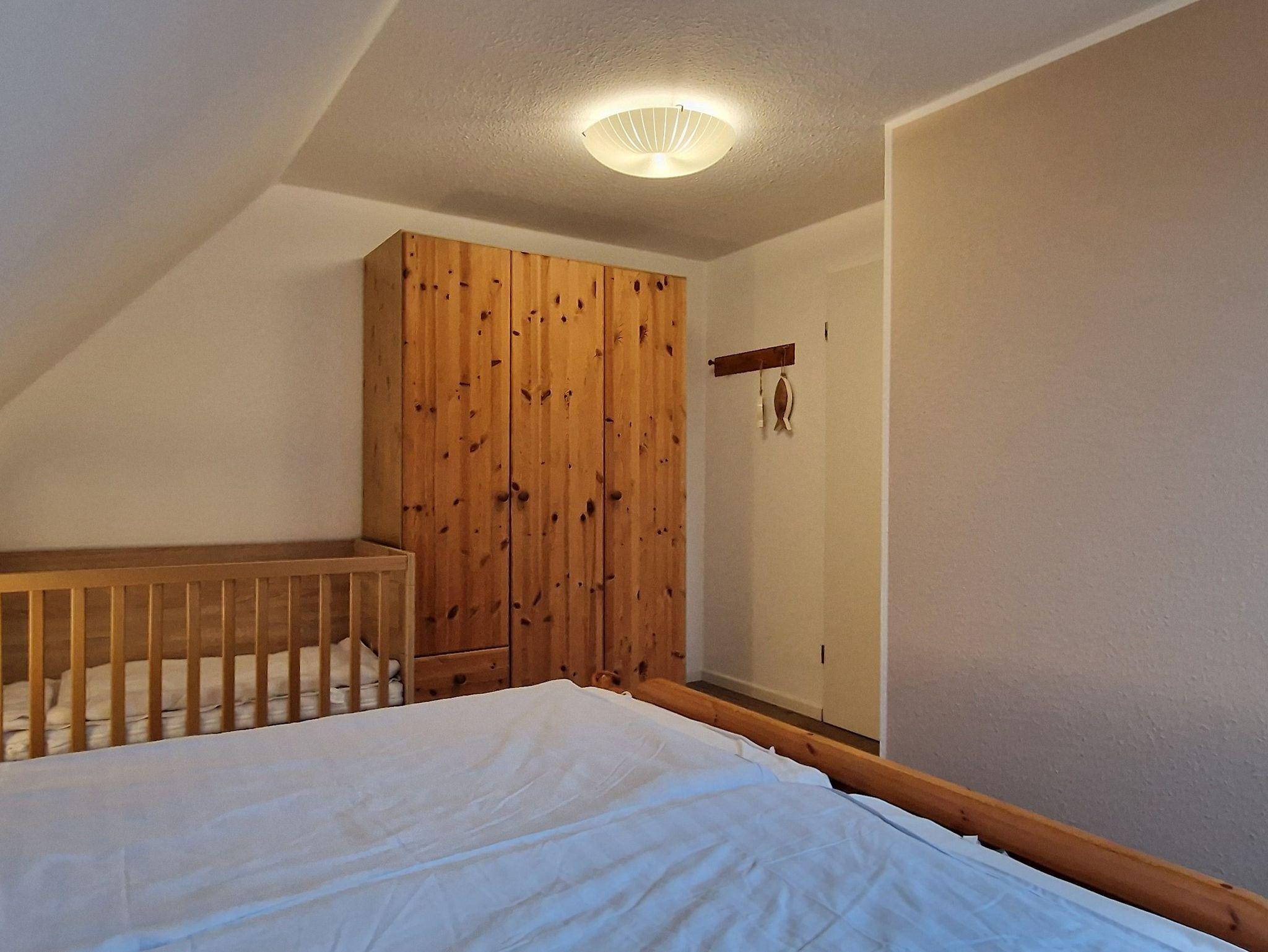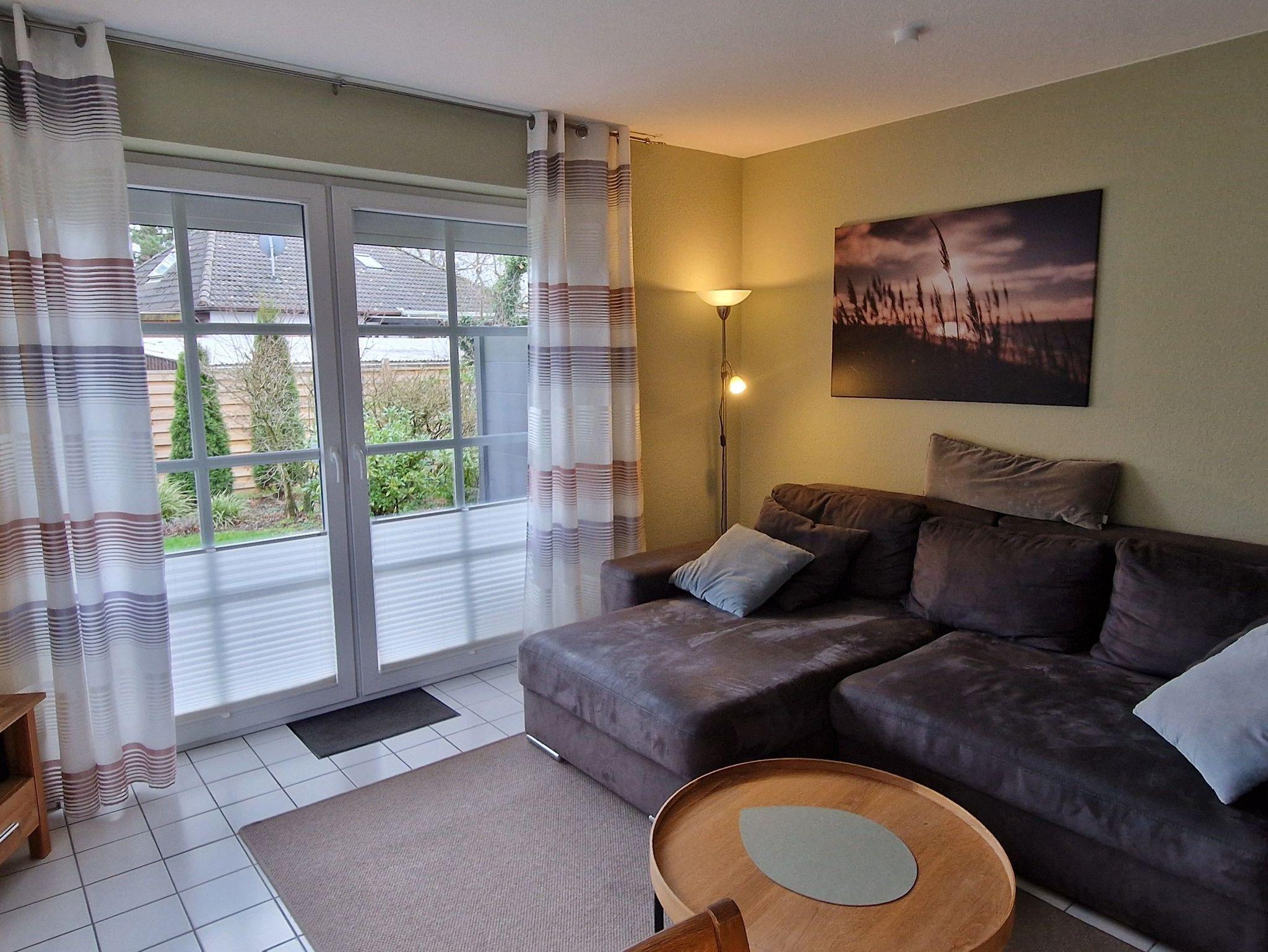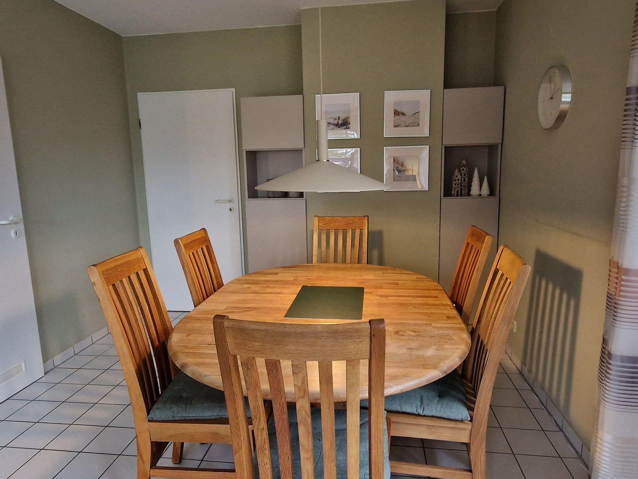 Die Doppelhaushälfte ist ansprechend und modern ausgestattet und bietet Platz für bis zu 6 Personen und ein Baby/Kleinkind. Im Erdgeschoss befinden sich ein großer Wohn- und Essbereich mit Ausgang zur Südterrasse, eine separate, vollständig ausgestattete Küche sowie ein Gäste-WC. Das 1. Obergeschoss verfügt über ein Schlafzimmer mit Doppelbett und ein Schlafzimmer mit zwei Einzelbetten sowie über ein Badezimmer mit Dusche und WC. In einem Dachstudio stehen zwei weitere Einzelbetten zur Verfügung. Die Böden des Ferienhauses sind mit Fliesen bzw. Laminat ausgestattet. WLAN steht Ihnen kostenfrei zur Verfügung.