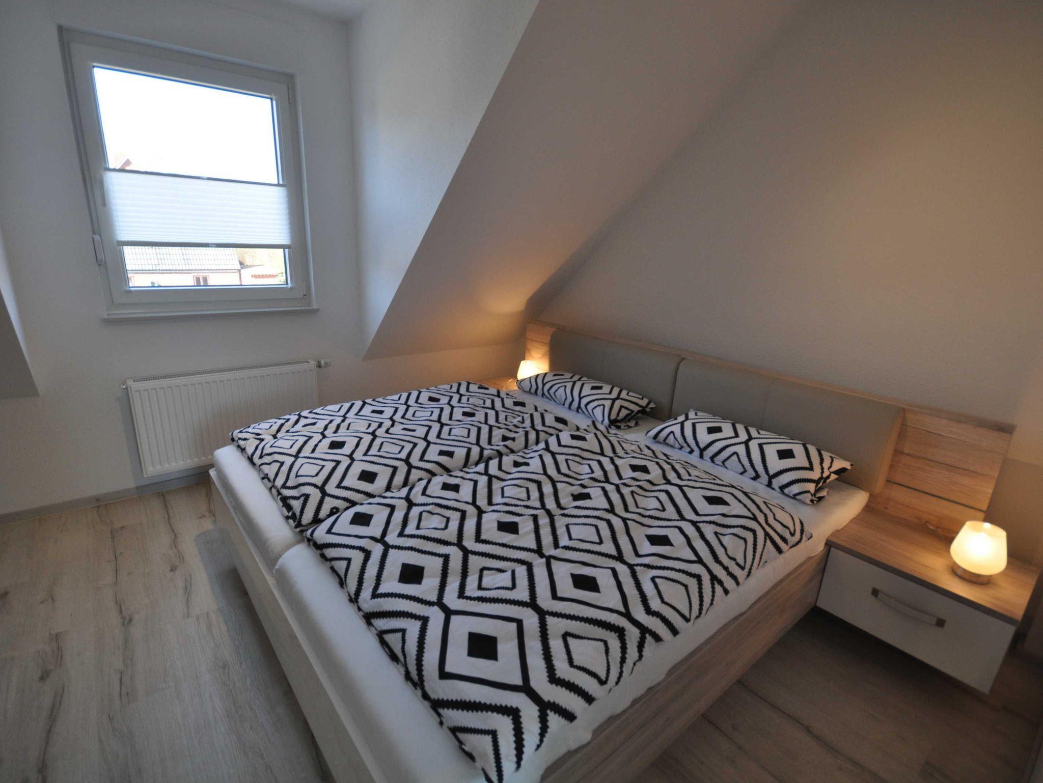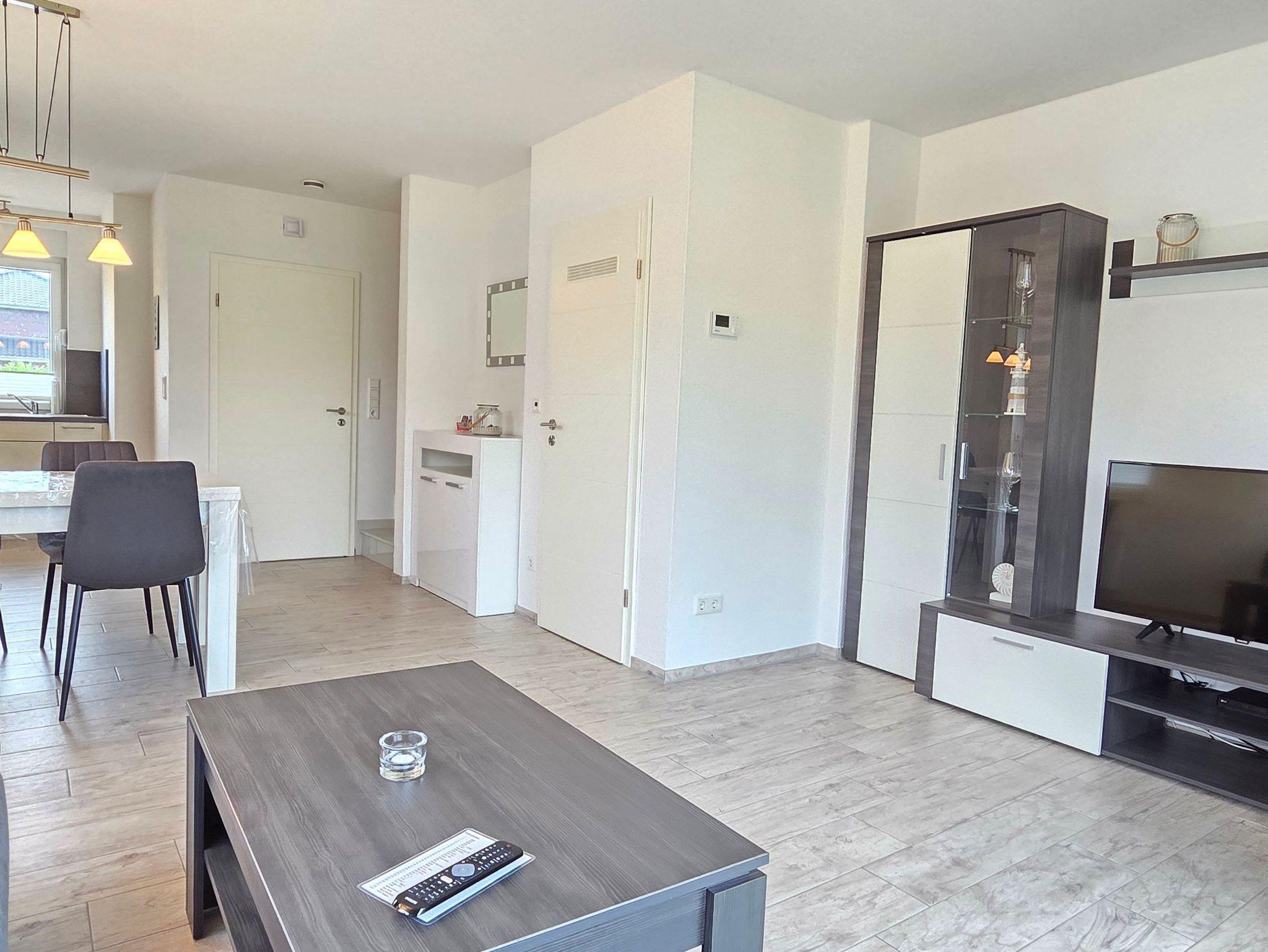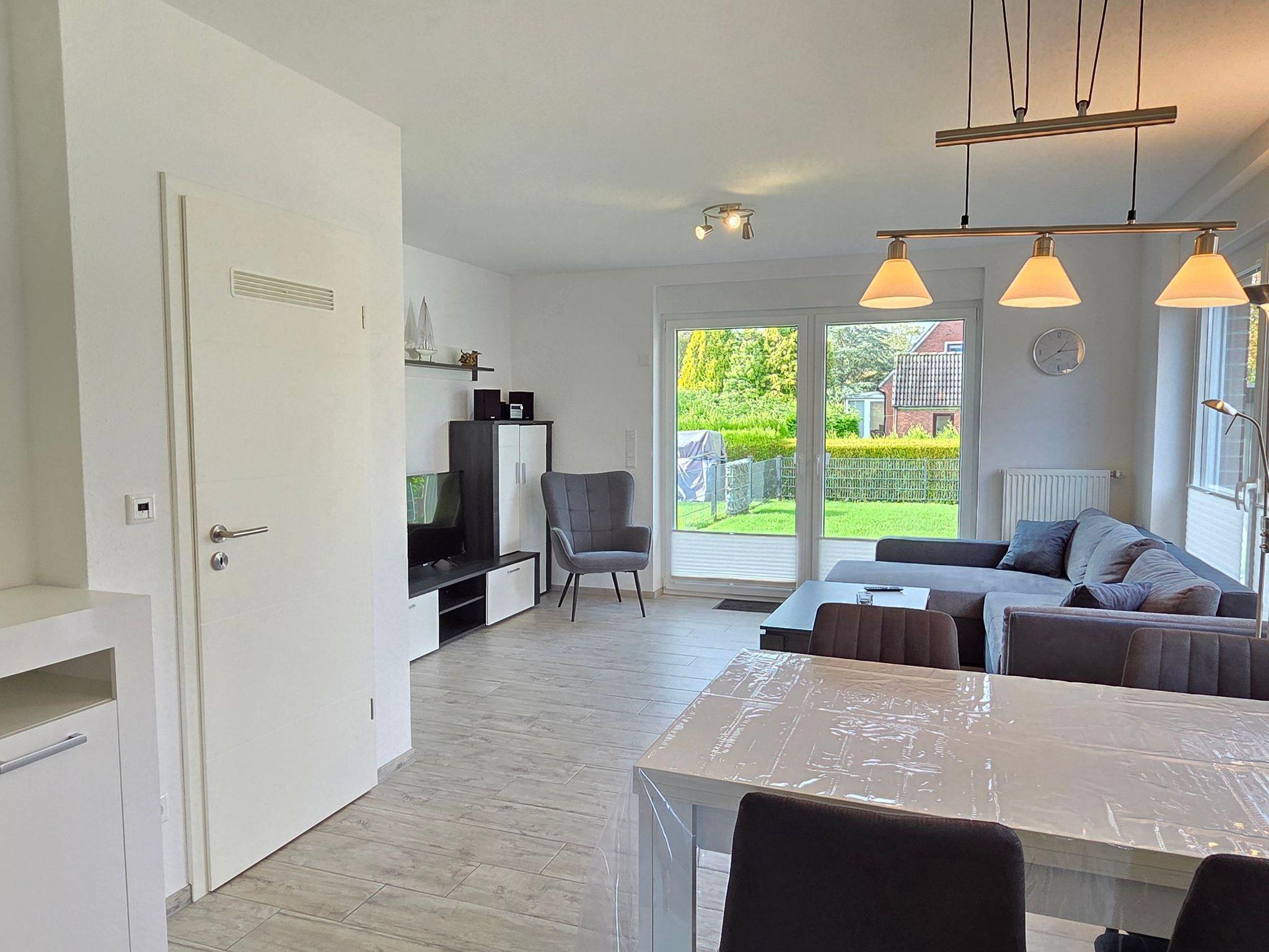 Im Erdgeschoss der ca. 70m² großen Doppelhaushälfte befindet sich ein großzügiger und freundlicher Bereich für Kochen, Essen und Wohnen. Zudem ist ein Gäste-WC vorhanden. Das Obergeschoss verfügt über zwei Schlafzimmer (ein Doppelbett und zwei Einzelbetten) sowie über ein großzügiges Duschbad und bietet somit ausreichend Platz für die ganze Familie. WLAN steht Ihnen kostenlos zur Nutzung zur Verfügung. Alle Fenster sind mit Rollläden ausgestattet und im gesamten Objekt sind Fliesen bzw. Laminat verlegt. Eine hochwertige Ausstattung sorgt für entsprechenden Wohnkomfort.