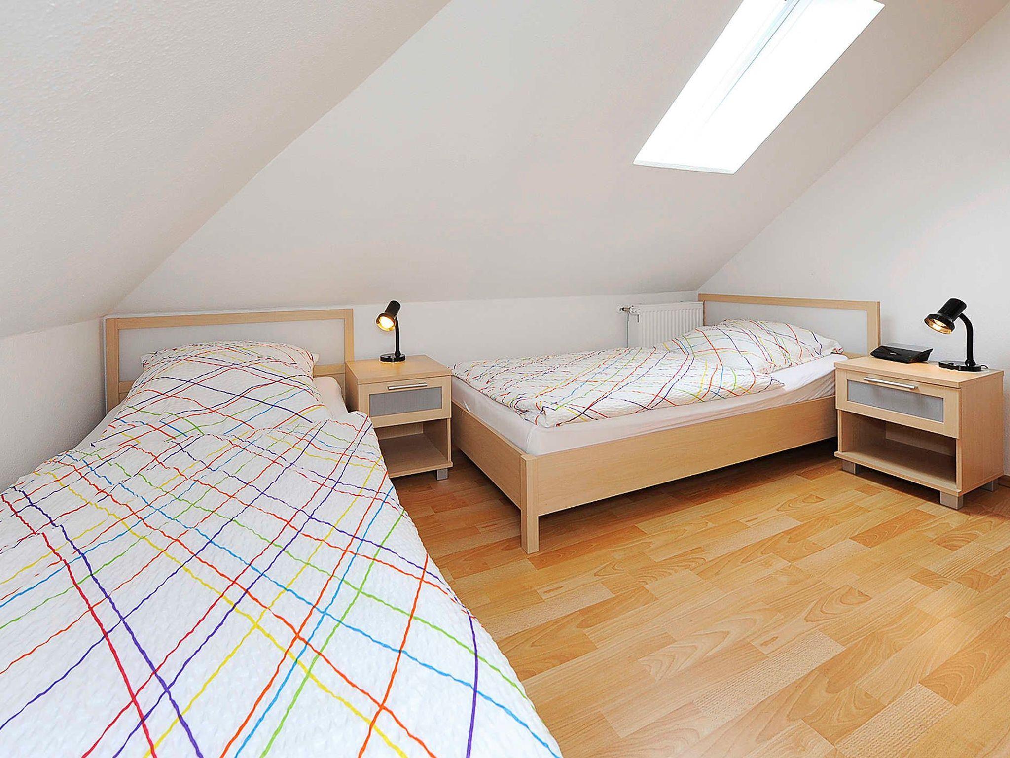 Im Erdgeschoss befinden sich ein Doppelzimmer, das Wohnzimmer, die Küche und das Bad. Im Obergeschoss befindet sich ein weiteres Schlafzimmer mit zwei Betten. Ein Kinderbett ist ebenfalls vorhanden.