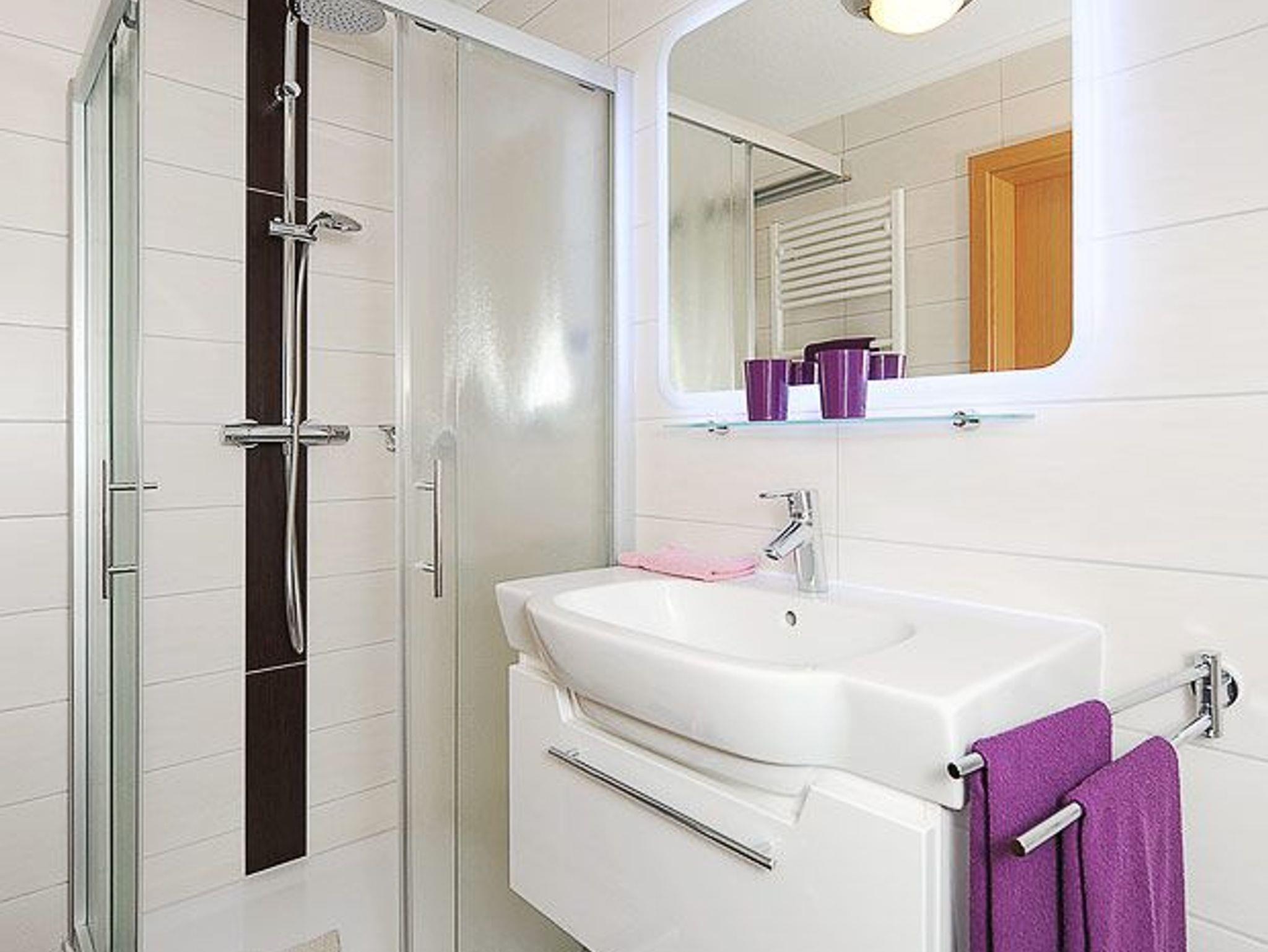 Badezimmer mit Dusche, Waschtisch und WC