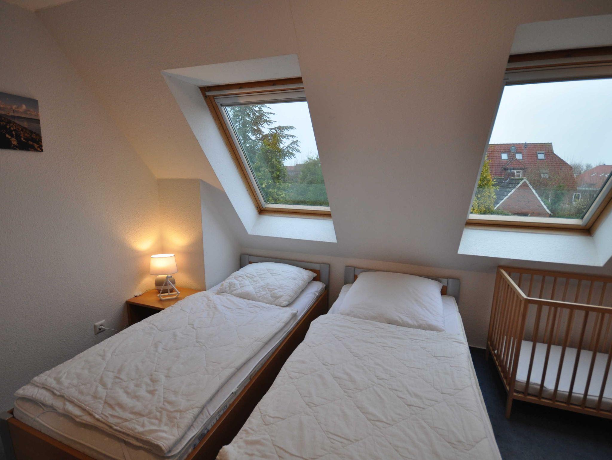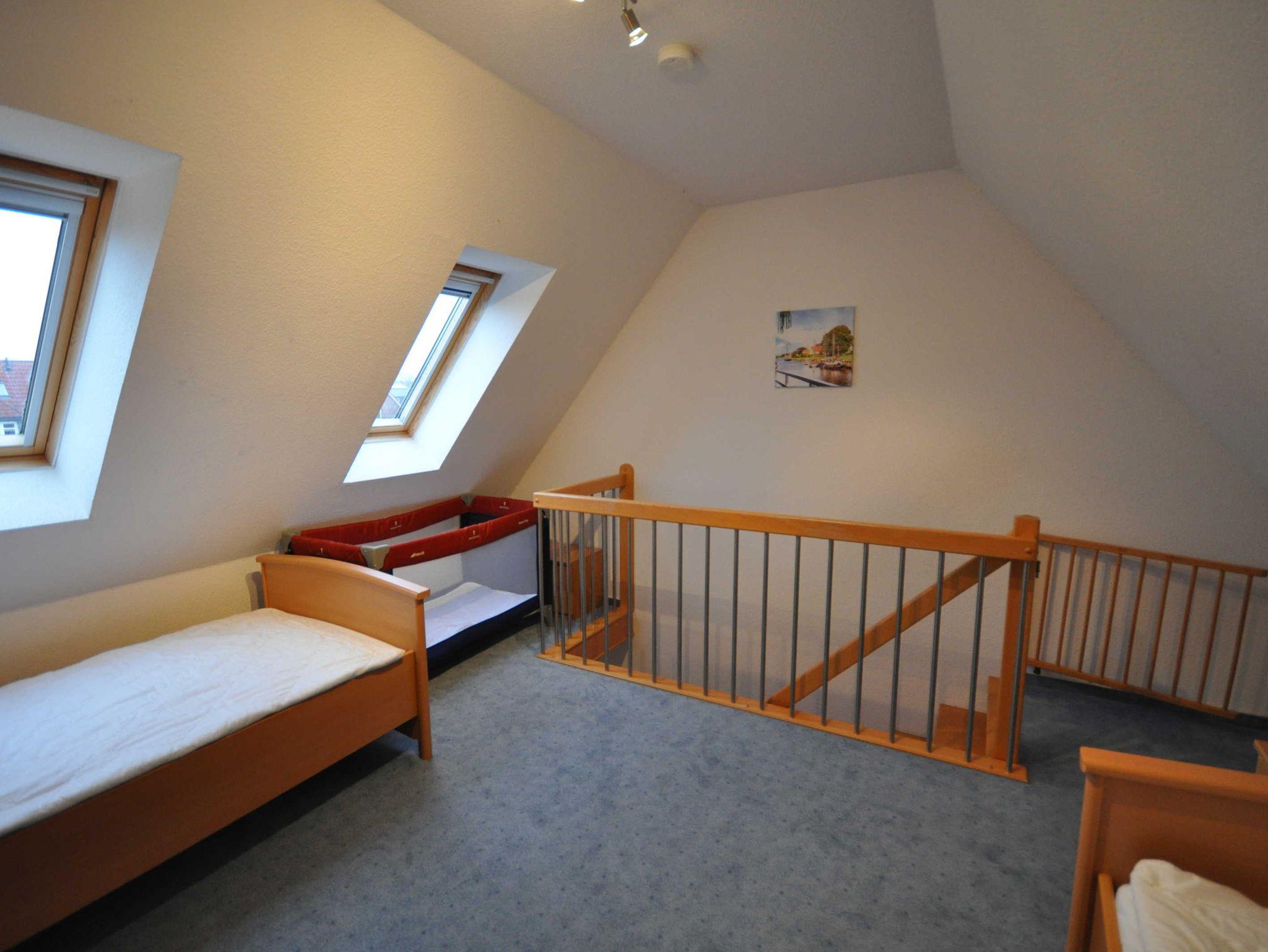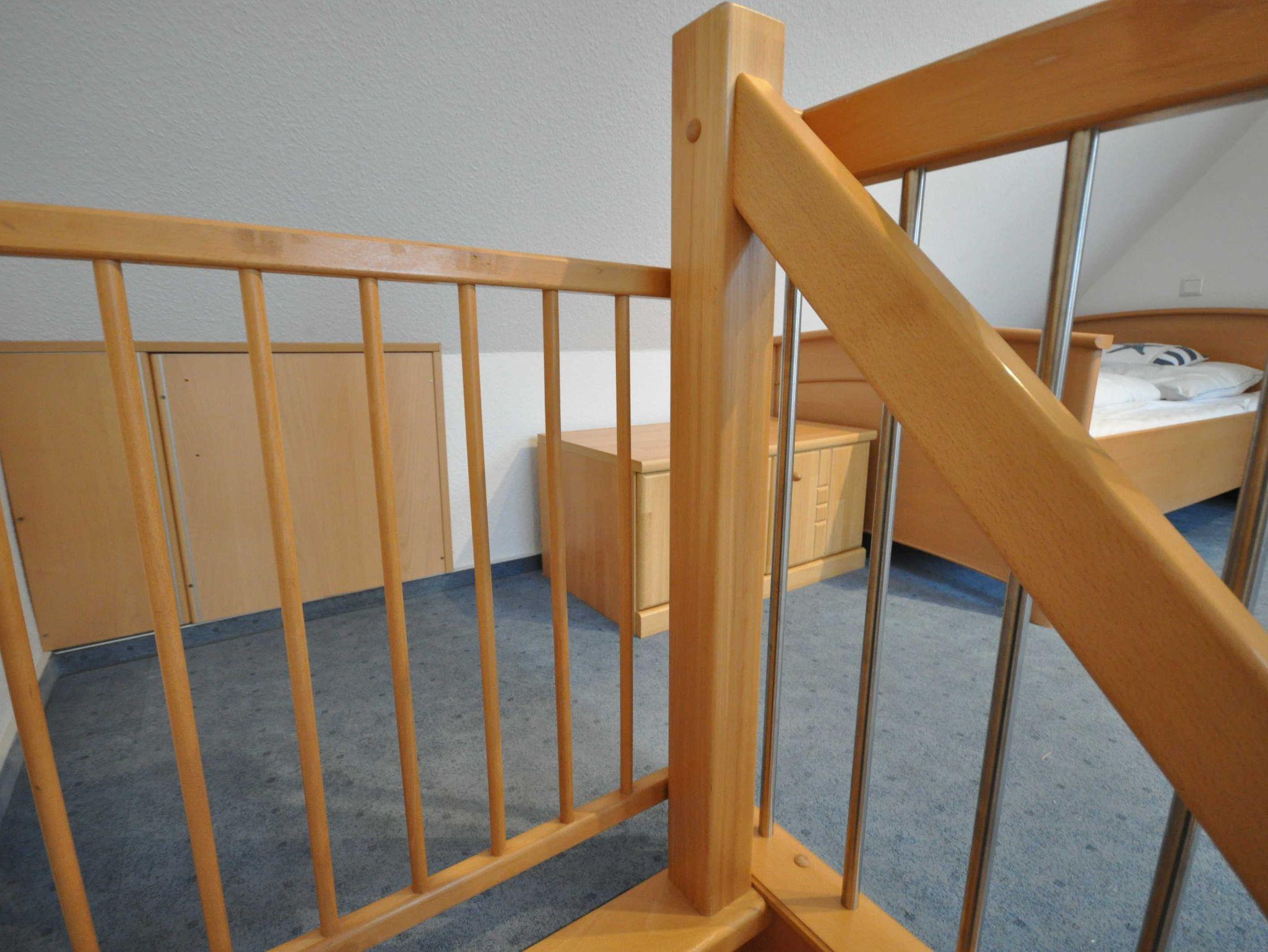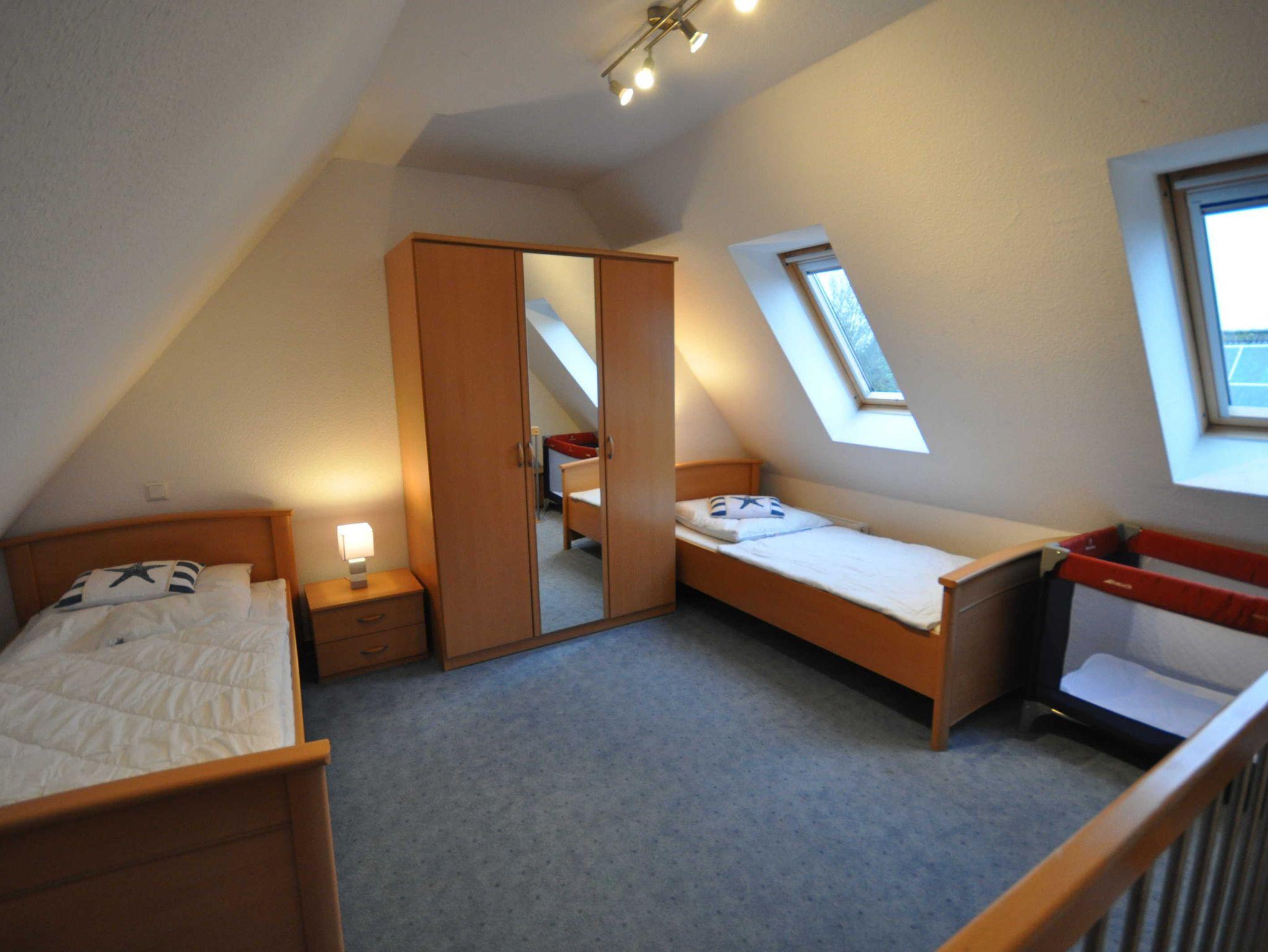 Im Erdgeschoss befinden sich ein großzügiger und modern eingerichteter Wohnraum mit Küchenzeile und Essecke sowie ein Gäste-WC. Eine Treppe führt ins erste Obergeschoss mit einem Schlafzimmer mit Doppelbett und TV, einem Schlafzimmer mit zwei Einzelbetten und einem Dusch/WC. Des Weiteren verfügt das Obergeschoss über ein Treppenschutzgitter sowie Teppichboden. Im ausgebautem Dachgeschoss befindet sich ein weiteres Schlafzimmer mit zwei Einzelbetten. Das nach unten abgeschlossene Dachgeschoss (unten mit einer Holztür, oben mit einem Treppenschutzgitter versehen) ist durch eines der Schlafzimmer erreichbar. Ebenso stehen ein Buggy sowie ein faltbarer Bollerwagen für Ausflüge zur Verfügung.