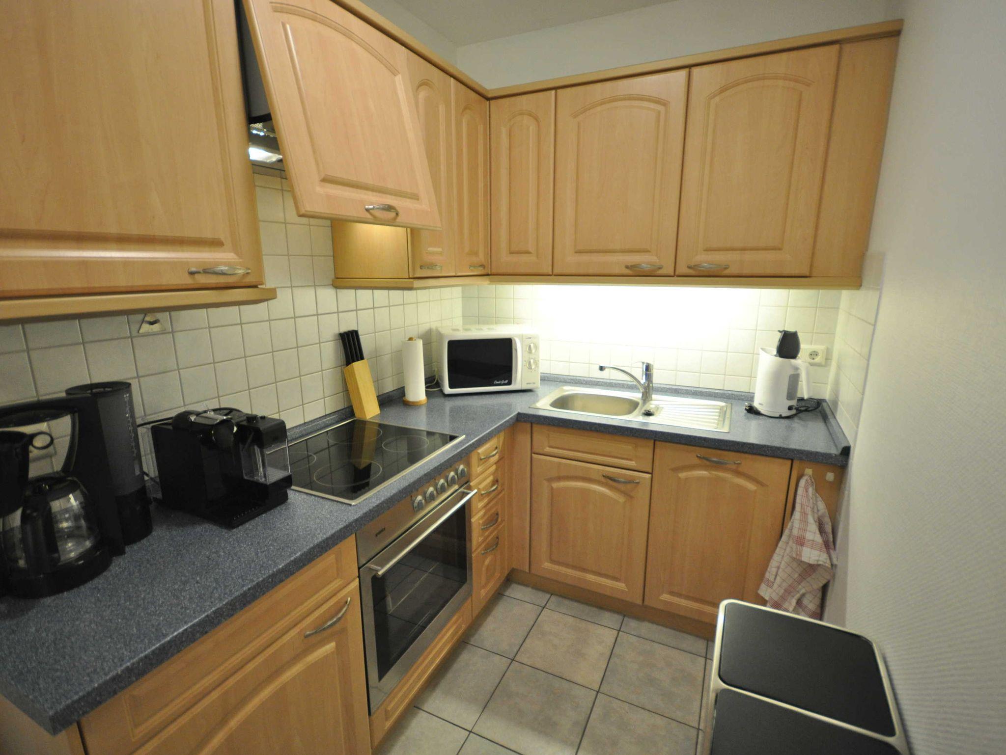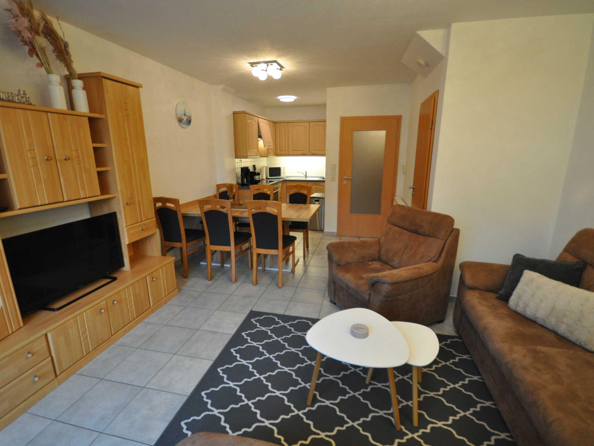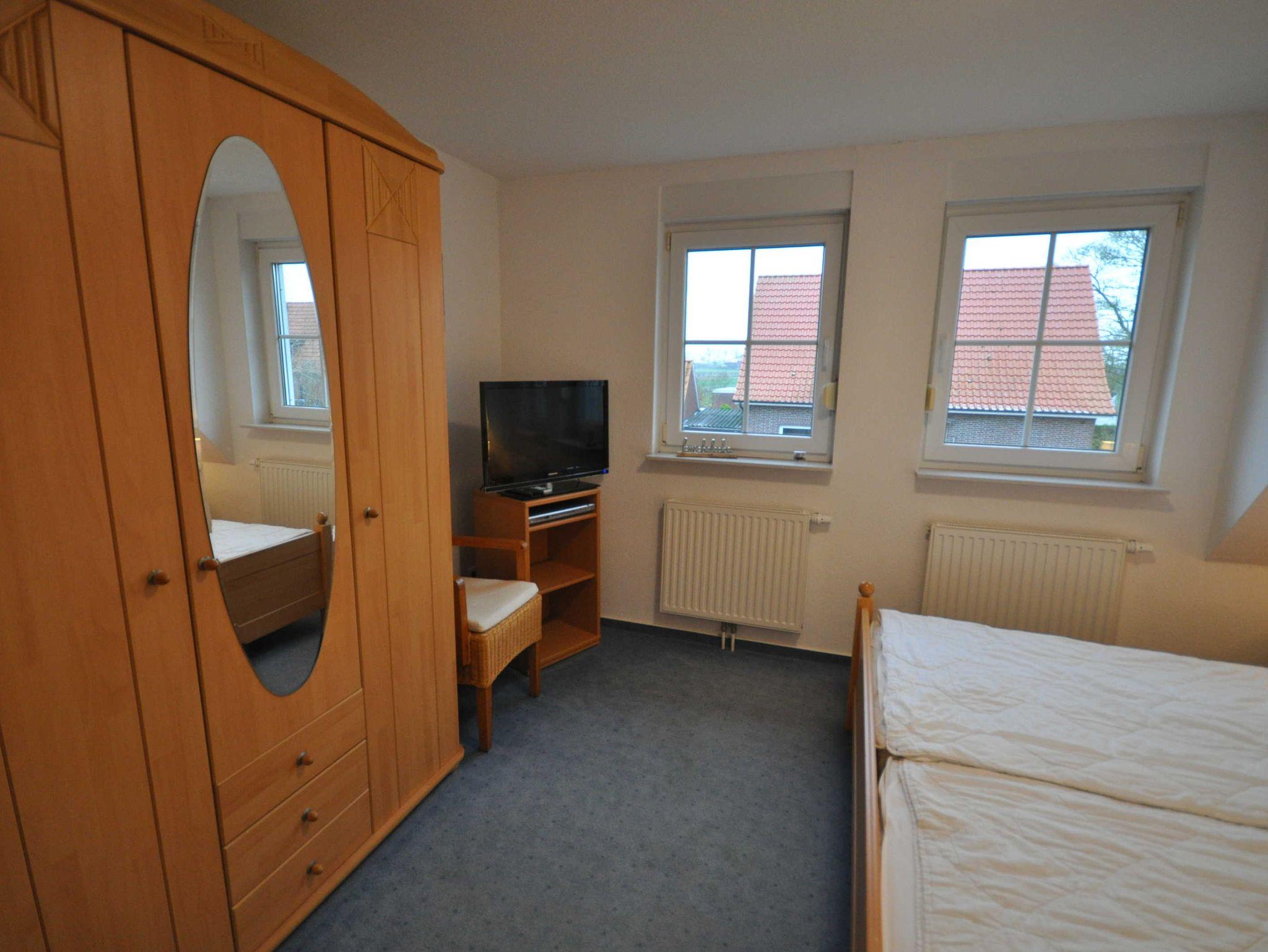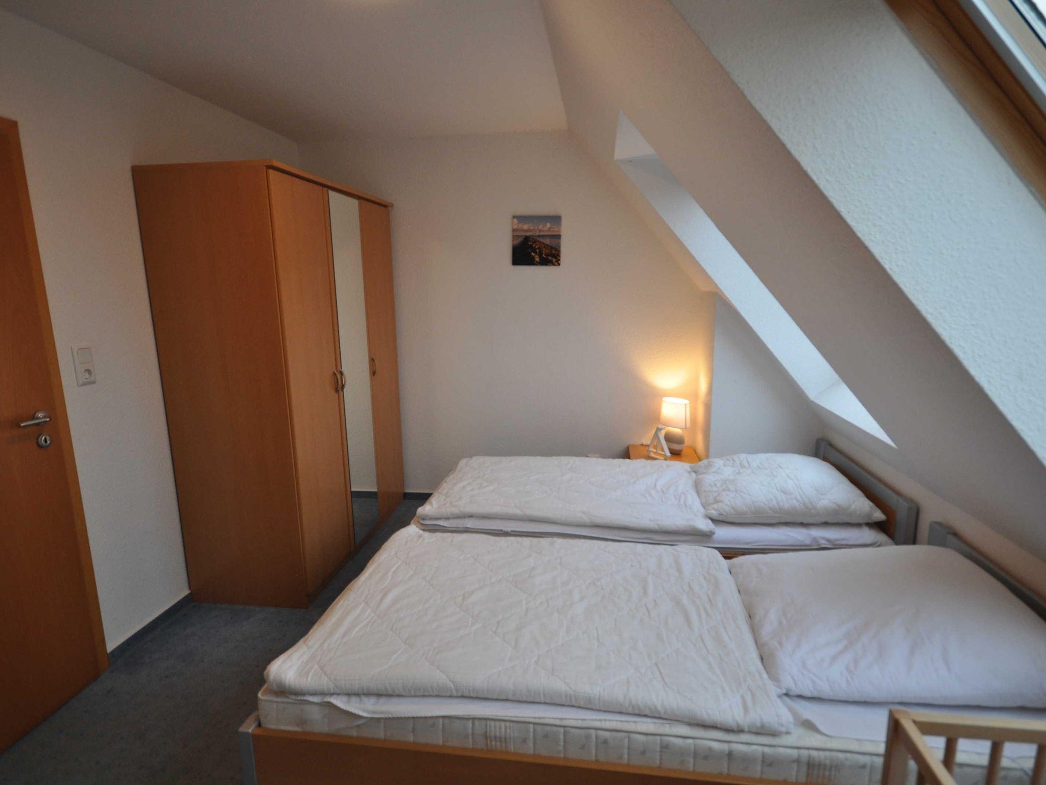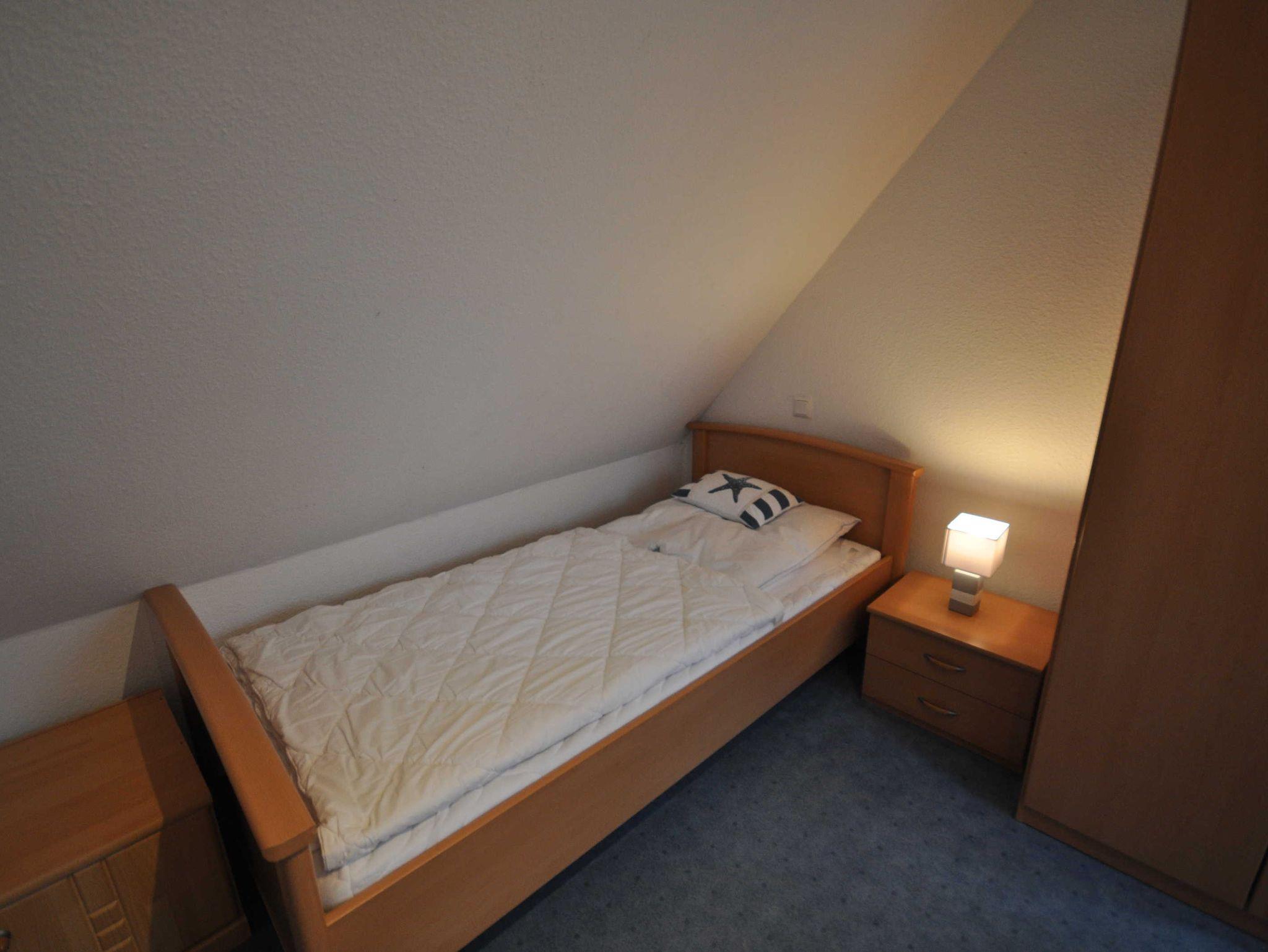 Im Erdgeschoss befinden sich ein großzügiger und modern eingerichteter Wohnraum mit Küchenzeile und Essecke sowie ein Gäste-WC. Eine Treppe führt ins erste Obergeschoss mit einem Schlafzimmer mit Doppelbett und TV, einem Schlafzimmer mit zwei Einzelbetten und einem Dusch/WC. Des Weiteren verfügt das Obergeschoss über ein Treppenschutzgitter sowie Teppichboden. Im ausgebautem Dachgeschoss befindet sich ein weiteres Schlafzimmer mit zwei Einzelbetten. Das nach unten abgeschlossene Dachgeschoss (unten mit einer Holztür, oben mit einem Treppenschutzgitter versehen) ist durch eines der Schlafzimmer erreichbar. Ebenso stehen ein Buggy sowie ein faltbarer Bollerwagen für Ausflüge zur Verfügung.