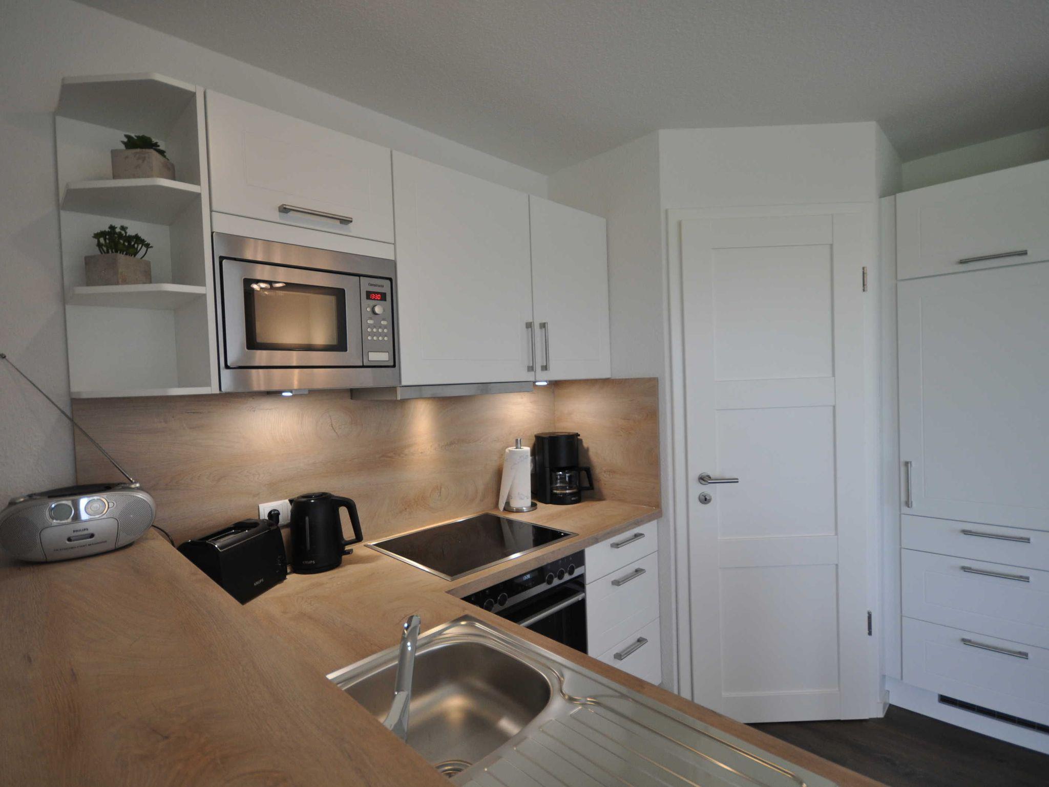 Die Ferienwohnung überzeugt mit Wohlfühlambiente auf gehobenem Niveau und verfügt dabei über einen lichtdurchfluteten Wohnbereich mit Couchgarnitur und Flachbild-TV, einen Esstisch sowie eine vollausgestattete, offene Küche. Die hier angeschlossene Terrasse ist ideal, um den Ausblick bei einem Glas Wein am Abend zu genießen. Desweiteren ist die Wohnung mit 2 separaten Schlafzimmern (je ein Doppelbett) mit TV sowie mit einem modernen Duschbad ausgestattet. Die Wohnung bietet Platz für 4 Personen und ein Baby/Kleinkind. Auf den Böden sind Fliesen bzw. Vinyl verlegt, die Fenster sind mit Rollläden ausgestattet. WLAN steht Ihnen kostenlos zur Verfügung.