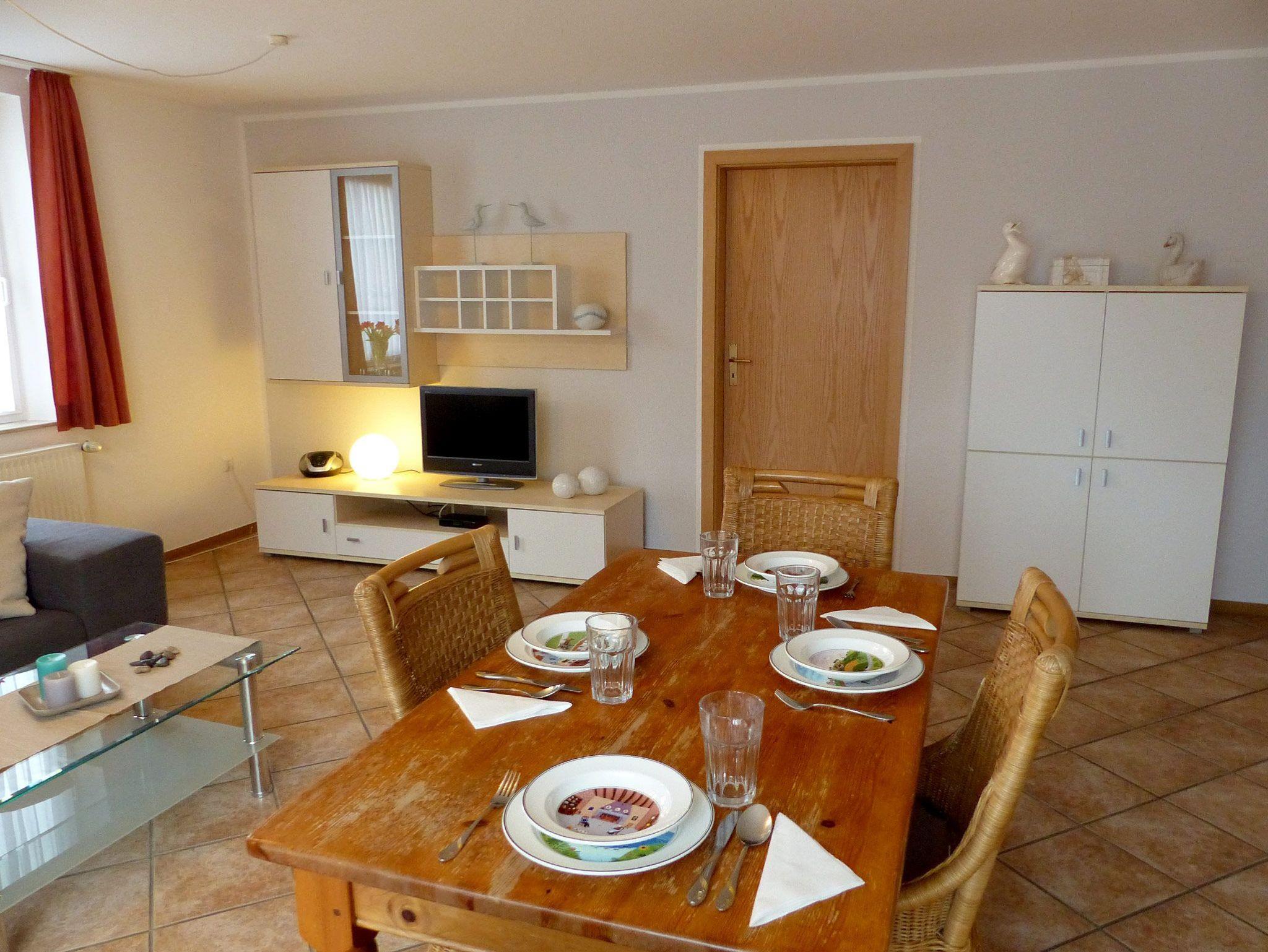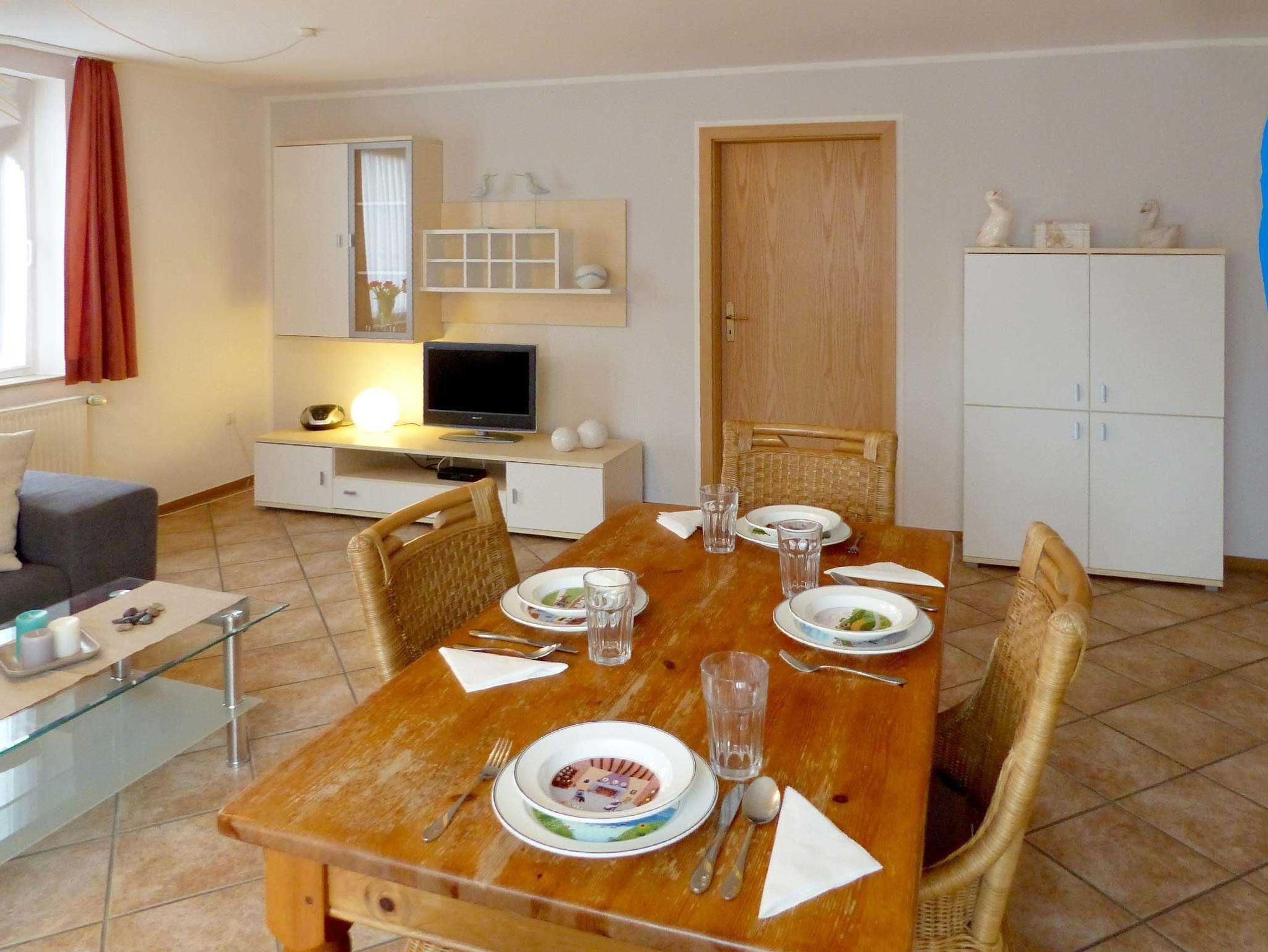 Moderne, sehr geschmackvoll und hochwertig eingerichtete Ferienwohnung in bester Lage des Nordseebades Carolinensiel für bis zu 4 Personen und 1 Kleinkind mit Sonnenbalkon. Die modern eingerichtete Wohnung liegt im Obergeschoss unseres Hauses ?Mühlenblick? und verfügt über ein helles Wohnzimmer mit Sofalandschaft und großem SAT-TV, Essbereich sowie gut ausgestatteter Küche (mit Mikrowelle und Spülmaschine). Weiterhin finden Sie in der Wohnung zwei Schlafzimmer und ein hell und modern ausgestattetes Duschbad. Der vom Wohnzimmer aus begehbare Sonnenbalkon lädt zum Relaxen und Essen unter freiem Himmel ein. Ein Kinderbett und Hochstuhl stehen unseren Gästen selbstverständlich zur Verfügung.