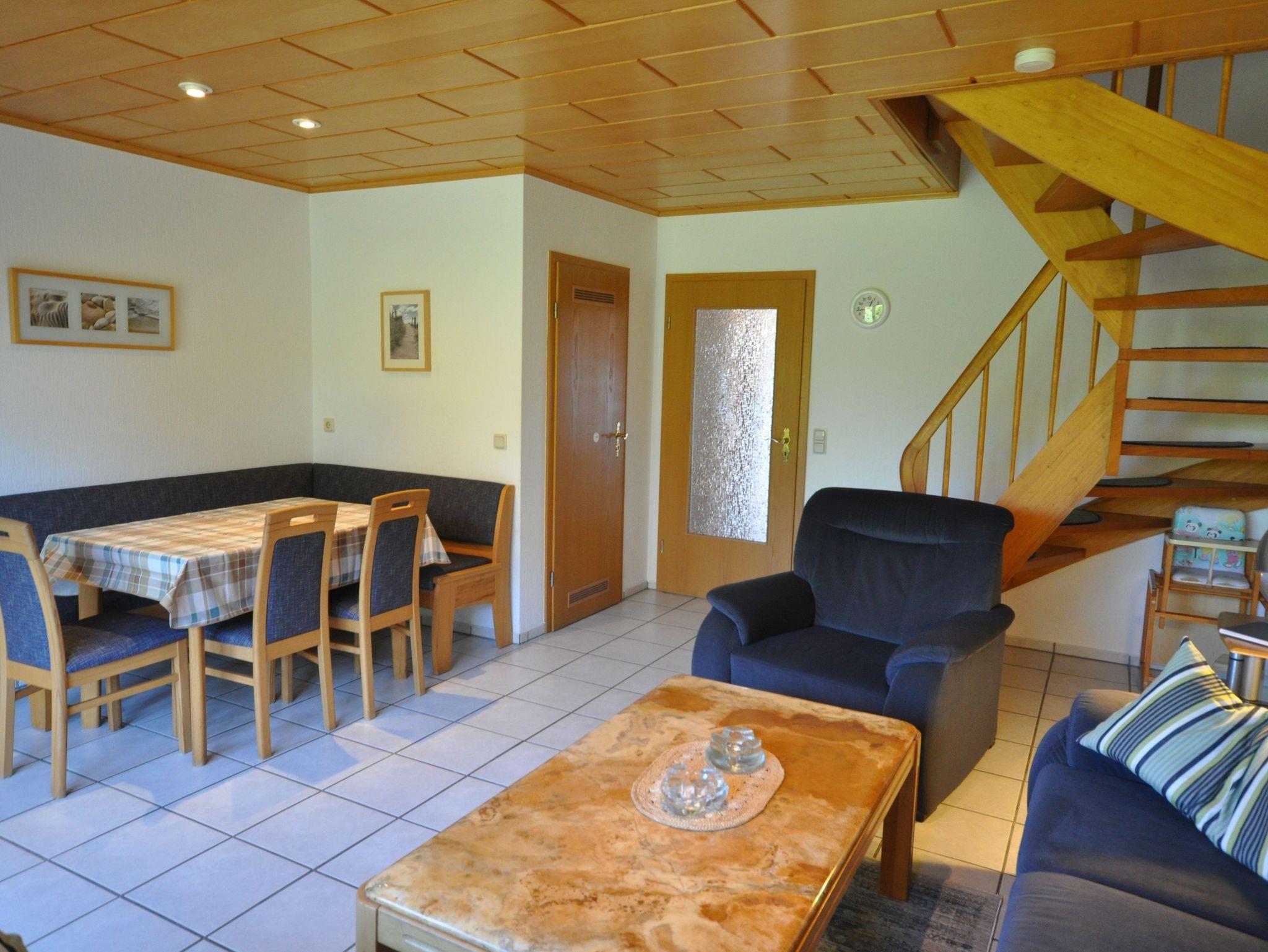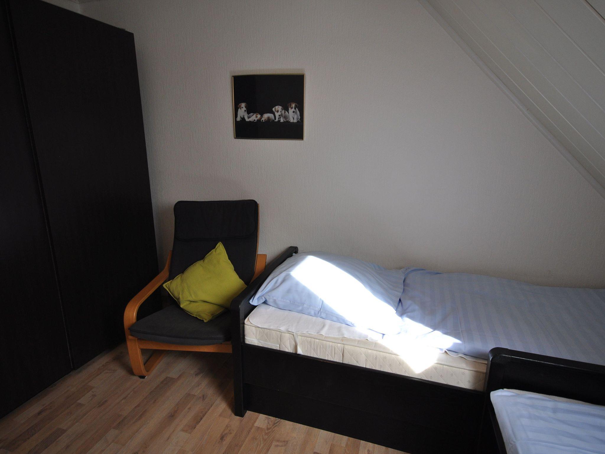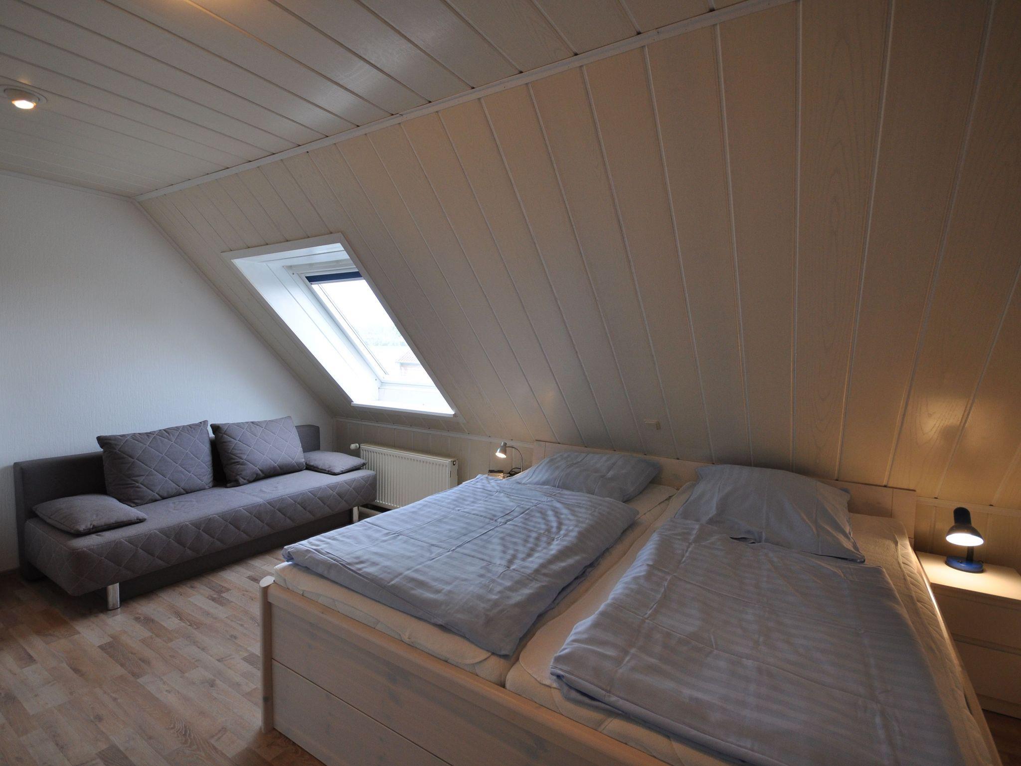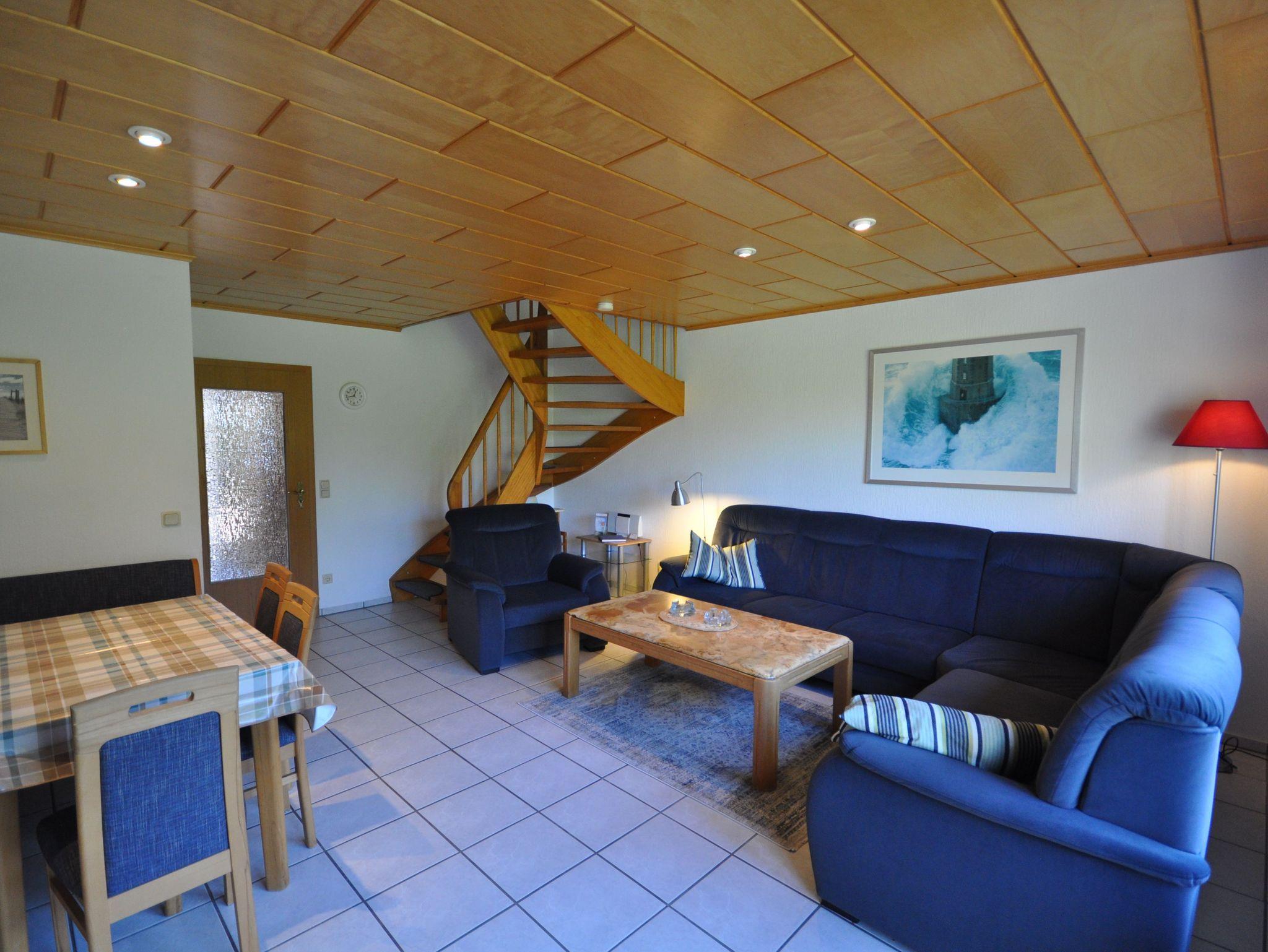 Im Erdgeschoss des ca. 70 m² großen Reihenhauses befinden sich ein großzügiger Wohn- und Essbereich mit Ausgang zur Terrasse, eine separate, vollständig ausgestattete Küche sowie ein Badezimmer mit Dusche und WC. Im Obergeschoss finden Sie zwei Schlafzimmer mit einem Doppelbett bzw. zwei Einzelbetten und ein Bad mit Badewanne vor. Das Badezimmer ist durch das Schlafzimmer mit den Einzellbetten zu erreichen. In einem ausgebauten Dachstudio befinden sich zwei weitere Einzelbetten mit TV. WLAN steht Ihnen kostenlos zur Verfügung.