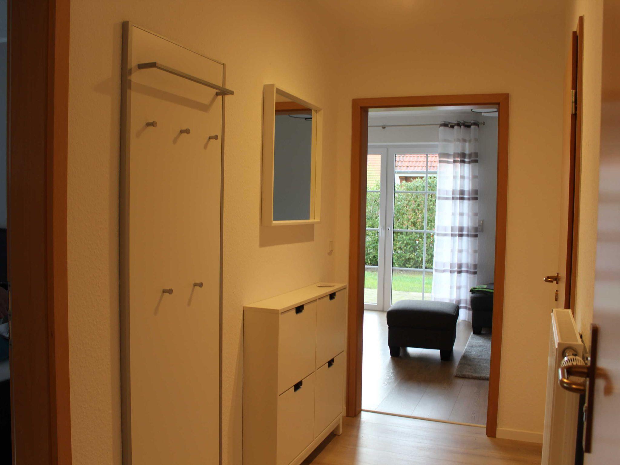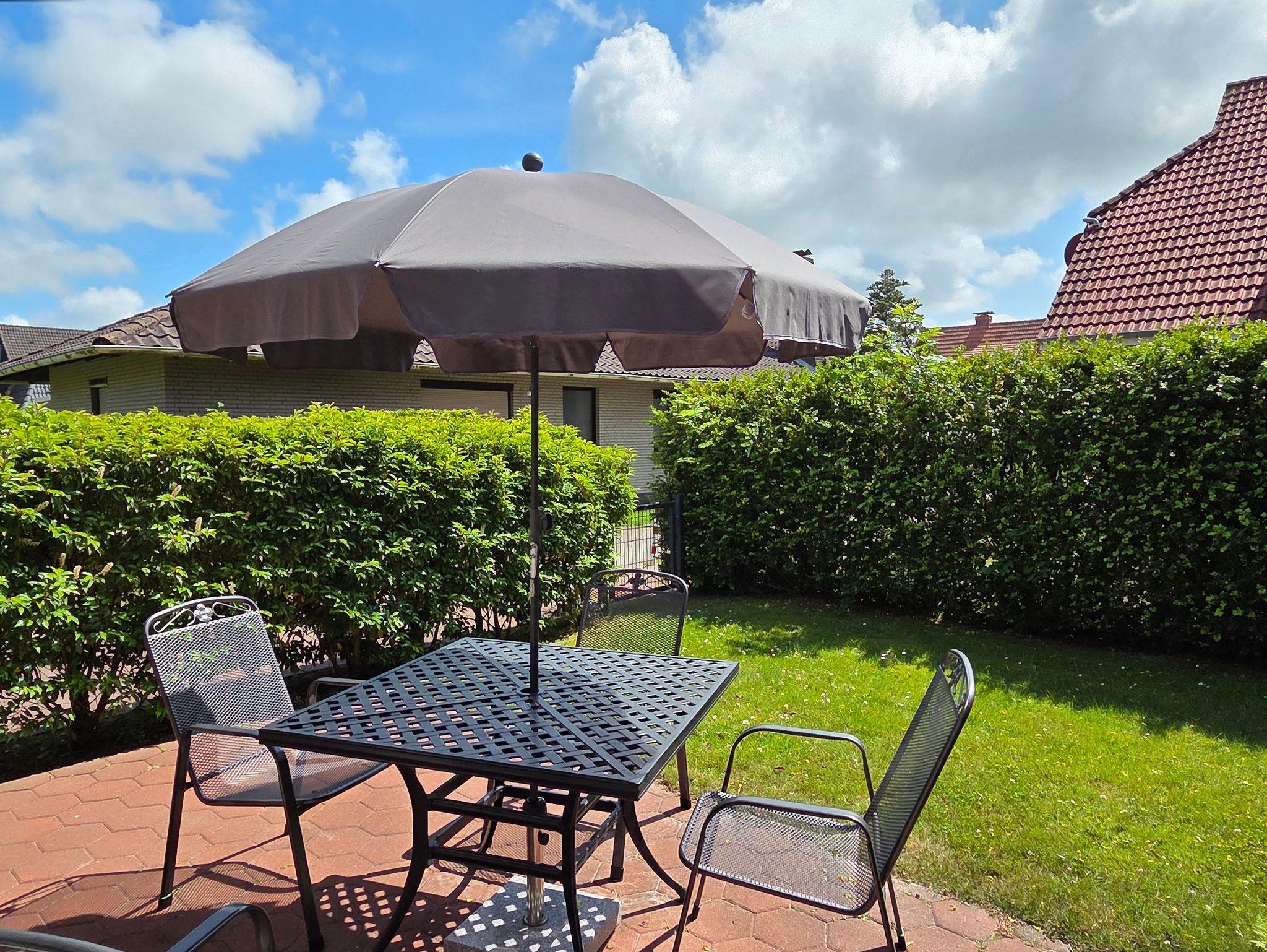 Diese moderne und im Jahr 2020 umfassend renovierte Erdgeschosswohnung verfügt auf ca. 56m² über einen Wohn- und Essbereich mit einer offenen Küche, über 2 separate Schlafzimmer (Doppelbett bzw. zwei Einzelbetten) sowie über ein Duschbad. Vom Wohnraum gelangen Sie auf die möblierte Terrasse mit Gartenteil. Alle Räume sind mit Fliesen bzw. Laminat, die Fenster mit Rollläden ausgestattet. Die geschmackvoll und hochwertig eingerichtete Wohnung bietet Ihnen alles, was Sie in ihrem Urlaub zur Erholung benötigen. WLAN steht Ihnen kostenlos zur Verfügung.