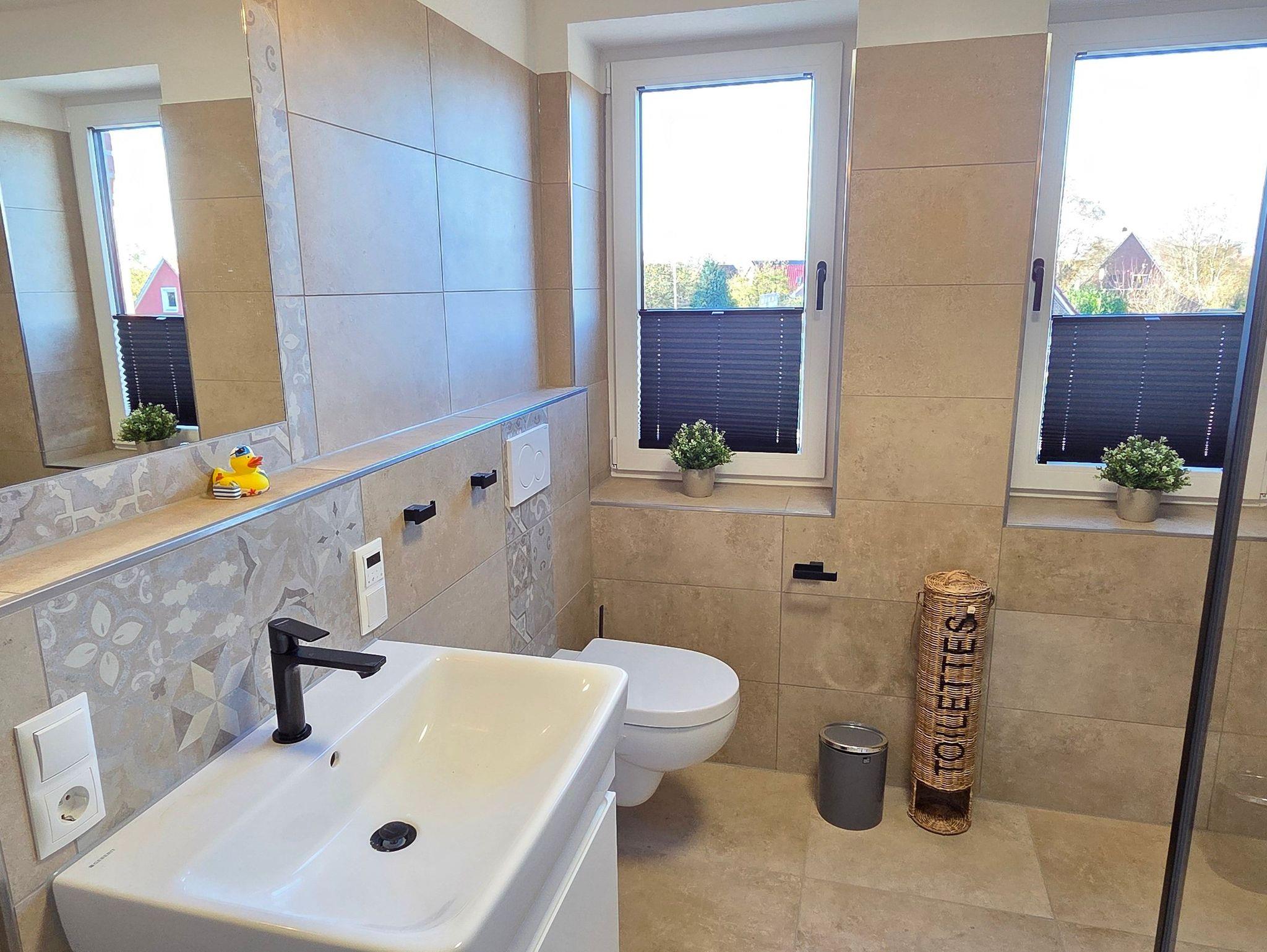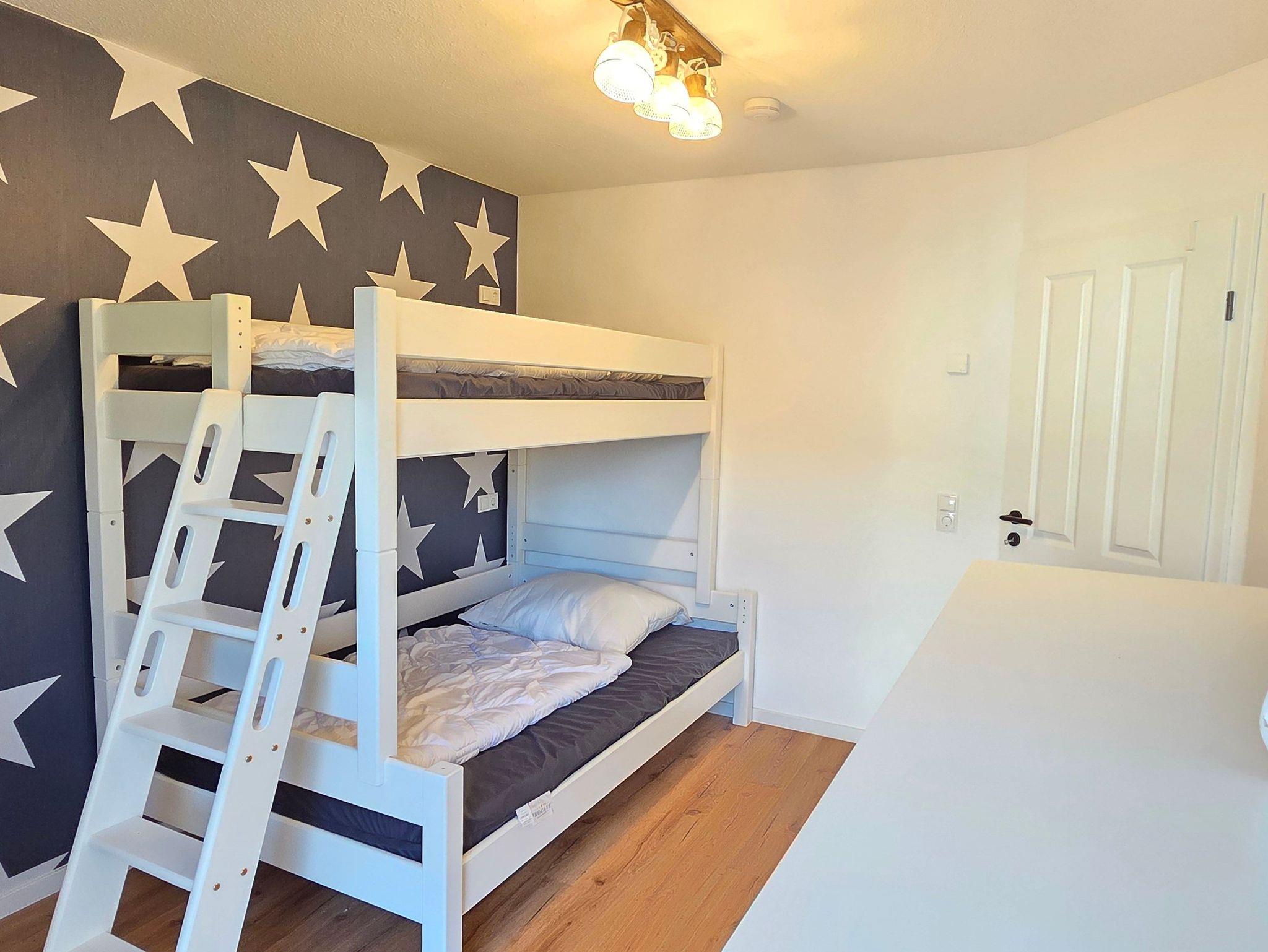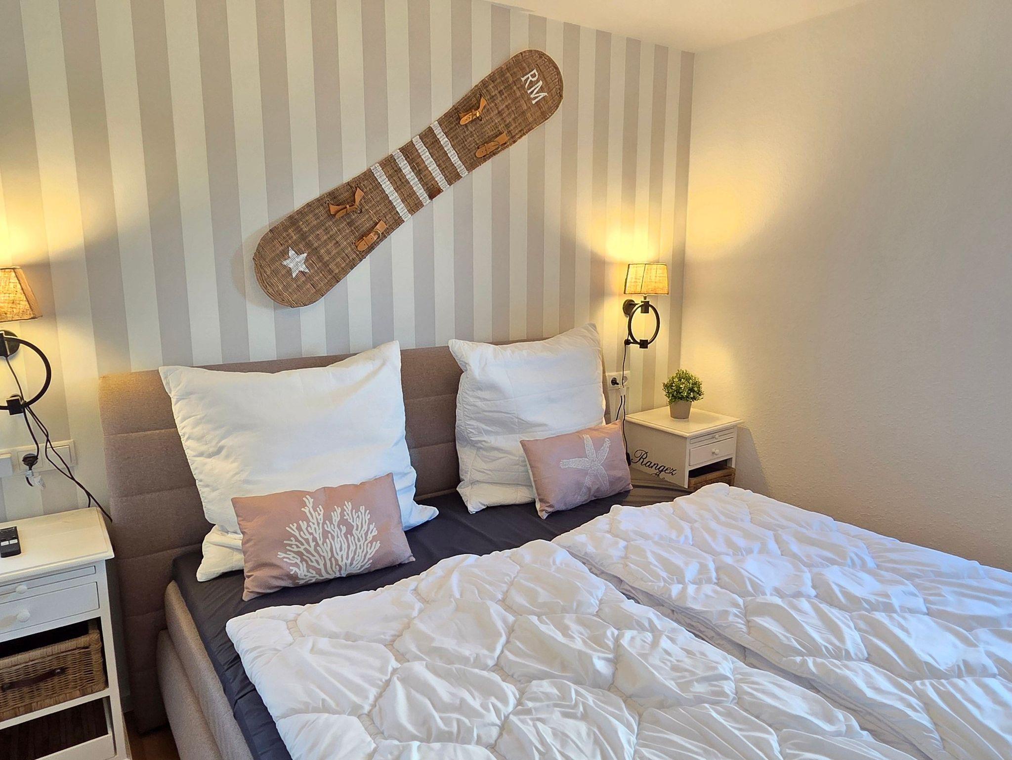 Das großzügige Ferienhaus Albertshus bietet auf drei Ebenen Platz für bis zu 8 Personen und vereint gehobenen Komfort mit Wohlfühlatmosphäre. Vier Schlafzimmer mit Smart-TV und Verdunkelungsmöglichkeit ? drei davon mit hochwertigen Boxspringbetten, eines mit Etagenbett mit extrabreiter Liegefläche unten (120cm) ? sorgen für erholsamen Schlaf. Das Erdgeschoss-Schlafzimmer mit barrierearmem Duschbad gegenüber ist besonders für Gäste mit eingeschränkter Mobilität geeignet. Ein weiteres Duschbad befindet sich im Obergeschoss.