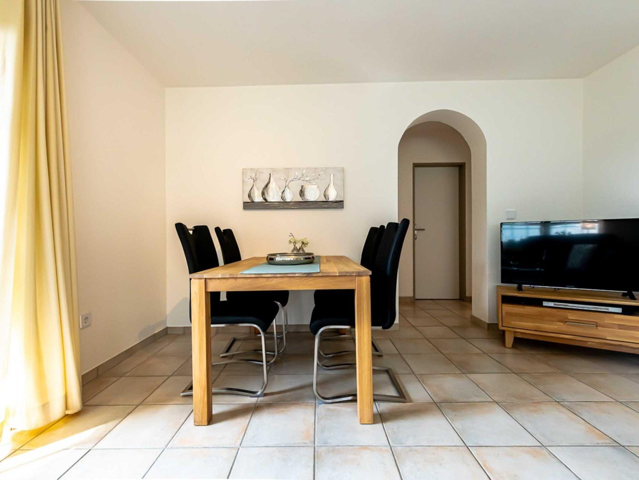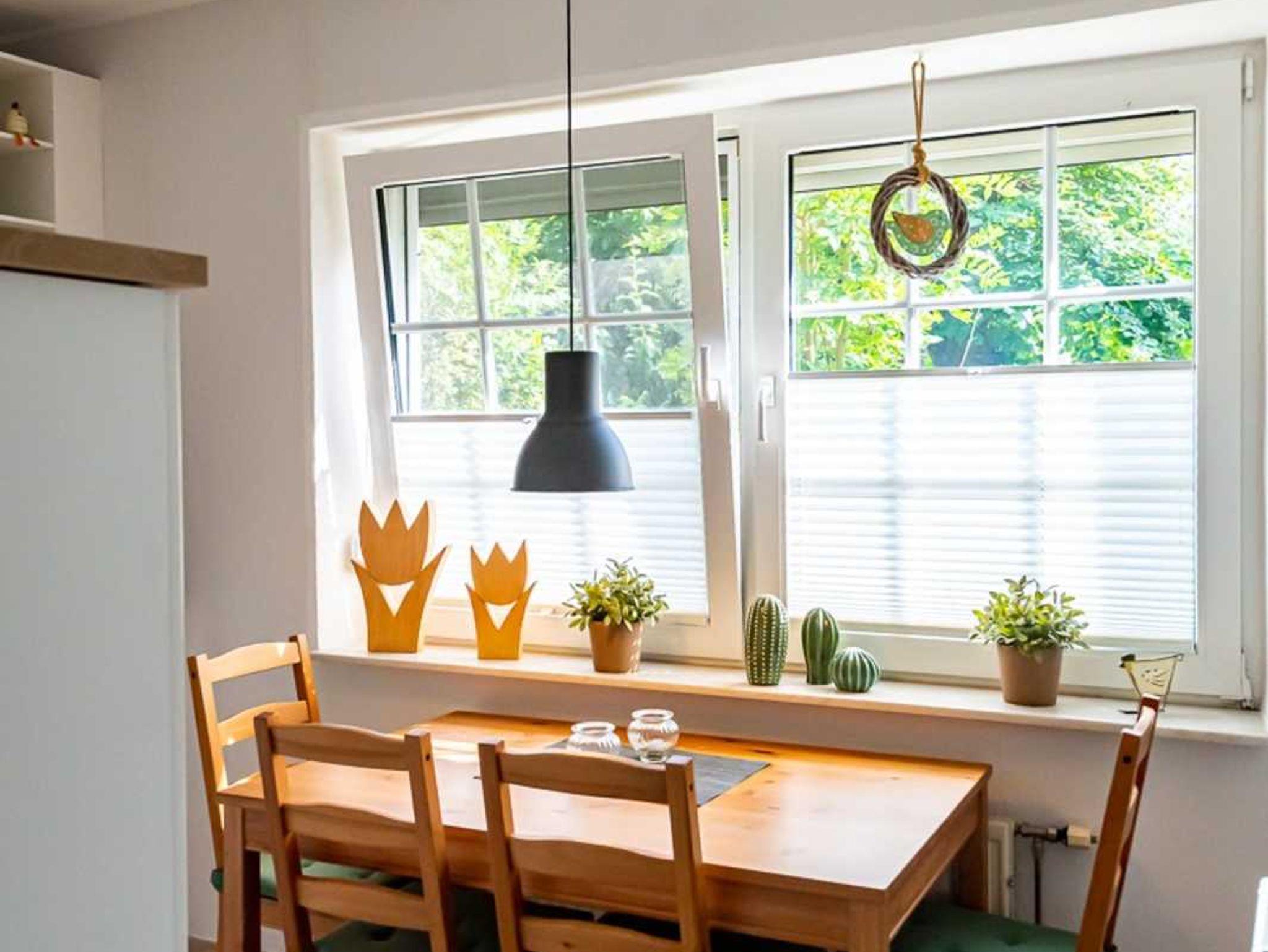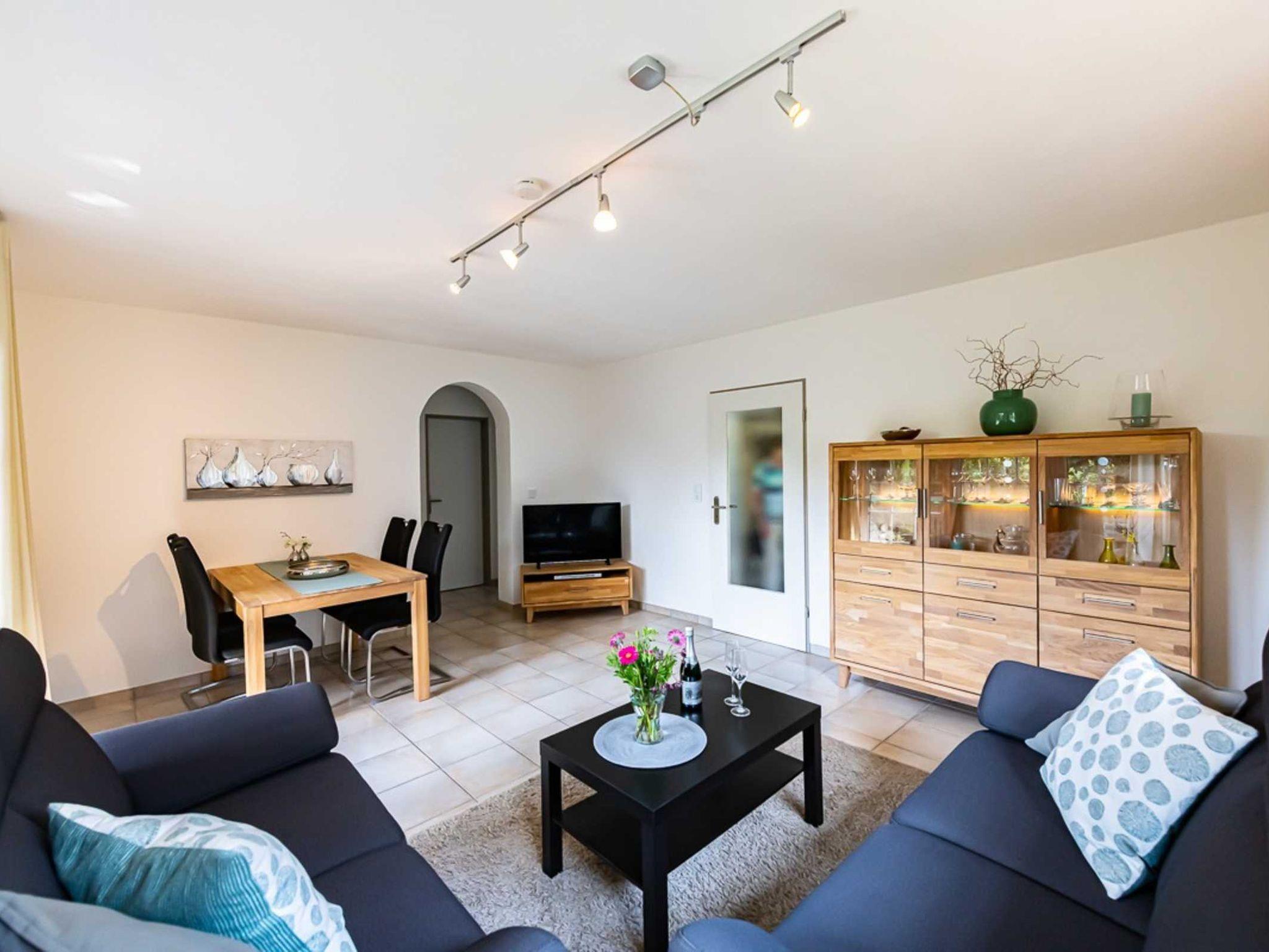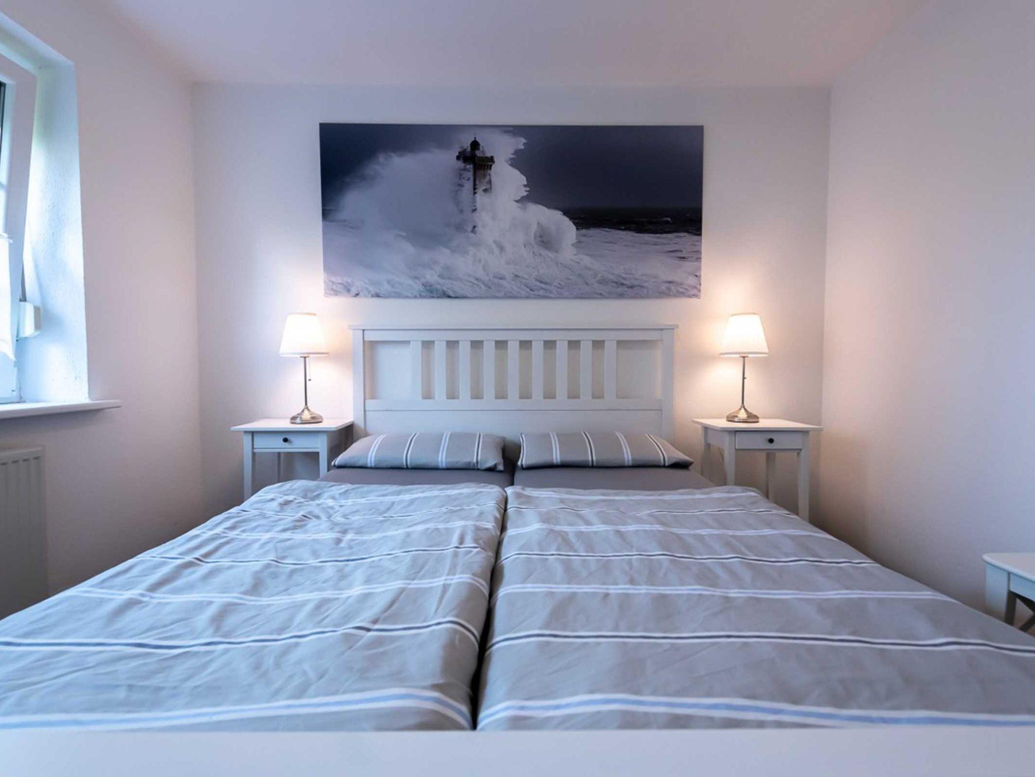 Die helle EG-Wohnung (60qm) mit WLAN bietet bequem Platz für 2-4 Personen und lädt zum Nordseeurlaub ein. Durch das Wohnzimmer mit Essplatz gelangen Sie auf unsere Terrasse und den Garten. (Gartenmöbel und -liegen vorhanden). Die separate Küche verfügt über Spülmaschine, Kaffee- und Senseopadmaschine, Kühlschrank mit Gefrierfach, Herd mit Backofen, Wasserkocher, Toaster etc.. Ein Schlafzimmer ist ausgestattet mit einem Doppelbett (1,80 x 2,00 Meter, 2 Matratzen)das andere Schlafzimmer ist ausgestattet mit einem Etagenbett. Das Bad verfügt über Dusche und WC. (Haartrockner vorhanden)