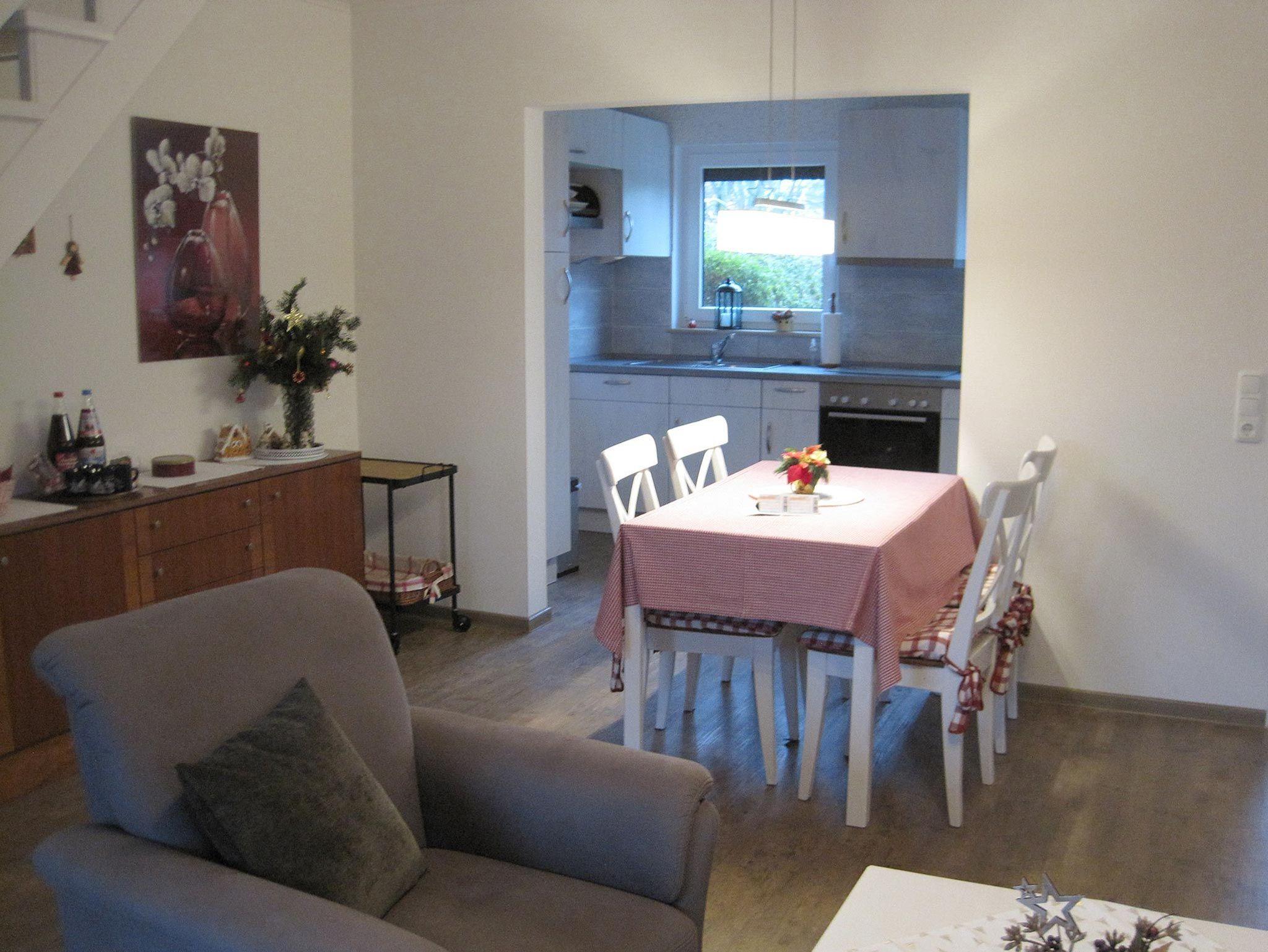 Komplett ausgestattete Doppelhaushälfte in ruhiger Wohnlage. Wohn- und Esszimmer, separate Küche, 2 Schlafräume und Bad mit WC und Wanne. Auch den Garten können Sie gerne nutzen.