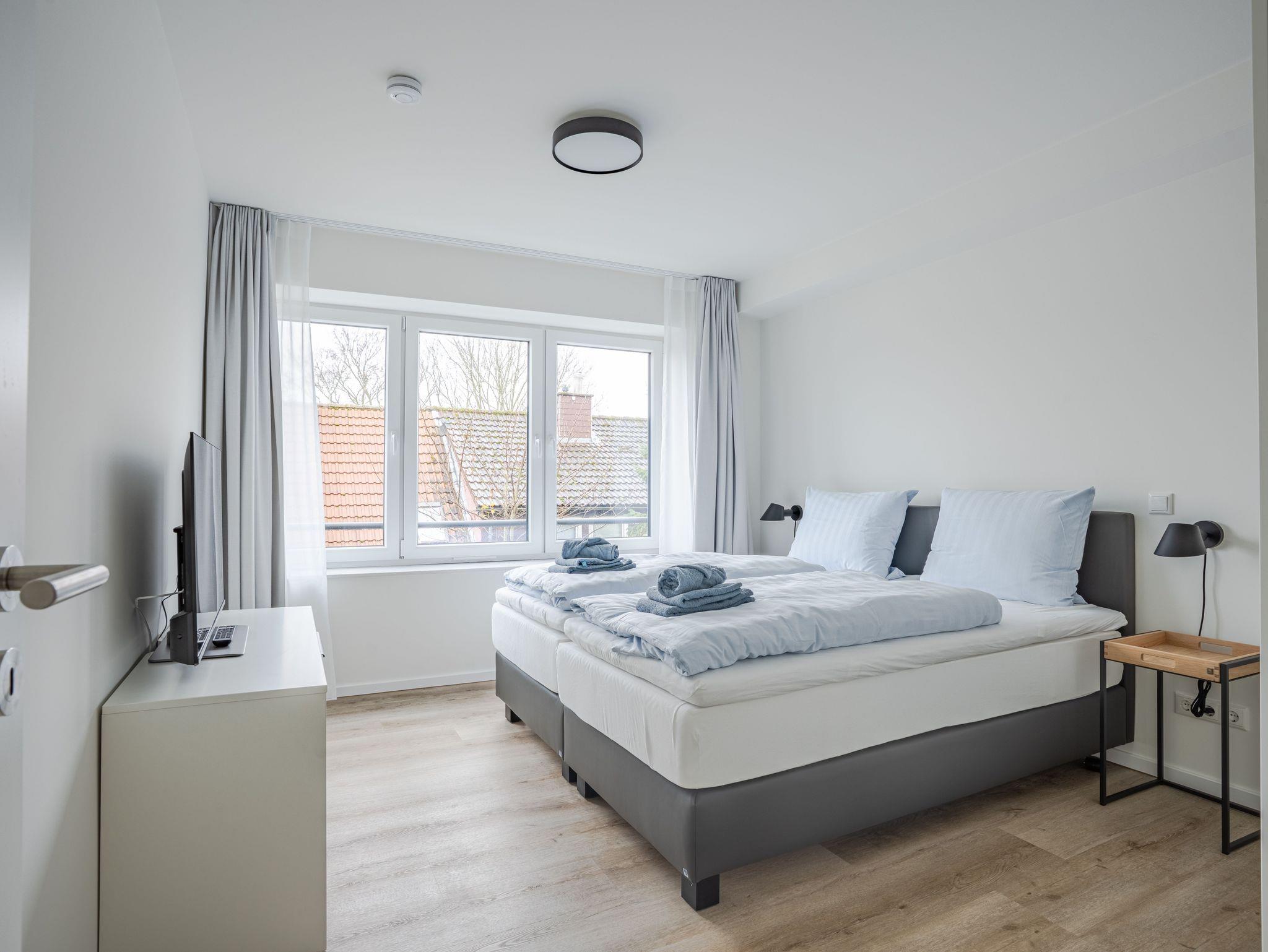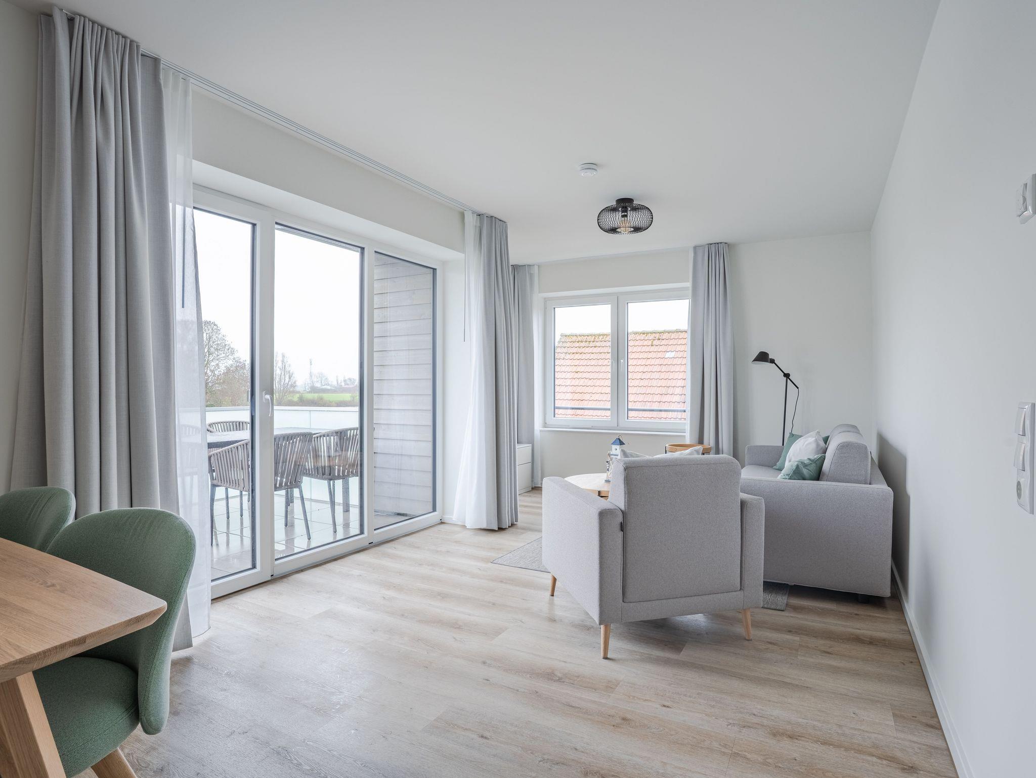 Direkt an der Harle gelegen und im Jahr 2025 neu erbaut, erwarten Sie moderne Apartments mit höchstem Komfort. Ein Fahrstuhl, eigener Parkplatz sowie eine abschließbare Fahrradunterstellmöglichkeit mit E-Ladestation sorgen für entspannte Urlaubstage.