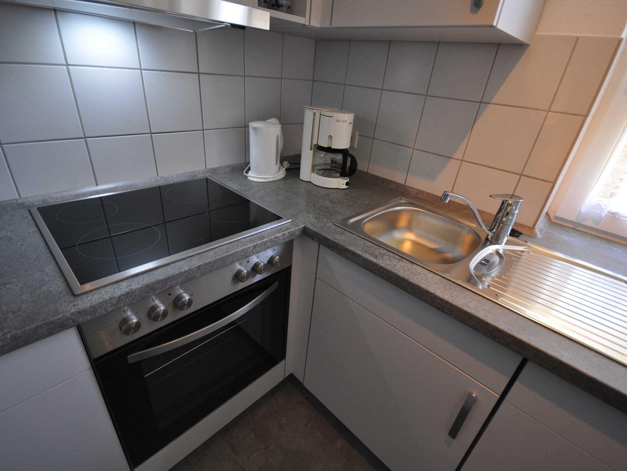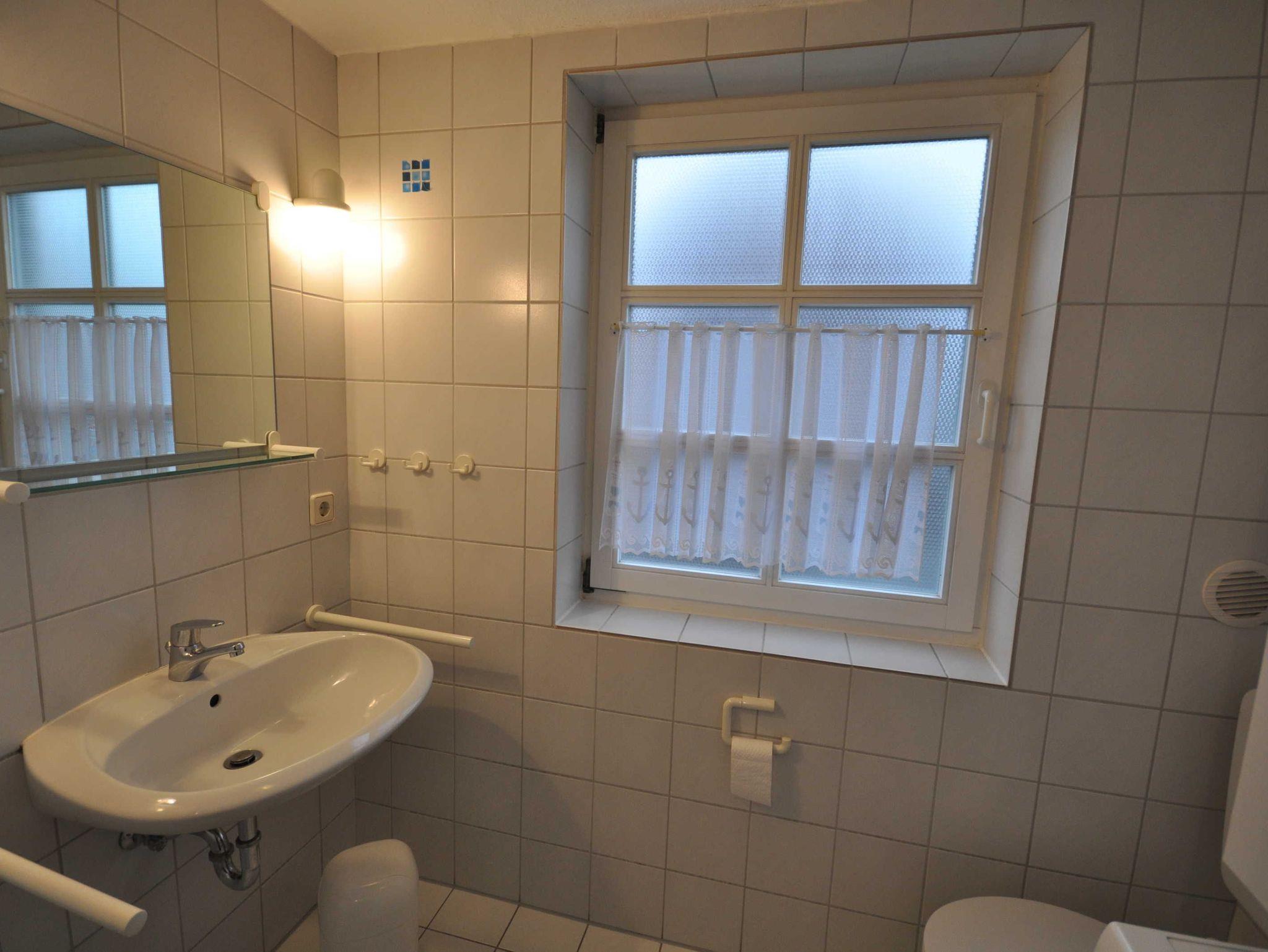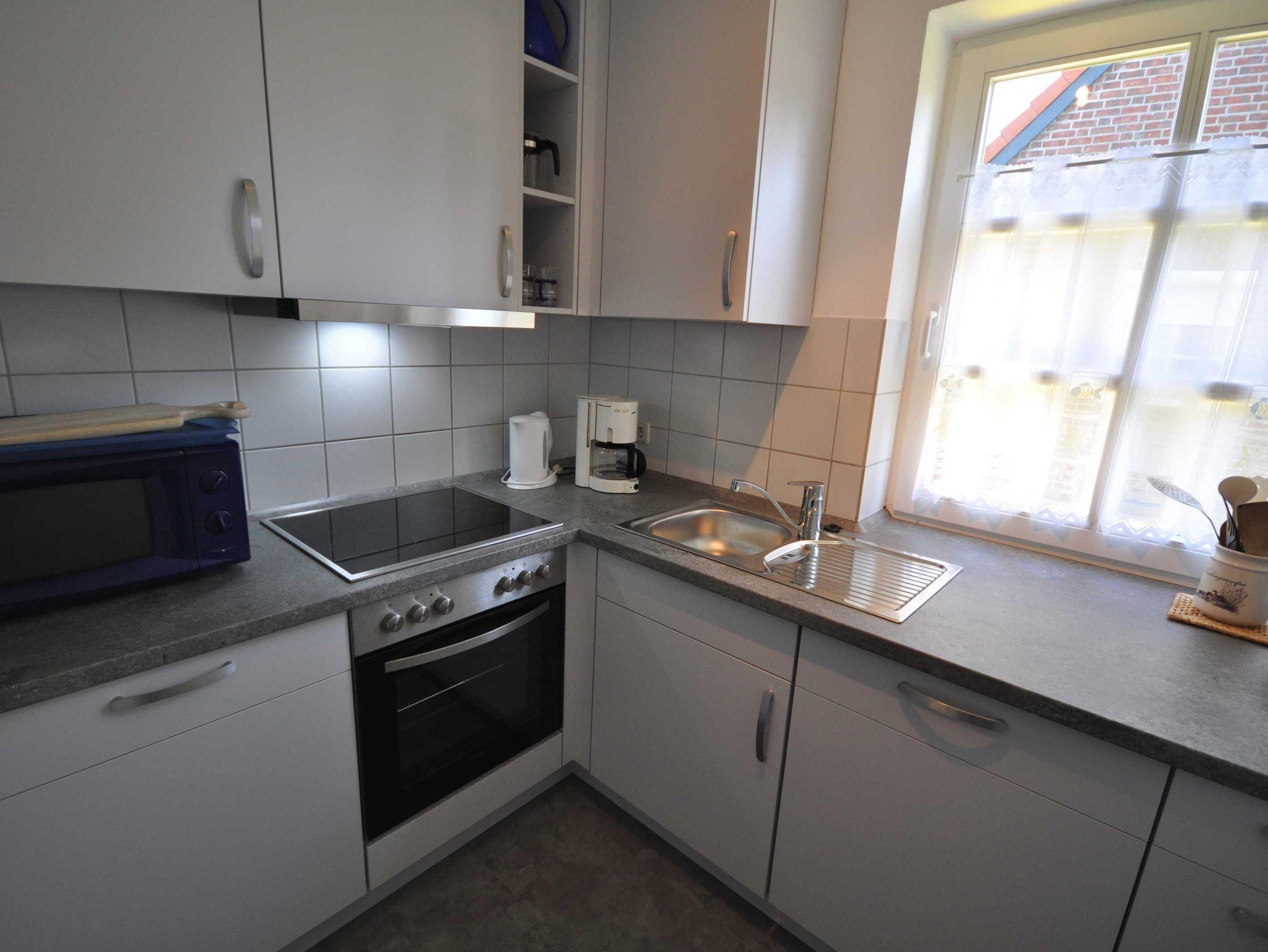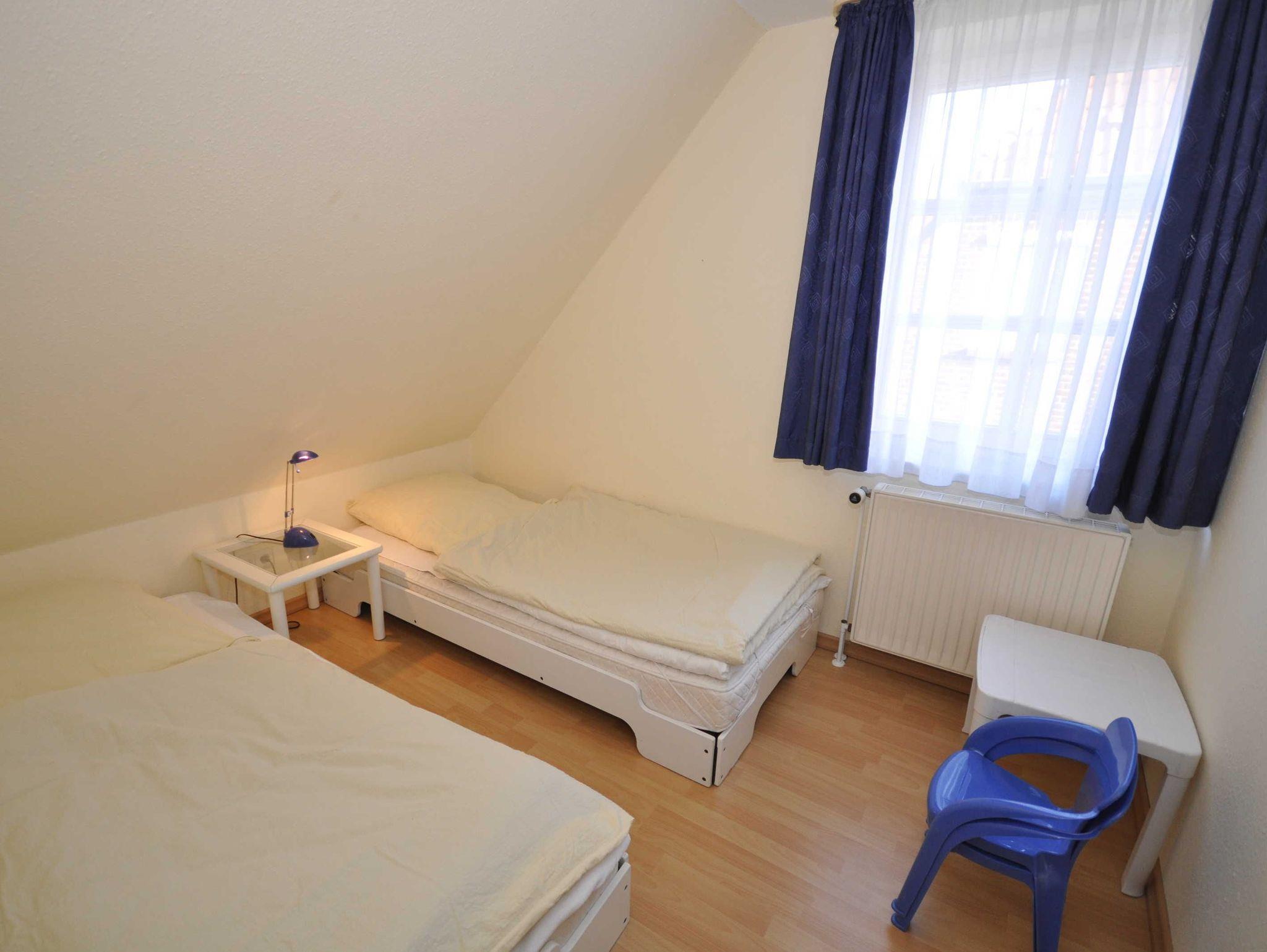 Die Doppelhaushälfte ist hell und freundlich ausgestattet und bietet Platz für bis zu 4 Personen und ein Baby/Kleinkind. Im Erdgeschoss befinden sich ein großer Wohn- und Essbereich mit Ausgang zur Südterrasse, eine separate, vollständig ausgestattete Küche sowie ein Gäste-WC. Das 1. Obergeschoss verfügt über ein Schlafzimmer mit Doppelbett und ein Schlafzimmer mit zwei Einzelbetten sowie über ein Badezimmer mit Dusche und WC. Die Böden des Ferienhauses sind mit Fliesen bzw. Laminat ausgestattet.