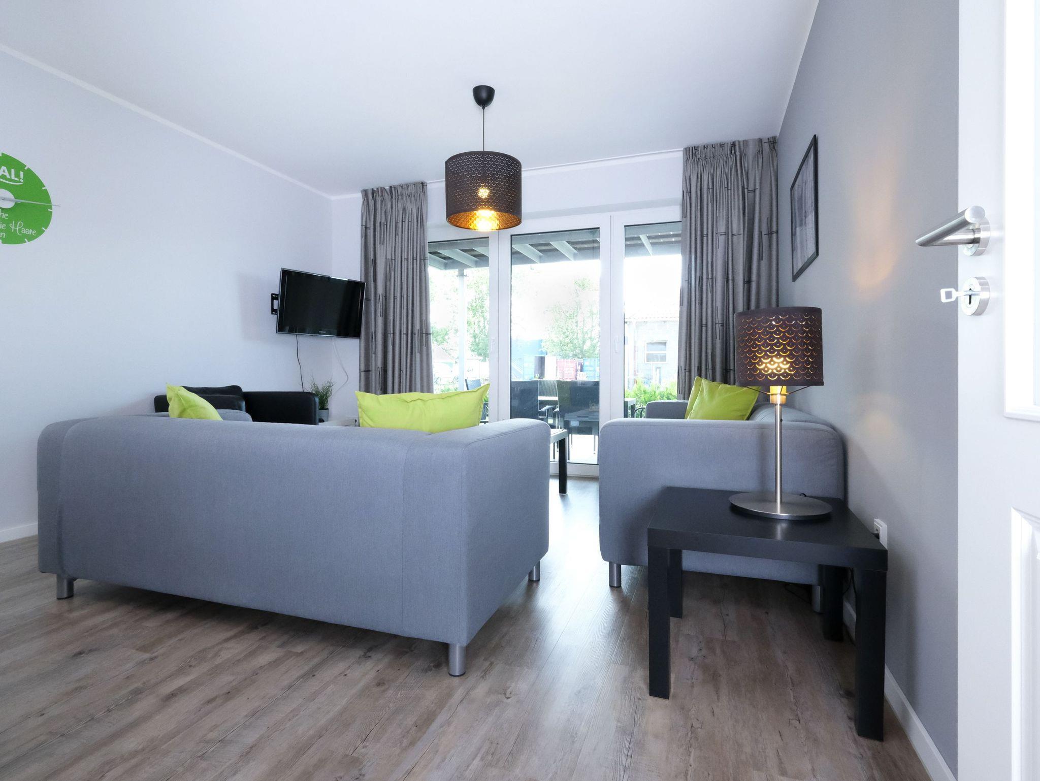 Die Wohnung Nr. 2 im Friesenhuus Carolinensiel verfügt über einen geräumigen Flur mit Garderobe und gewährt Zutritt zum modernen Badezimmer mit WC, Waschtisch, bodengleicher Dusche und Fön. Den Mittelpunkt der Wohnung stellt der offen gestalte Wohn- und Essbereich mit großer Fensterfront zu Terrasse und Garten dar. Hier lädt eine gemütliche Couch-Ecke mit Sessel zum Verweilen ein. Für die passende Unterhaltung sorgen Gesellschaftsspiele, ein Flachbild-TV mit Smart-TV, Blu-ray-Player und Hi-Fi-System. Die hochwertige Küchenzeile ist voll ausgestattet und verfügt über eine Spülmaschine, einen Backofen mit Cerankochfeld, eine Mikrowelle, einen großen Kühlschrank mit separatem Gefrierfach, eine Kaffeemaschine (wahlweise Pad oder Filter), einen Wasserkocher, Toaster u.v.m. Am Esstisch finden bis zu 5 Personen Platz.