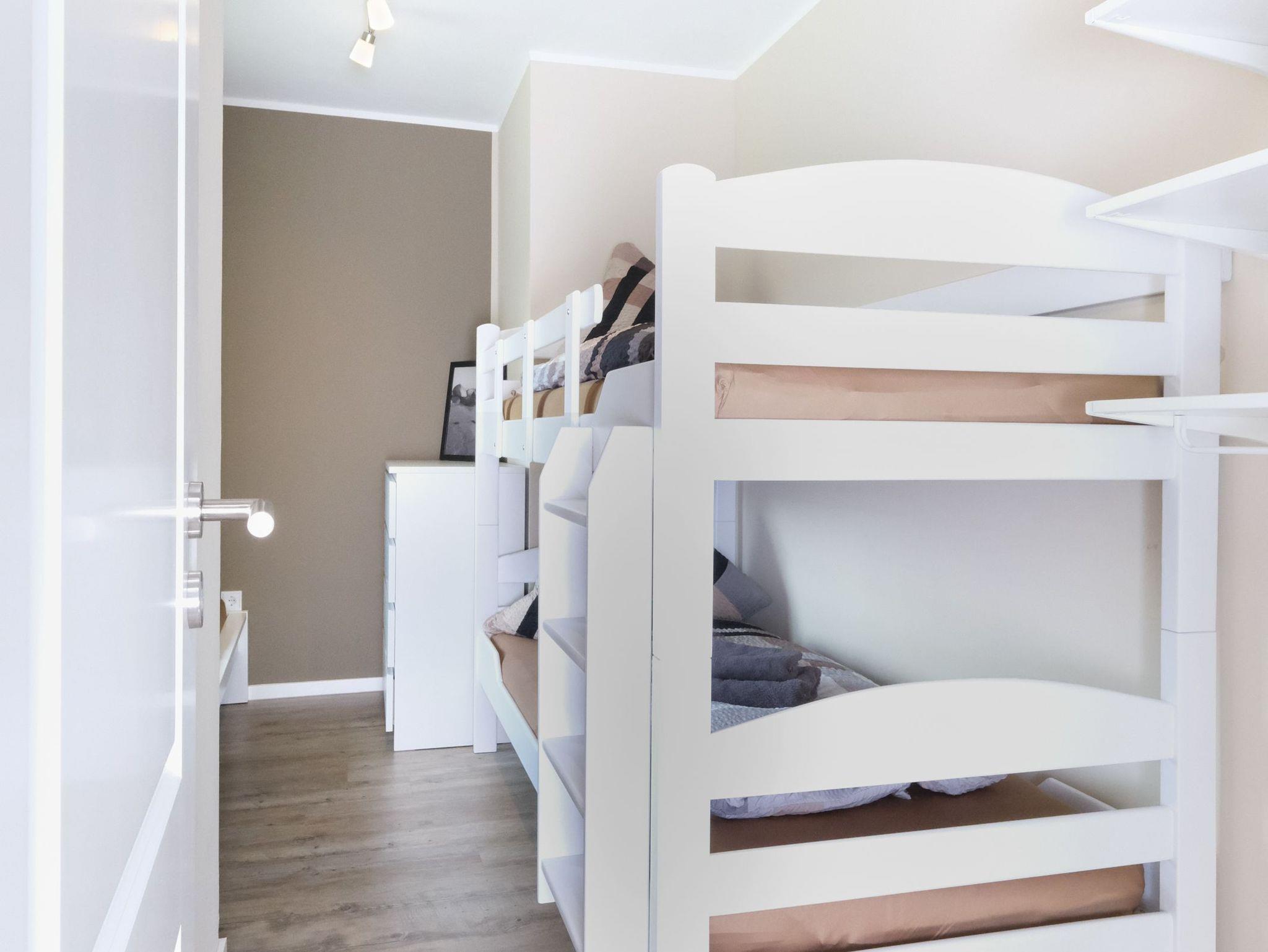 Das Elternschlafzimmer ist großzügig geschnitten und bietet Ihnen einen direkten Blick in den Garten. Es ist mit einem Doppelbett (180x200) mit offenem Fußende ausgestattet. Im zweiten Schlafzimmer steht Ihnen ein Einzelbett und ein Etagenbett (je 90x200) zur Verfügung. Damit ist das Schlafzimmer für 2 Erwachsene oder 3 Kinder optimal ausgelegt. Beide Schlafzimmer verfügen über einen Wandschrank und Verdunklungsmöglichkeiten.