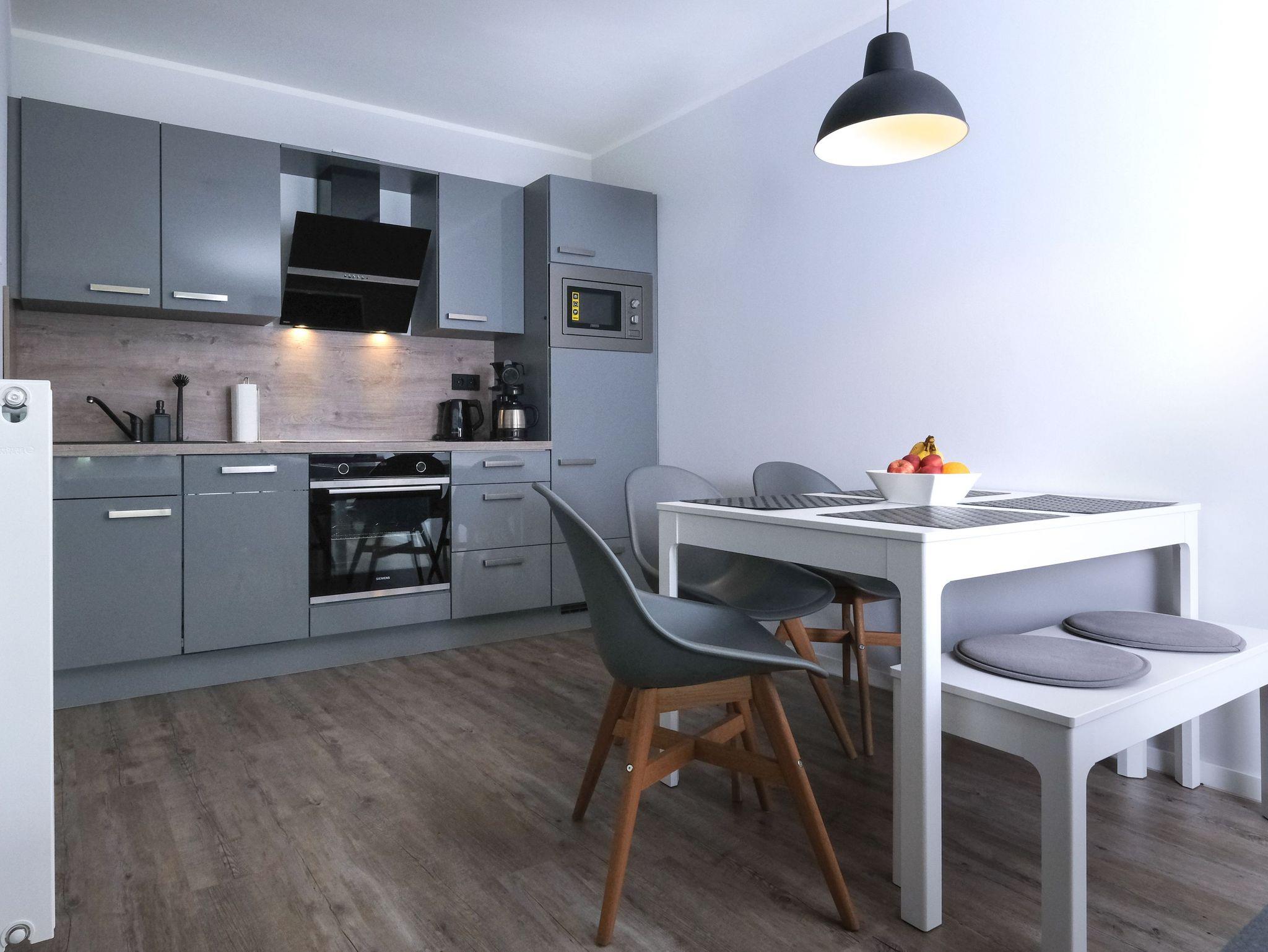 Auf 52m² bietet diese stilvoll eingerichtete Ferienwohnung im Erdgeschoss ausreichend Platz für bis zu 5 Personen. Nach einer zweijährigen Kernsanierung steht die neu gestaltete Ferienwohnung seit 2023 Urlaubsgästen zur Verfügung, die ein modernes, maritimes Flair und gehobenen Komfort suchen.