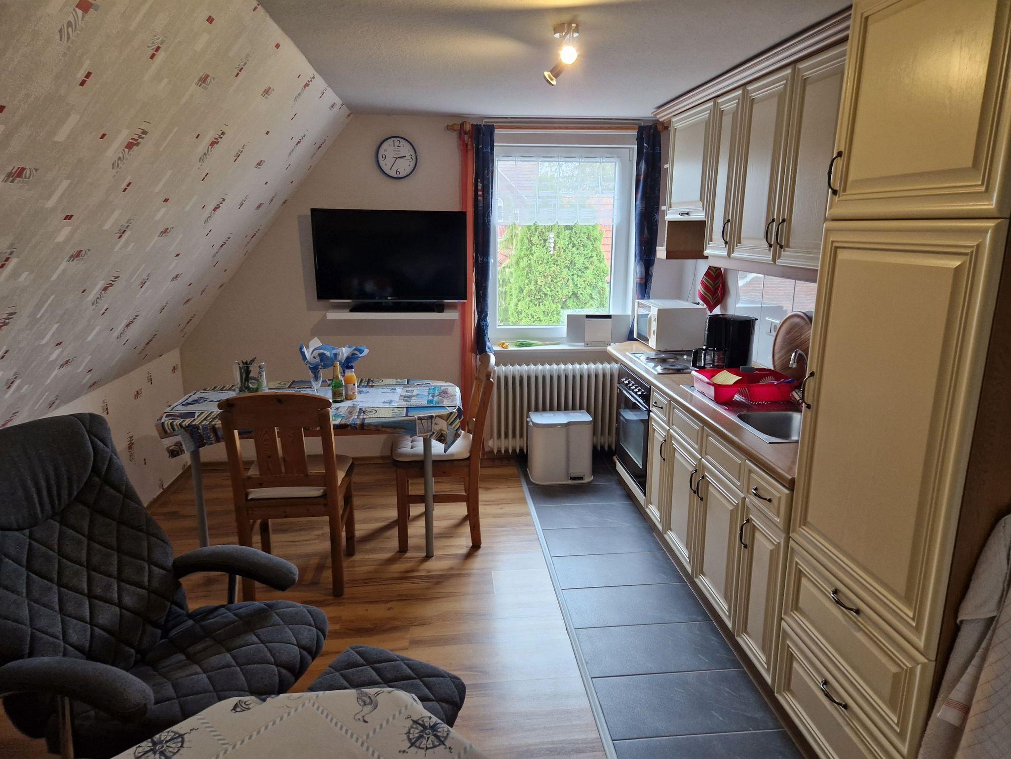 Gemütliche Nichtraucher-Oberwohnung für 2 Personen in zentraler Sackgassenlage. Nur wenige Gehminuten vom historischen Museumshafen (Lokale, Geschäfte, Bäckerei...). Unsere Wohnung bietet Ihnen ein Schlafzimmer mit Doppelbett, Wohnzimmer mit Eßecke und Küchenzeile (Mikrowelle, Backofen, Toaster, Kaffeemaschine...) und Sat-Tv. Badezimmer/WC. Terrasse in Südlage, kostenloser Parkplatz am Haus. Bettwäsche und Handtücher kostenlos. Keine Haustiere, daher Allergiker geeignet.