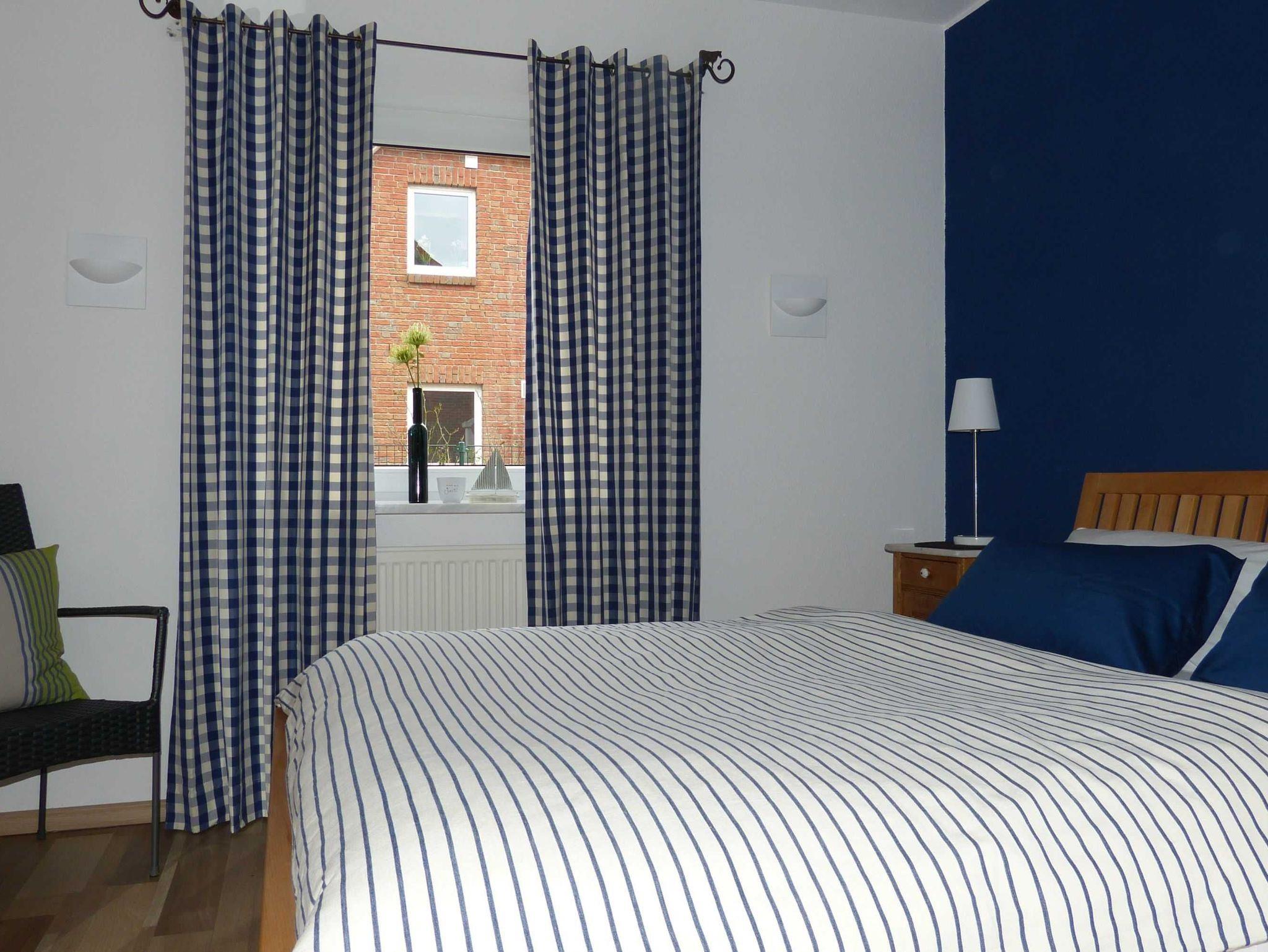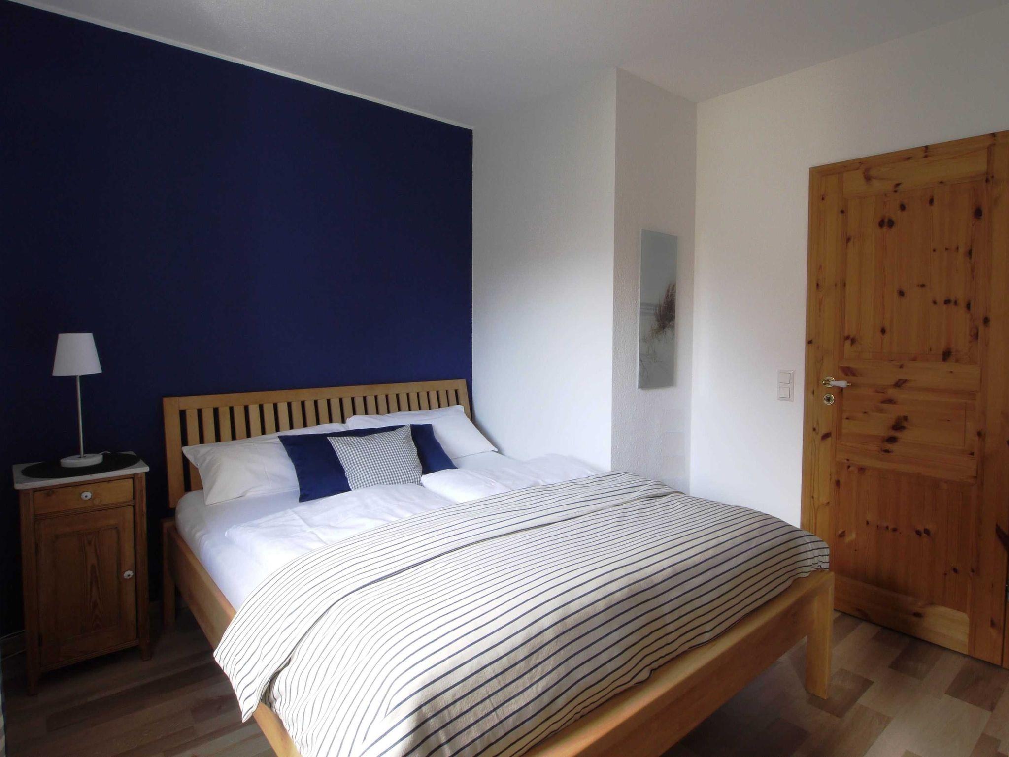 Der Wohn- und Essbereich lädt zum Verweilen ein. Flachbildschirm-TV (Sat) und eine HIFI-Anlage sind vorhanden. Direkt vom Wohnraum aus gelangen Sie auf eine geschützte Südterrasse mit Gartenmöbeln und Sonnenschirm. In der zum Wohnraum offenen Erle-Einbauküche, die neben den üblichen Haushaltsgeräten mit Backofen und Spülmaschine ausgestattet ist, macht das Kochen auch im Urlaub Spaß. Das weißgeflieste Bad hat eine hochwertige Sanitärausstattung und Fußbodenheizung. Wir haben die Schlafzimmer mit Massivholzmöbeln ausgestattet, die bequemen Matratzen und Oberbetten sind allergikergerecht. Das Bett im Schlafzimmer Deichgrün ist 1,80 m breit, das Bett im Schlafzimmer Meerblau ist 1,60 m breit. Der zur Wohnung gehörende PKW-Stellplatz ist direkt am Haus. Im separaten Abstellraum befindet sich die Waschmaschine und eine Unterstellmöglichkeit für Fahrräder.