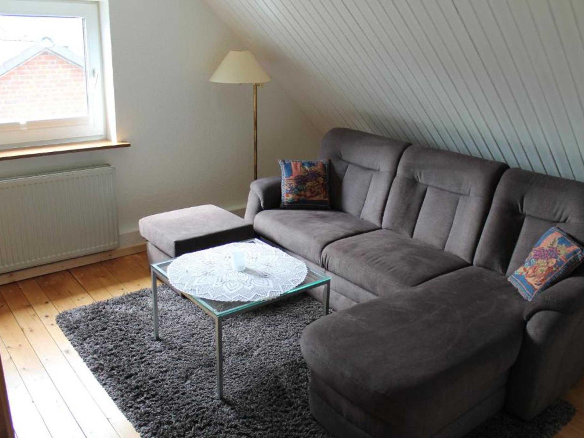 Die Wohnung befindet sich in der 1. Etage und ist ca. 32 qm groß. Sie hat 1 Schlafzimmer, Wohnzimmer, Küche, Dusche/WC, kostenfreies WLAN.