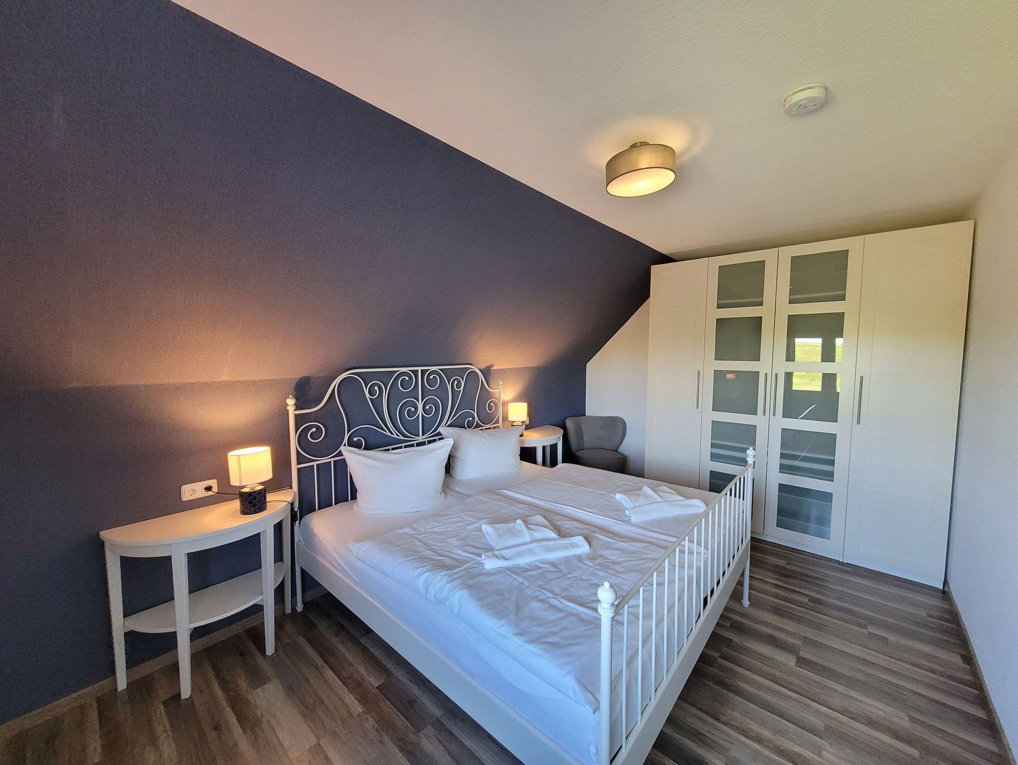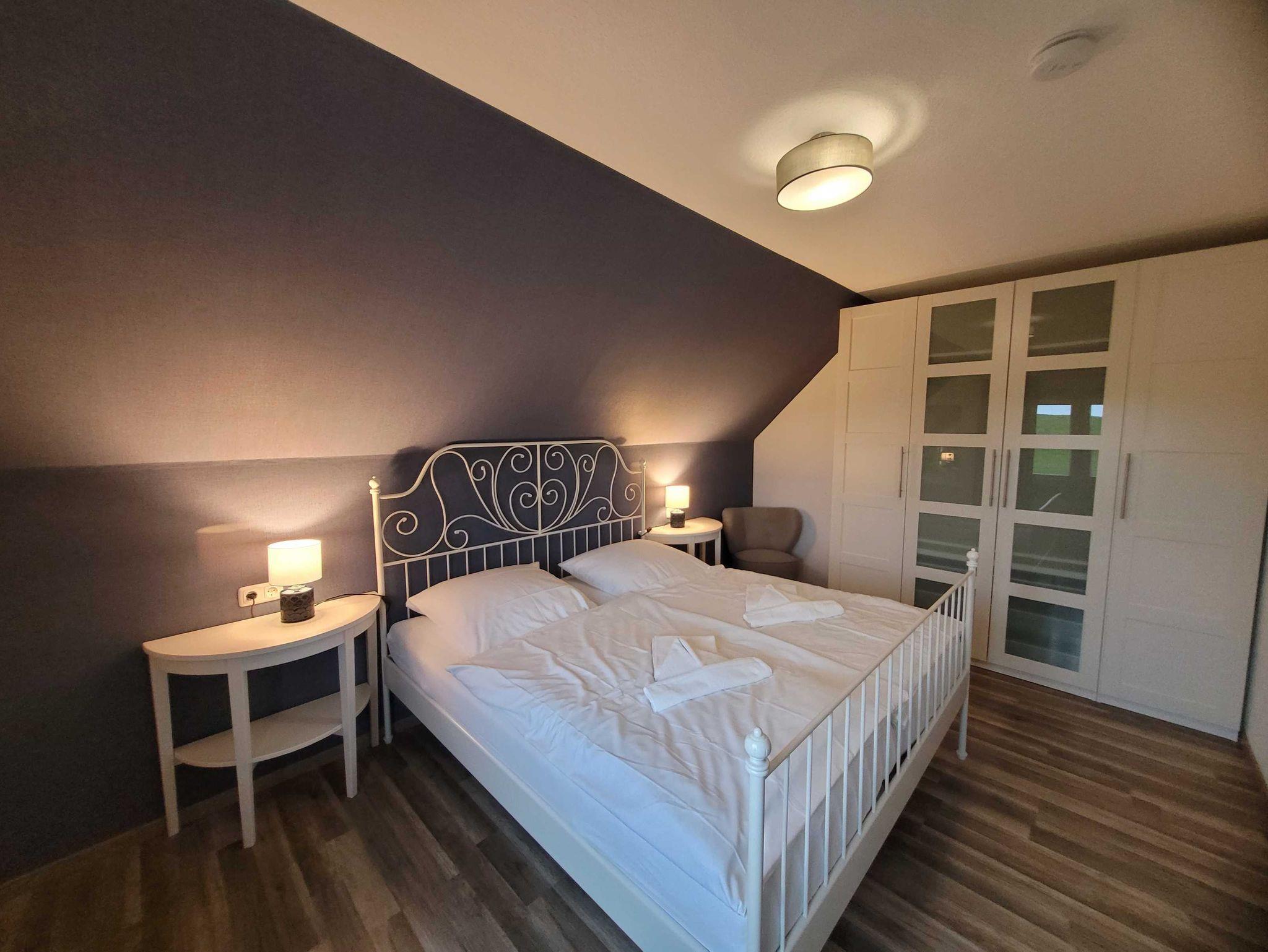 Die Fewo verfügt über ein Schlafzimmer mit Bettwäsche, ein Badezimmer mit Handtüchern und Fön, einen Flachbild-Smart-TV/extra DVD-Player und eine voll ausgestattete offene Küche mit integrierter Spülmaschine und separaten Essbereich.