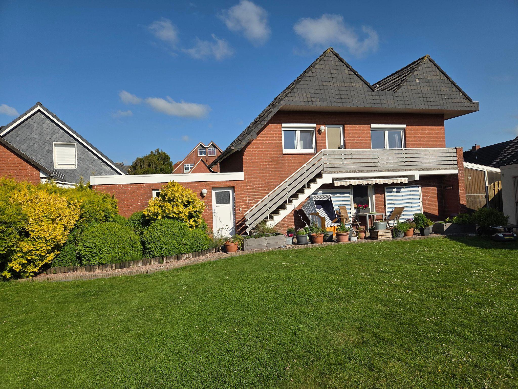 Außerdem haben Sie vom vorhandenen Balkon einen Blick in unseren Garten sowie auf den Deich und können den Sonnenuntergang von dort aus genießen.