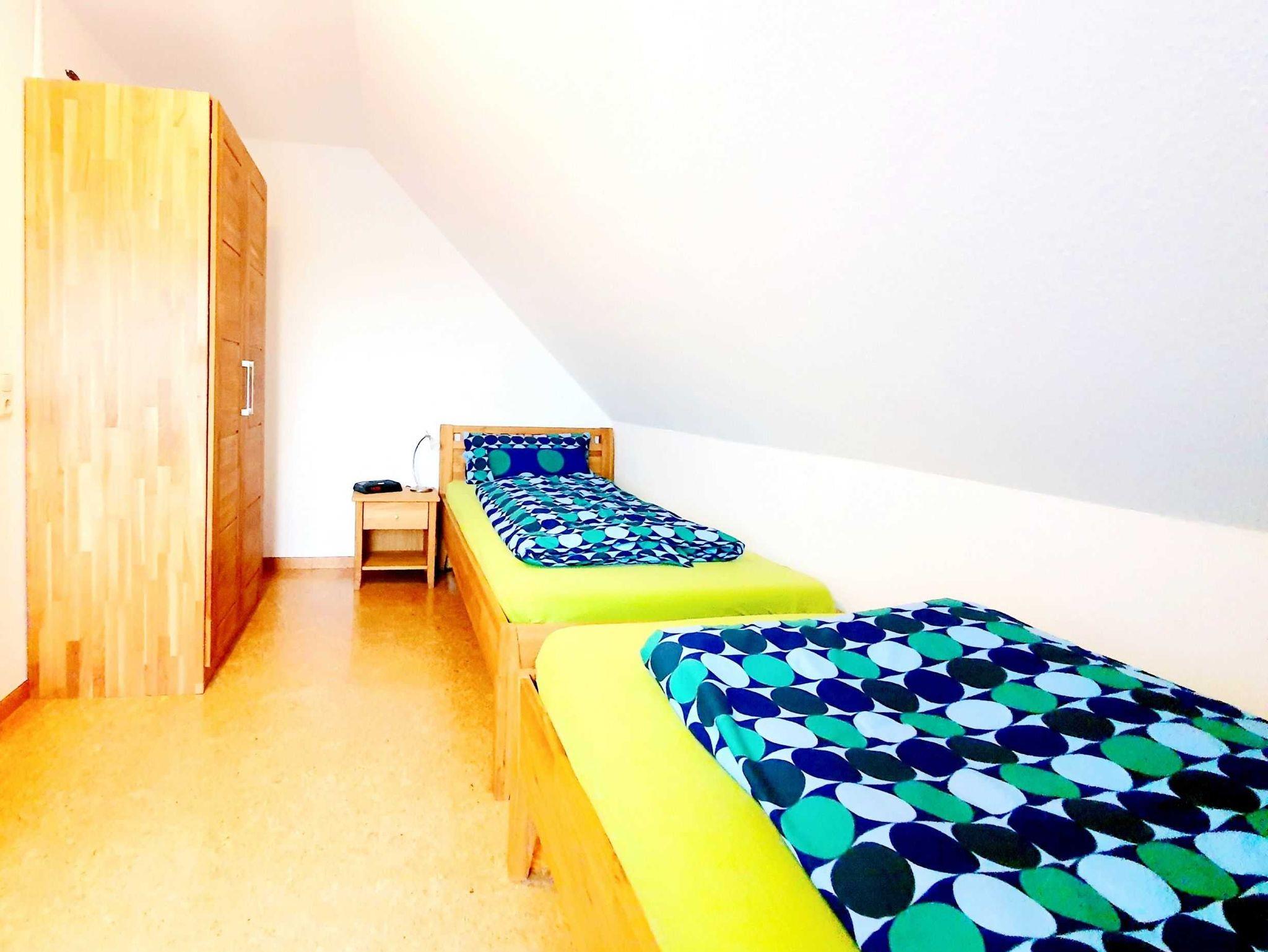 Im Erdgeschoss empfängt sie ein Wohn- und Esszimmer mit integrierter Küche. Von hier aus haben sie den direkten Zugang zur Terrasse. Auch ein kleines WC findet sich im Eingangsbereich. Eine ausreichend große Treppe führt sie in die zwei Schlafräume und ein großes Badezimmer mit Dusche, Waschmaschine und Wäschetrockner. Auch für die Kleinsten ist gesorgt. Hochstühle, Steckdosensicherungen und Treppensicherungen sind vorhanden ebenso wie Tritthocker vor den Waschbecken. Ein Bügelbrett sowie ein Bügeleisen sind vorhanden und last but not least gibt es natürlich IM GANZEN HAUS WLAN!