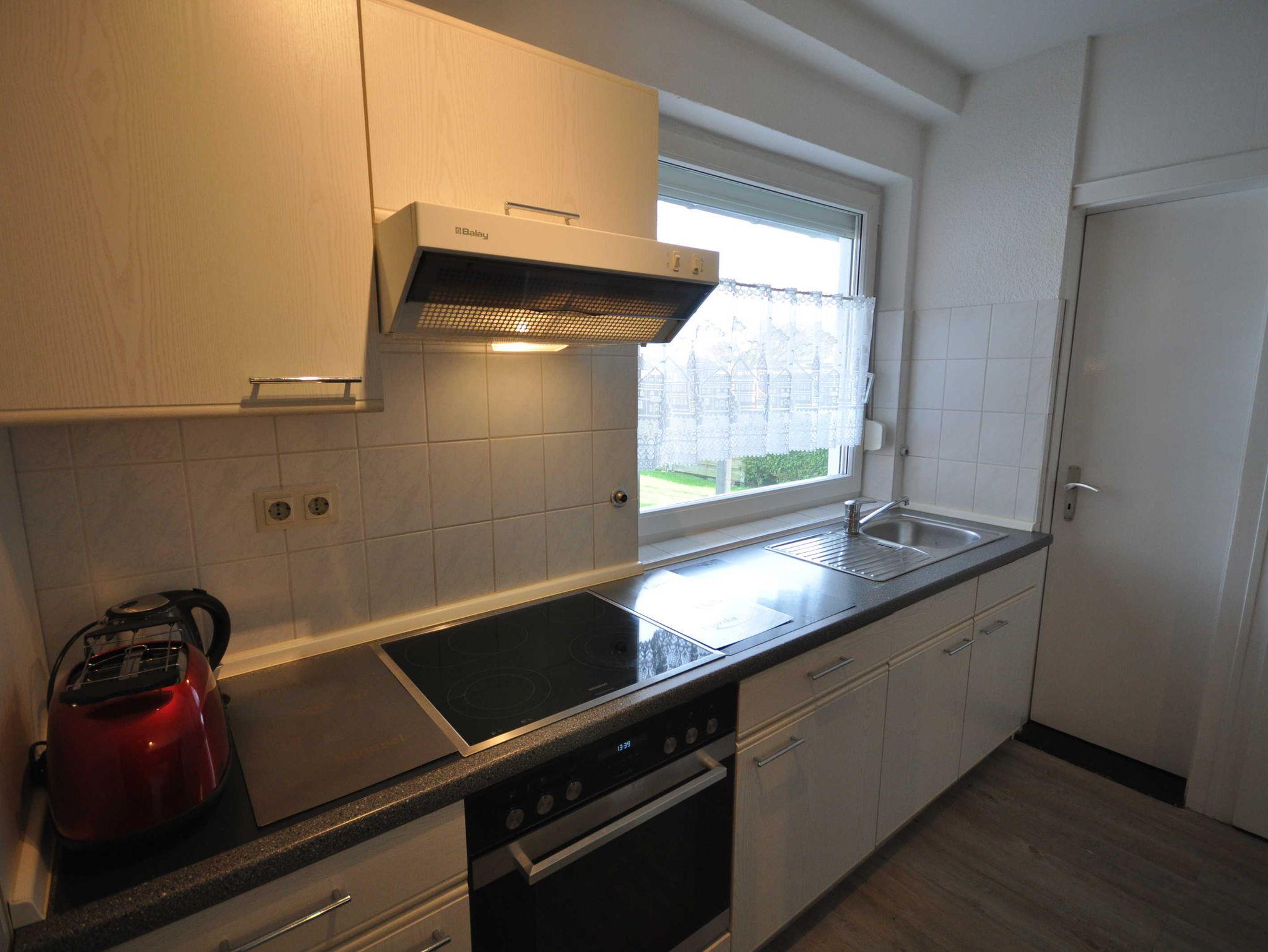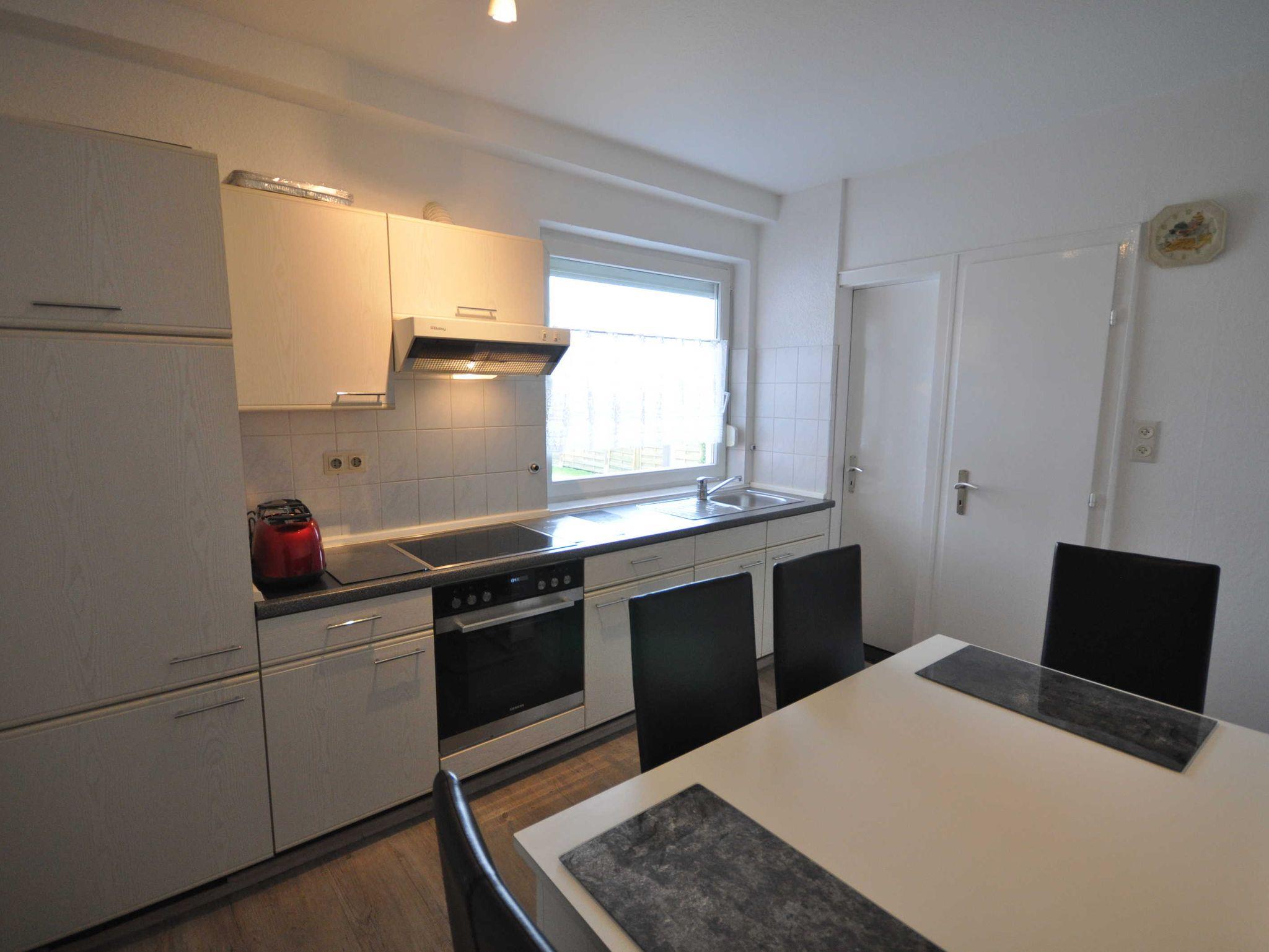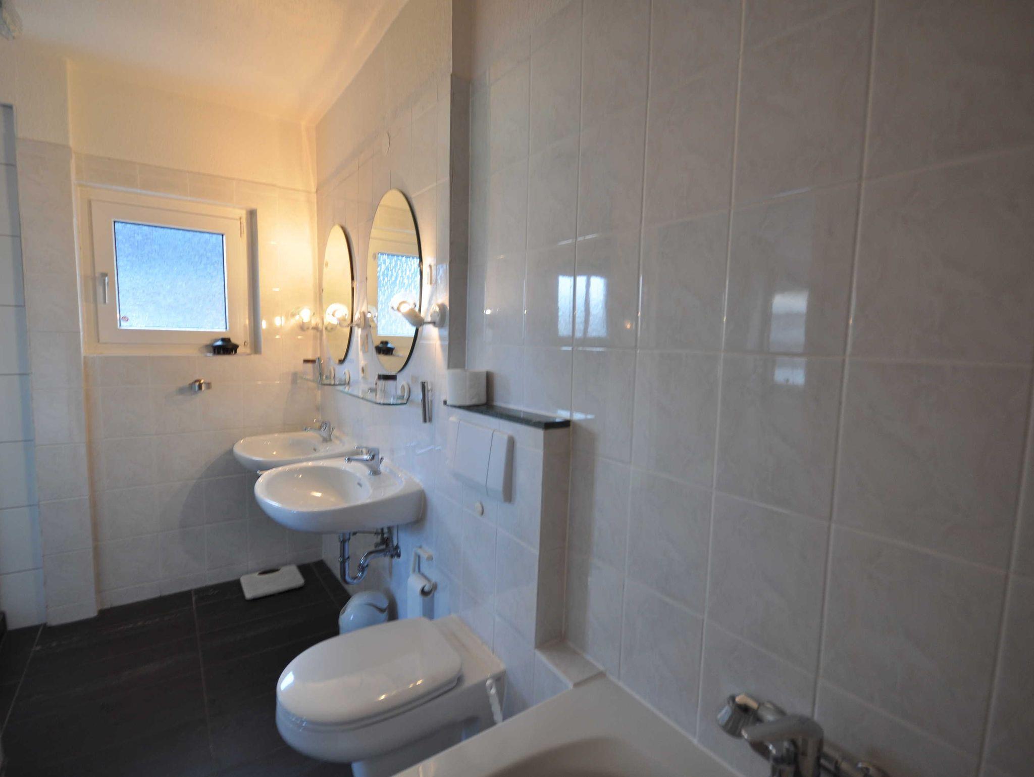 Diese ca. 65m² große, rustikale Erdgeschosswohnung wurde Ende 2018 renoviert und verfügt über einen großen Wohnraum mit Kamin (offen) und einer Essecke. Außerdem befindet sich in der Wohnung eine separate Küche mit einem weiteren Esstisch. Eines der beiden Schlafzimmer ist mit einem Doppelbett ausgestattet und bietet einen schönen Blick in den Garten. Ein weiteres Schlafzimmer verfügt über zwei Einzelbetten. Das geräumige Bad bietet neben zwei Waschbecken eine ebenerdige Dusche, eine Badewanne und ein WC. Im Keller stehen Ihnen eine Münz-Waschmaschine und Münz-Trockner zur Verfügung.