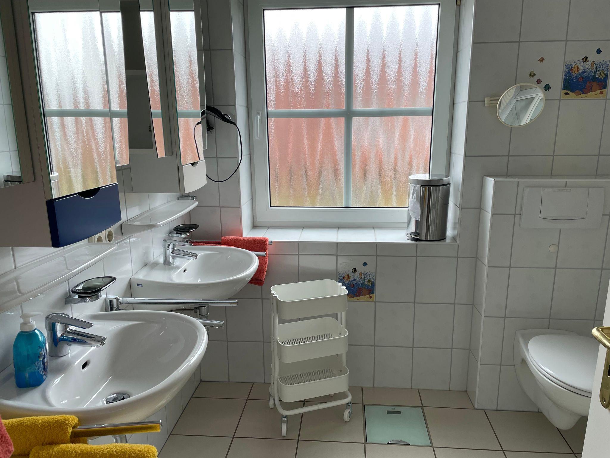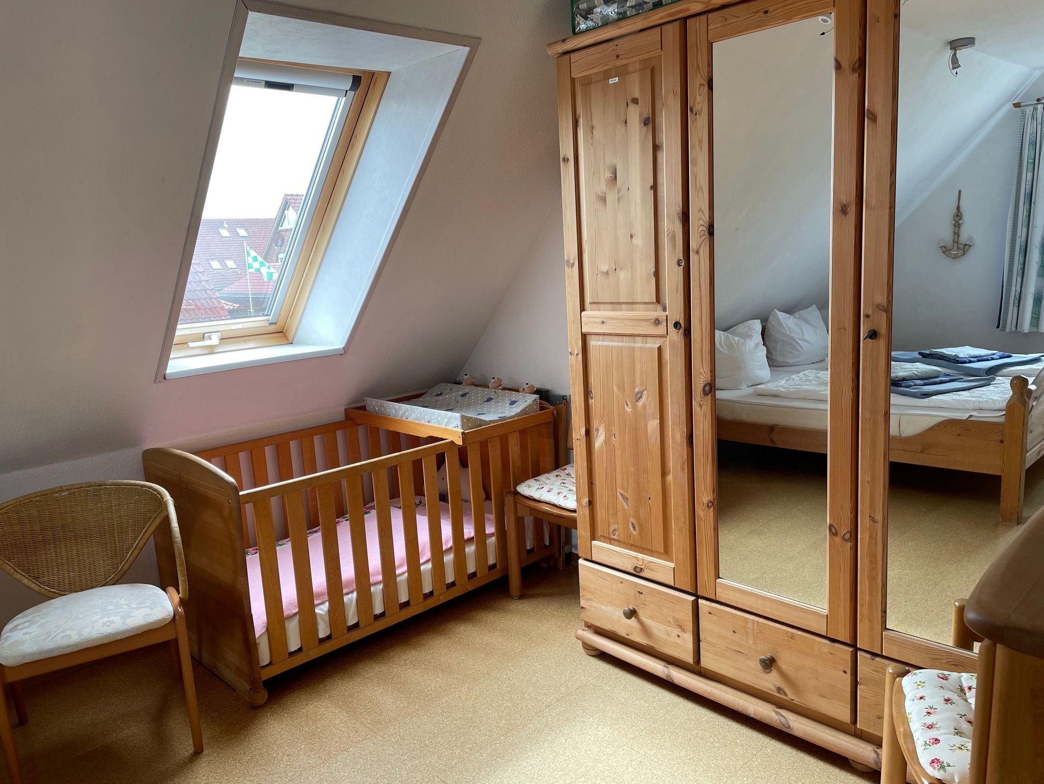 Für unsere kleinen Gäste haben wir ein Babybett, sowie eine Wickelmöglichkeit hergerichtet. Im Hochstuhl lässt es sich besonders gut mit der Familien am großen Esstisch essen. In unserem kleinen Bad im Erdgeschoss steht Ihnen eine Waschmaschine zur Verfügung, die Sie selbstverständlich kostenfrei Nutzen dürfen.