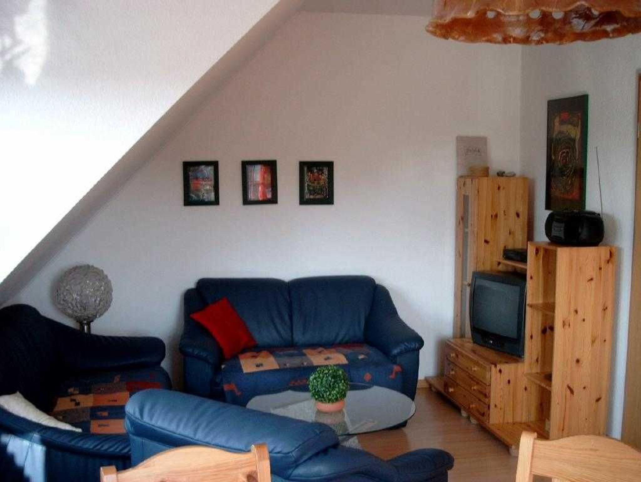 Die Wohnung befindet sich im Obergeschoss eines Hauses mit vier Wohnungen. Sie ist hell, freundlich eingerichtet und komplett ausgestattet. Haustiere sind nicht erlaubt.
