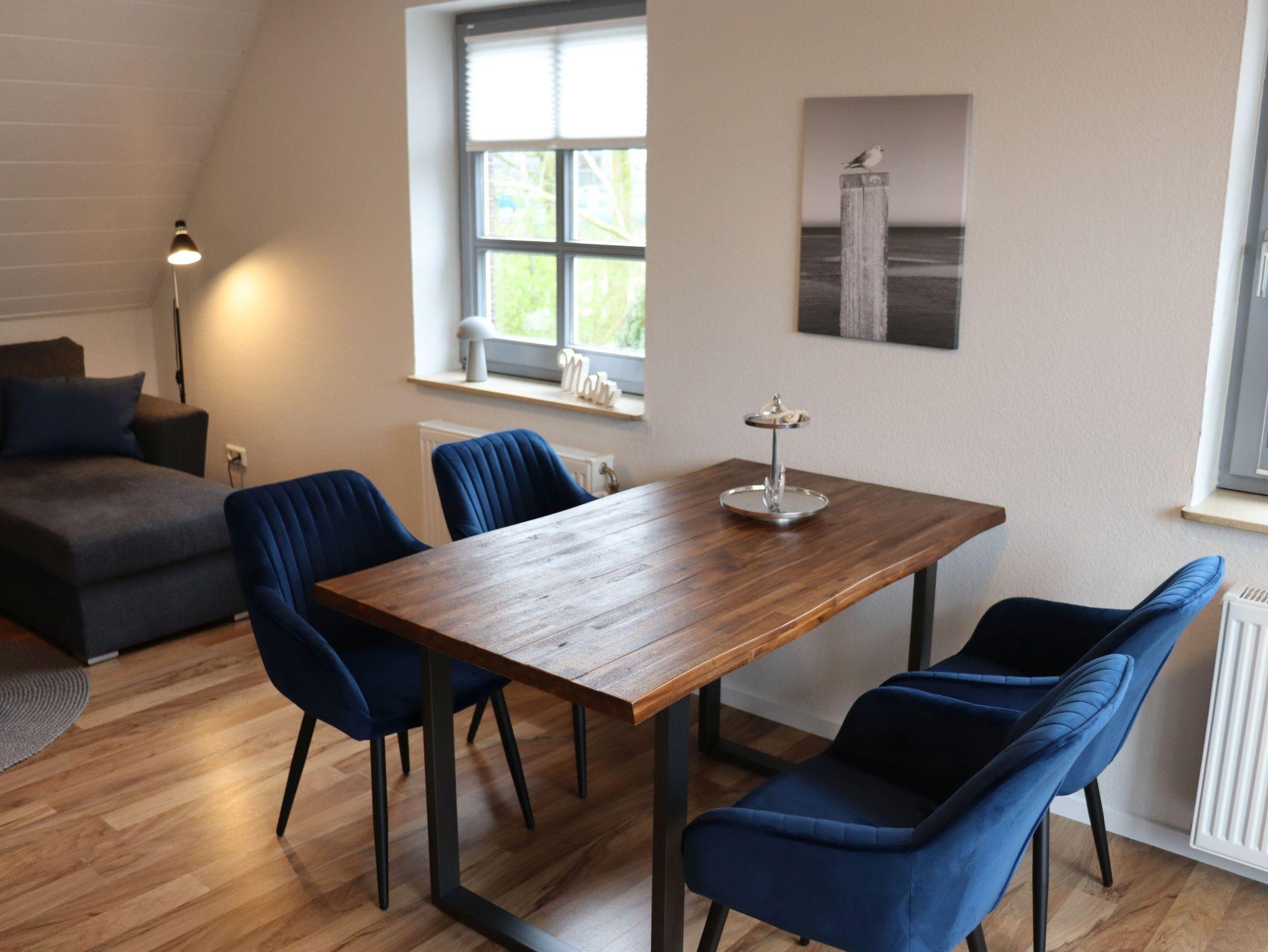 Unsere Ferienwohnung verfügt über ein großes helles Wohnzimmer mit Essbereich, einer zusätzlichen Schlafmöglichkeit und einem schönen Südbalkon zum Entspannen.