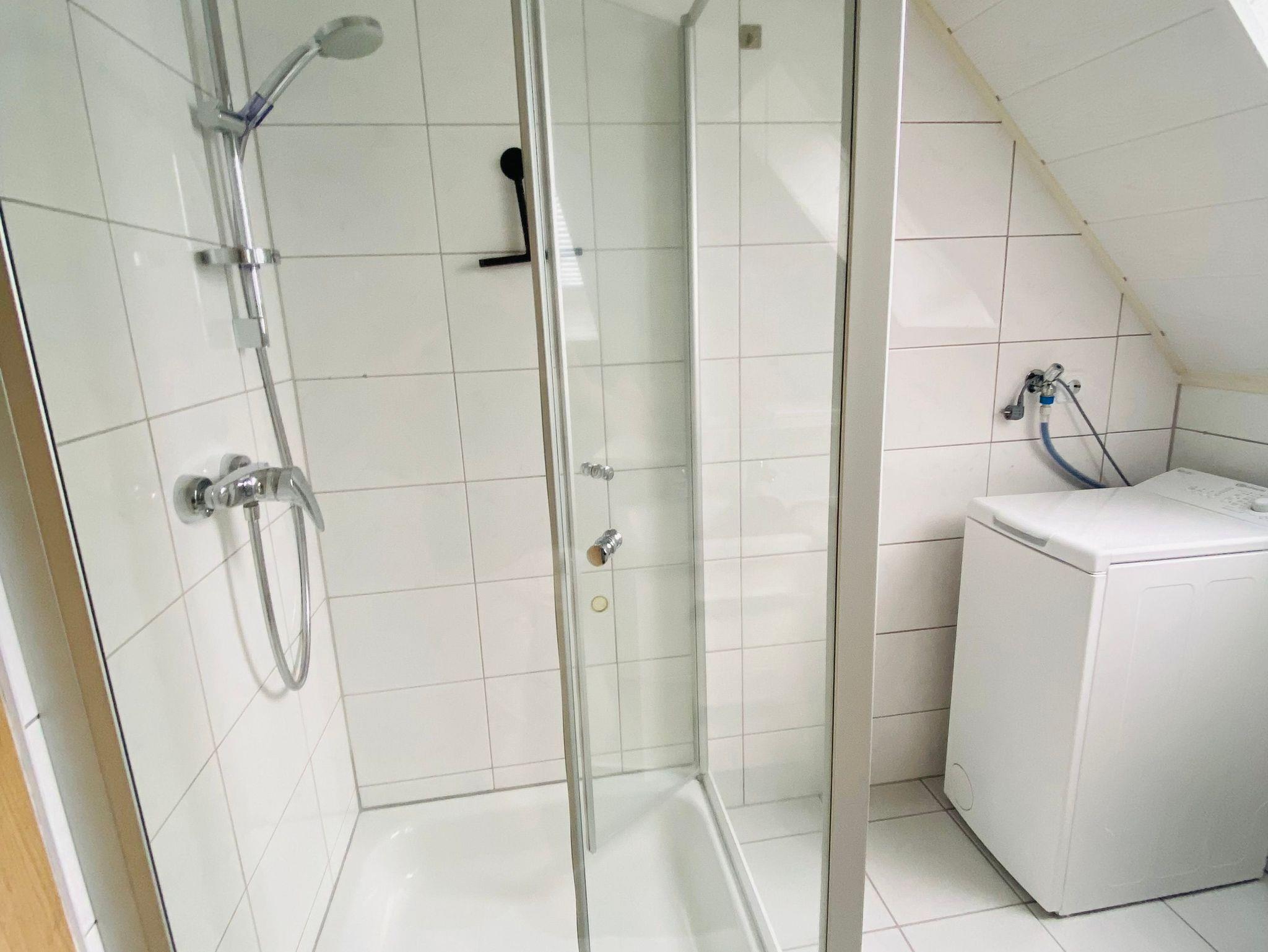 Das Badezimmer mit Tageslicht verfügt über eine Dusche und Waschmaschine.