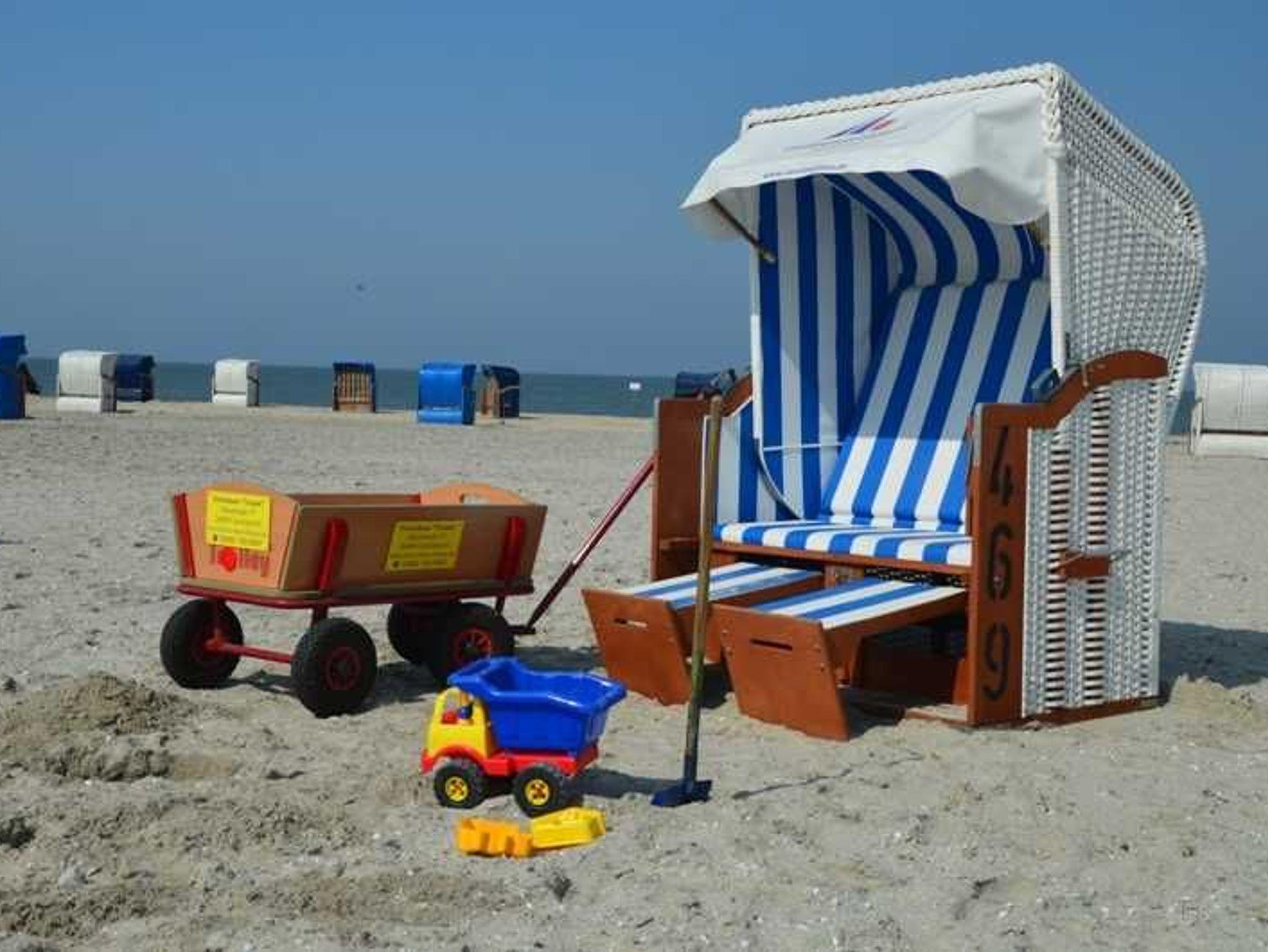 Die Familien mit den „jüngster“ Gäste genießen die Ausstattung wie: Bollerwagen mit Sandspielzeug, Kinderbücher, Kinderbett, Hochstuhl, Trampeltrecker und Treppenschutzgitter.