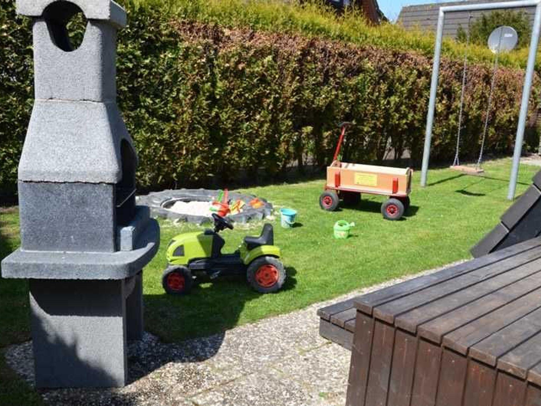 Die Familien mit den „jüngster“ Gäste genießen die Ausstattung wie: Bollerwagen mit Sandspielzeug, Kinderbücher, Kinderbett, Hochstuhl und Treppenschutzgitter. Spielhaus, kleine Wippe, Schaukel, Rutsche direkt im Garten. Des weiteren ist ein kleiner Spielplatz in unmittelbarer Nähe des Hauses.Weitere Highlights sind 2 getrennte Schlafräume mit Komfortmatratzen,Fön, Safe, Waschmaschine, Wäschetrockner.