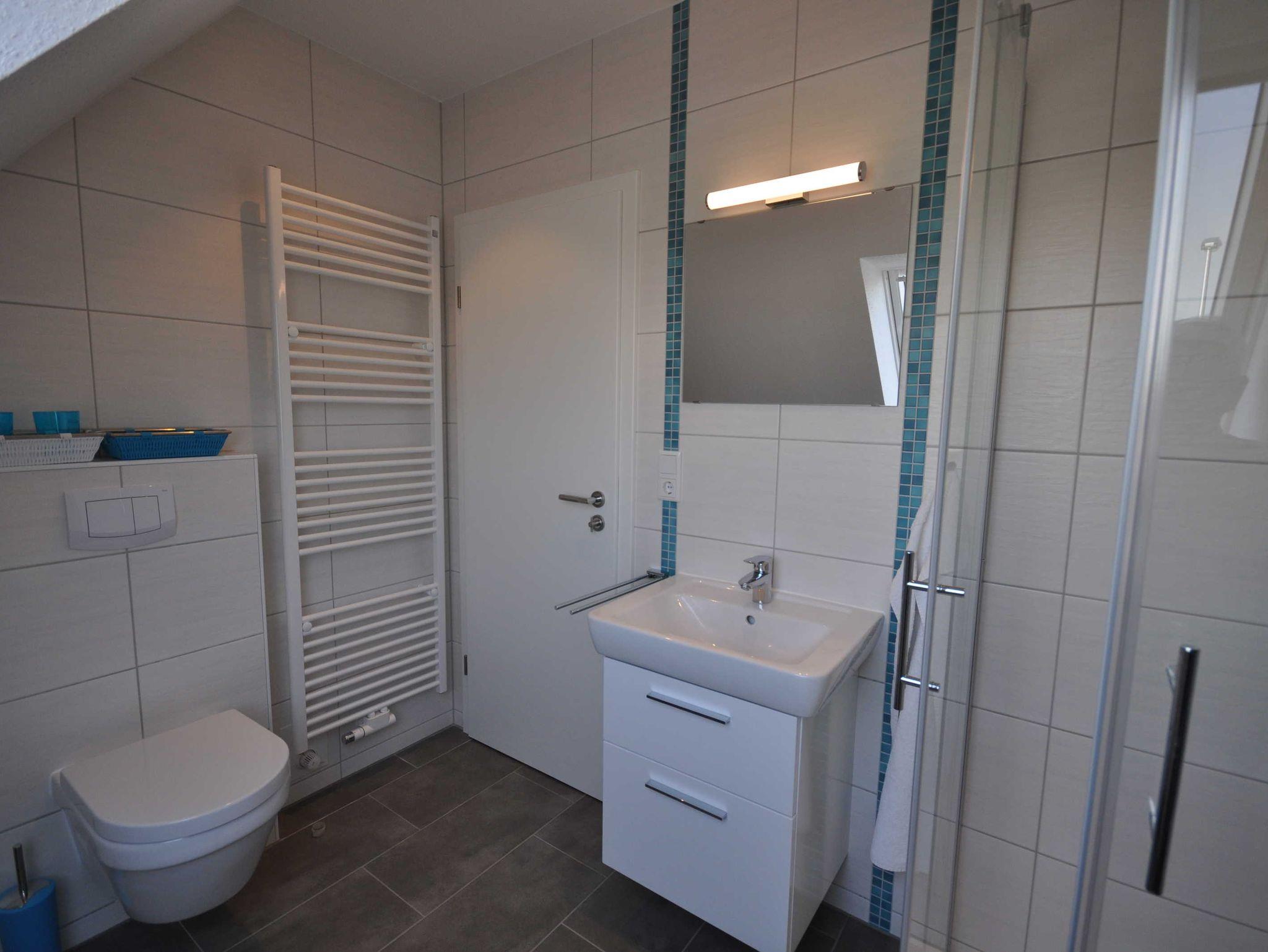 Im Erdgeschoss der ca. 76m² großen Doppelhaushälfte befindet sich ein großzügiger und freundlicher Bereich für Kochen, Essen und Wohnen. Zudem ist ein Gäste-WC vorhanden. Das Obergeschoss verfügt über drei Schlafzimmer (2 jeweils ein Doppelbett, ein Einzelbett) sowie über ein großzügiges Duschbad und bietet somit ausreichend Platz für die ganze Familie. Alle Fenster sind mit Rollläden ausgestattet und im gesamten Objekt sind Fliesen bzw. Laminat verlegt. WLAN steht Ihnen kostenfrei zur Verfügung. Eine hochwertige Ausstattung sorgt für entsprechenden Wohnkomfort.