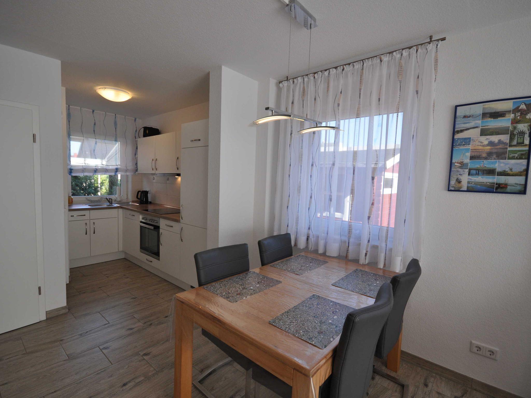 Diese neuwertige und zum Wohlfühlen ausgestattete Doppelhaushälfte liegt in einem Neubaugebiet nur wenige Gehminuten vom Ortskern entfernt. Eine möblierte Sonnenterrasse in Südausrichtung mit einem kleinem Garten lädt an schönen Tagen zum Essen mit der Familie ein. Weiterhin bietet Ihnen das Ferienhaus einen eigenen PKW-Abstellplatz, sowie ein Gartenhaus für ihre Fahrräder, Kinder- oder Bollerwagen.