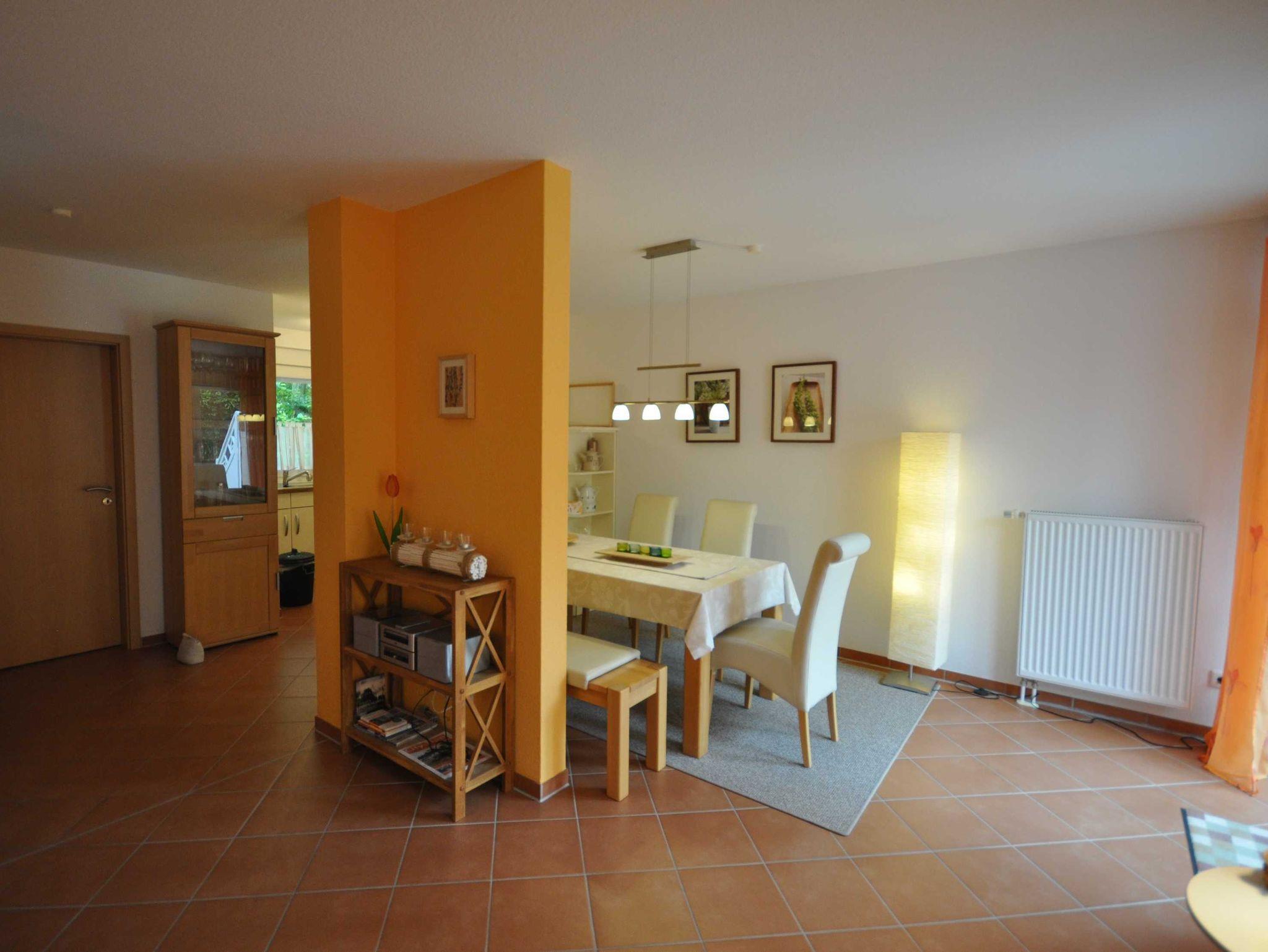 Das Reihenhaus verfügt im Erdgeschoss über einen großzügigen und hochwertig eingerichteten Wohn- und Essbereich mit offener Küche sowie über ein Gäste-WC. Eine offene Holztreppe führt vom Flur zum Obergeschoss. Hier befinden sich zwei Schlafzimmer (ein Schlafzimmer mit einem Doppelbett sowie ein Schlafzimmer mit zwei Einzelbetten) und ein Duschbad mit WC, Bodenerwärmung und Handtuchtrockner. Alle Fenster sind mit Rollläden, einige mit Insektenschutz ausgestattet. Eine hochwertige Ausführung und attraktive Ausstrahlung sorgen für Wohnqualität.