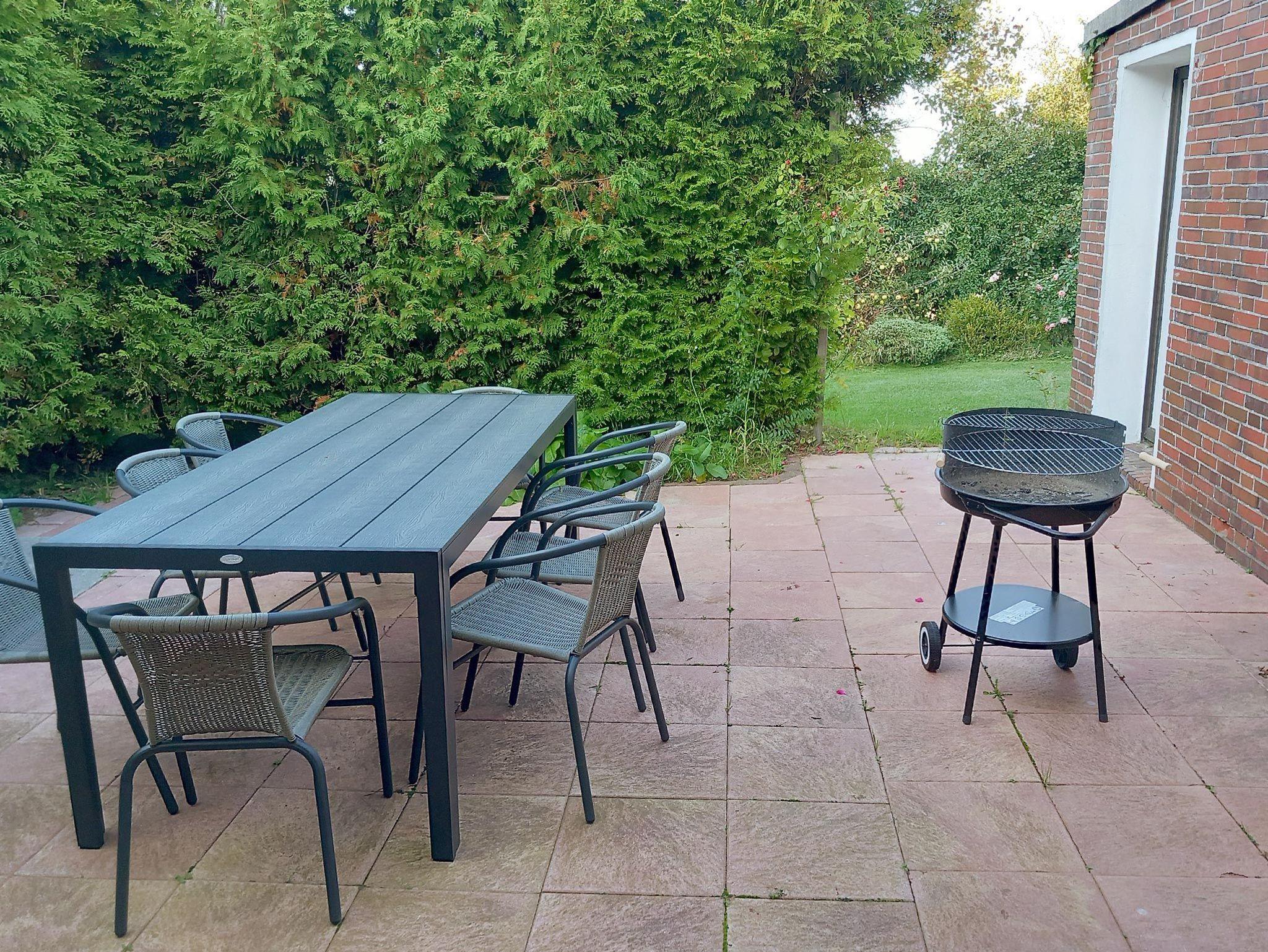 Der großzügige Garten mit dem unverbauten Blick über die Felder und die abgeschirmte Terrasse lädt zum Verweilen und Sonnenbaden ein. Durch das kostenlose schnelle Wlan kann selbst im Garten gestreamt oder gearbeitet werden.