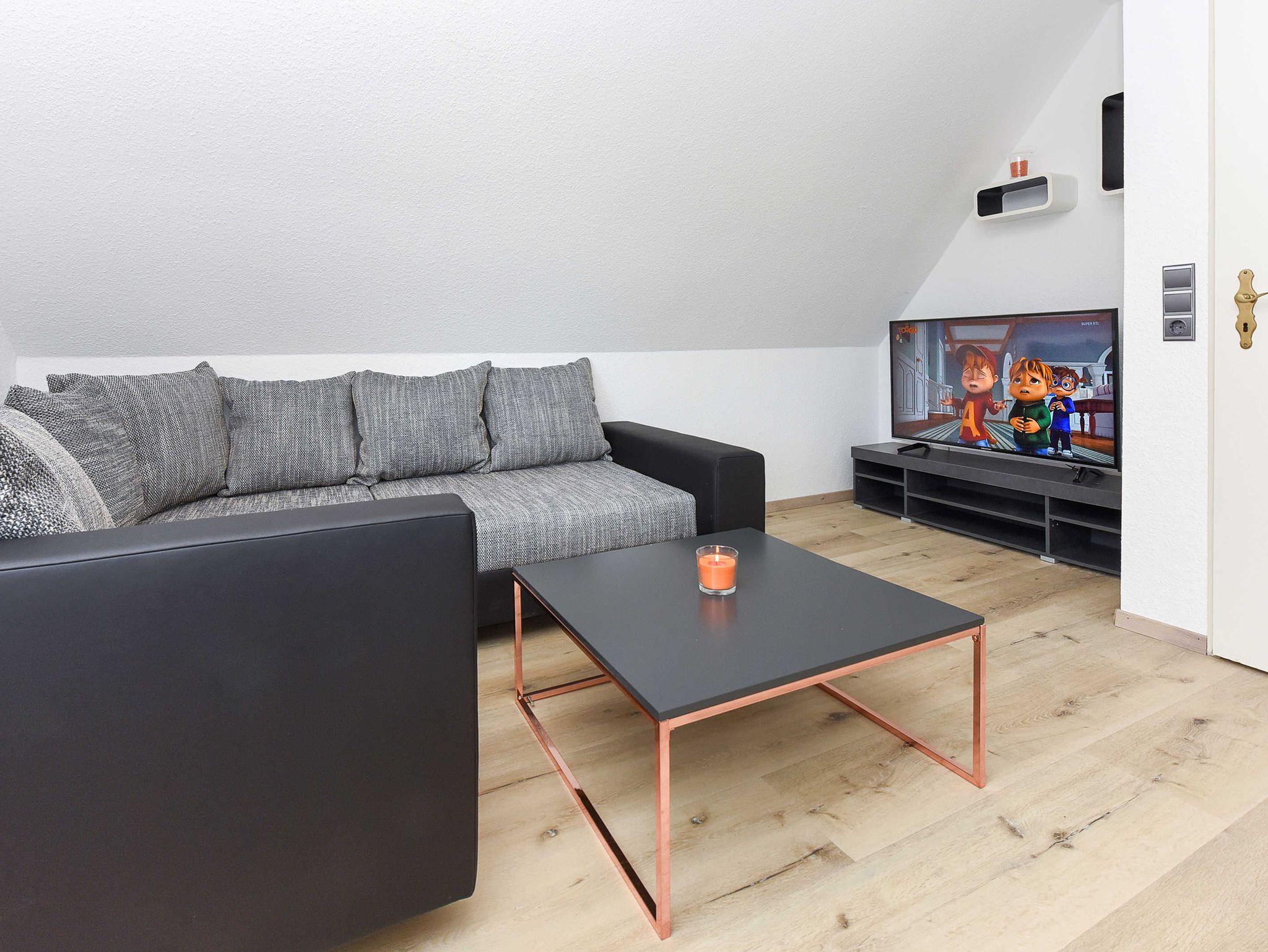 Größe ca. 60 Quadratmeter, Wohnraum mit integrierter Küche, Schlafzimmer, zweites separates Schlafzimmer/Kinderzimmer, Badezimmer mit Dusche, Waschtisch und WC, Obergeschoss, Balkon, ausschließlich für Nichtraucher, optimal für 2 bis 4 Personen und zusätzlich ein Kleinkind.