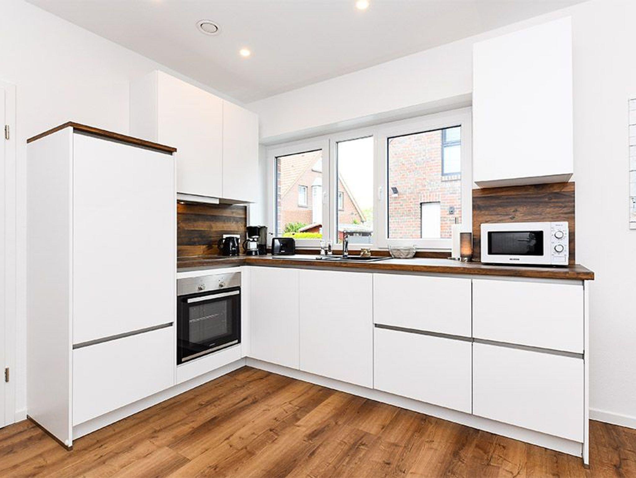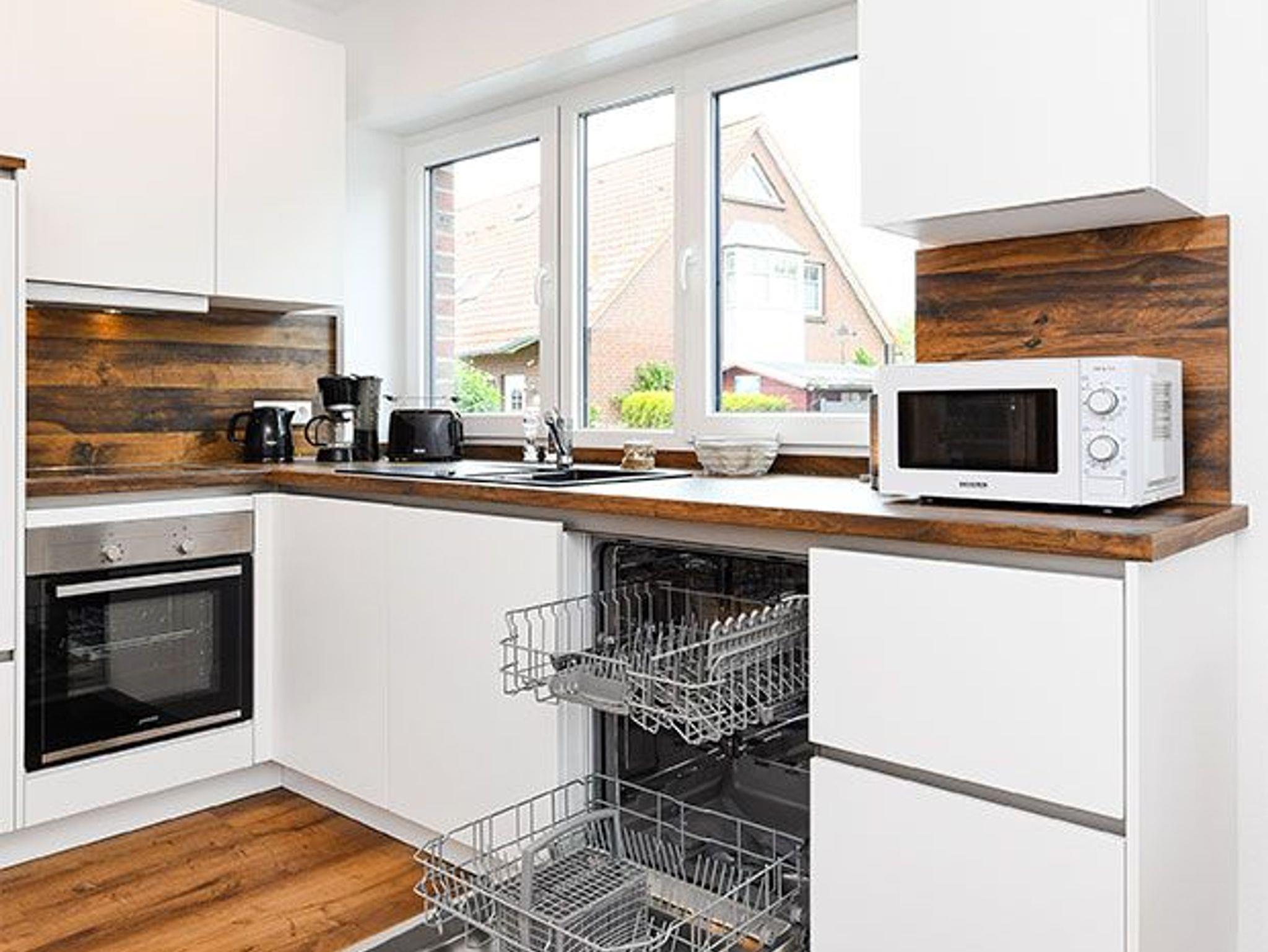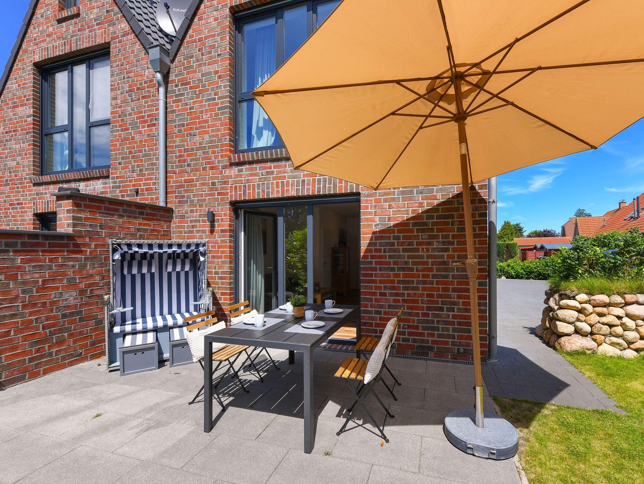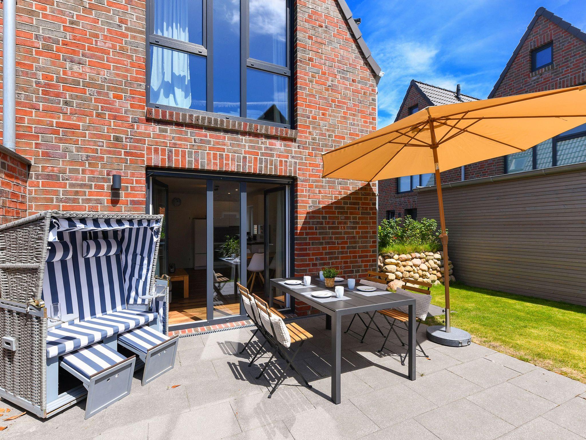 Das Ferienhaus ist modern-gemütlich, hell und freundlich gestaltet und eingerichtet sowie äußerst hochwertig mit viel Liebe zum Detail ausgestattet. Es verfügt zum Beispiel über eine Terrasse mit Strandkorb, über eine ausgestattete moderne Küche mit Geschirrspülmaschine und Mikrowelle, und es stehen Waschmaschine und Wäschetrockner zum Benutzen bereit.