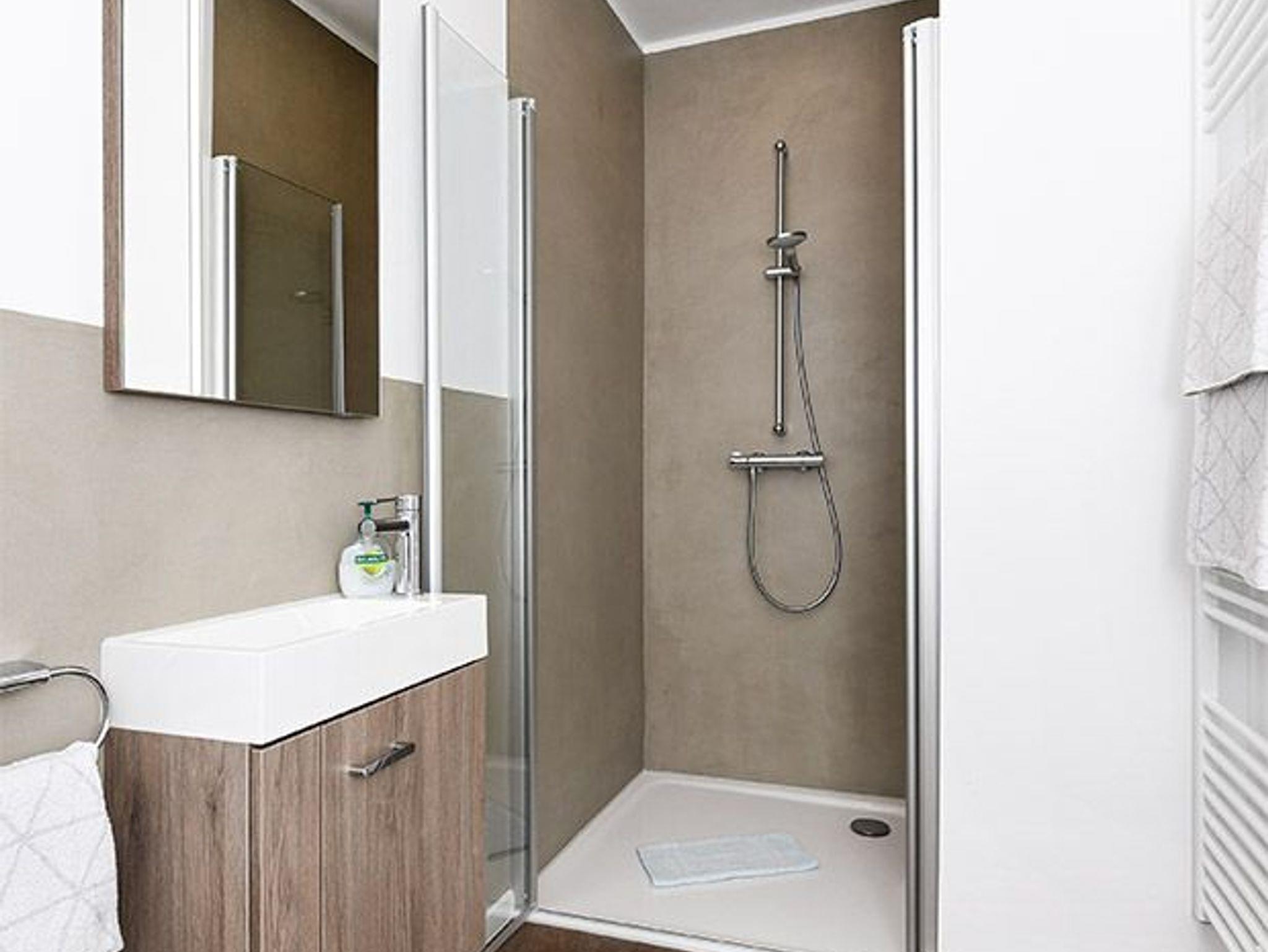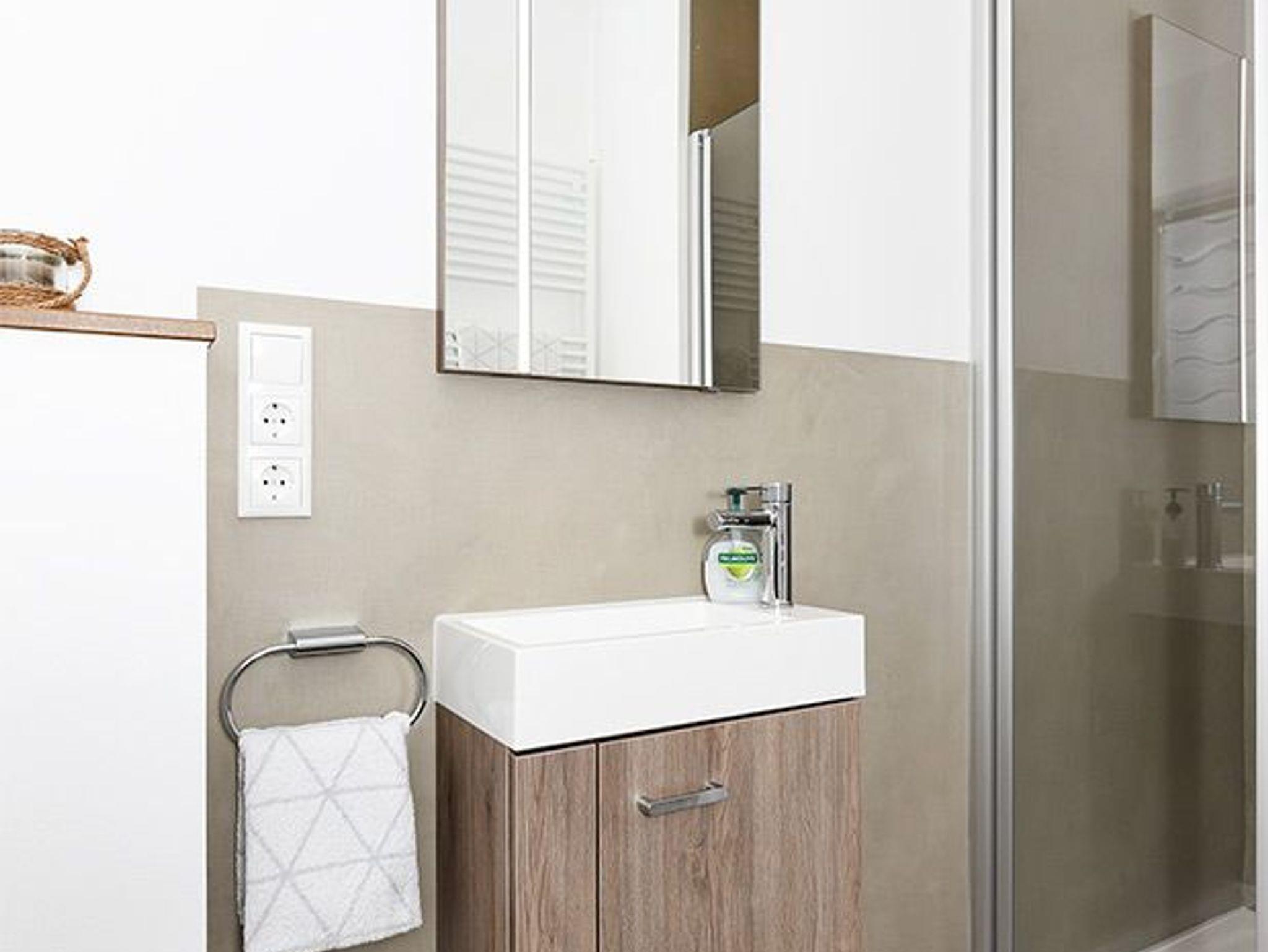 zweites Badezimmer mit Dusche, Waschtisch und WC