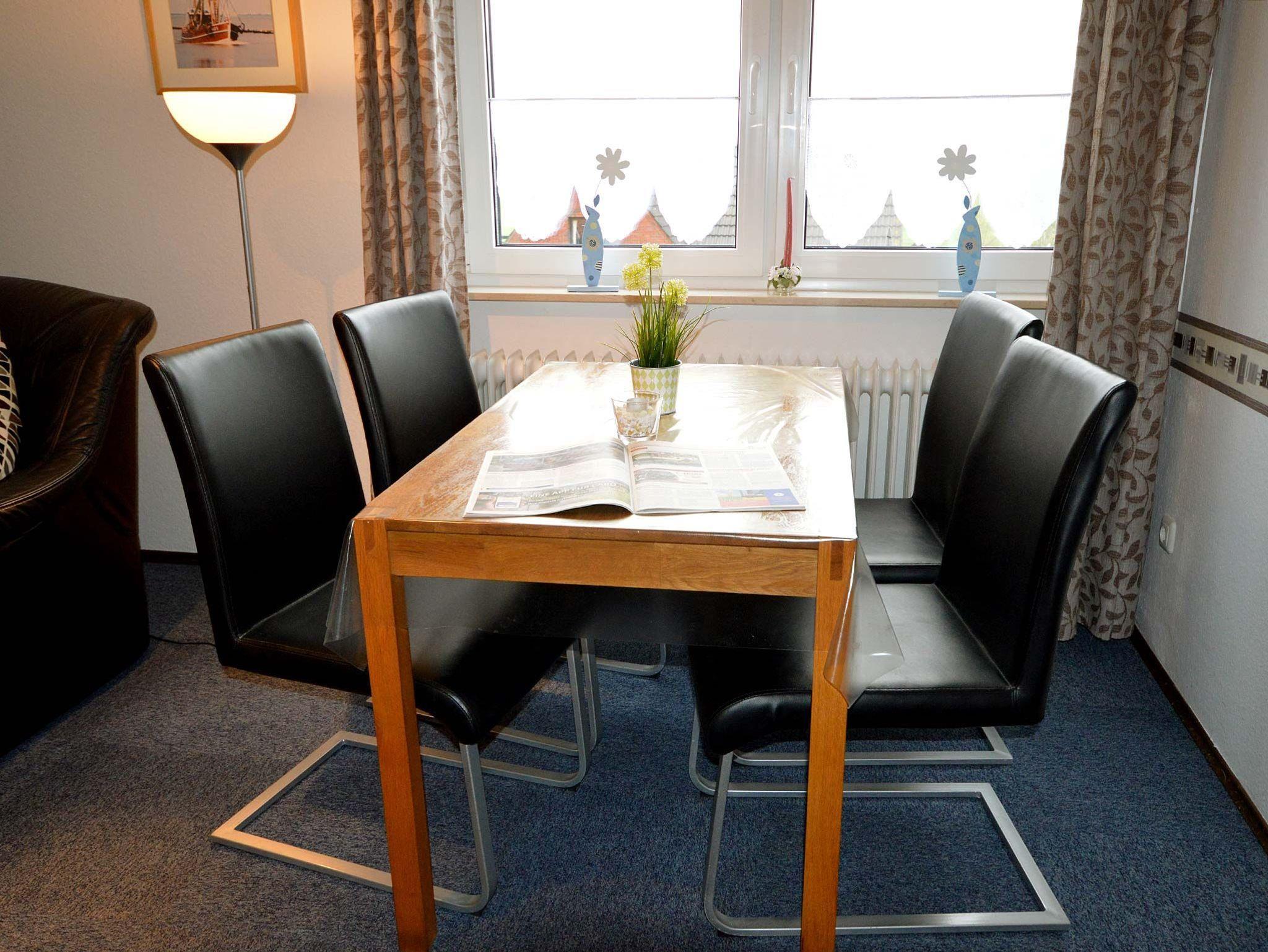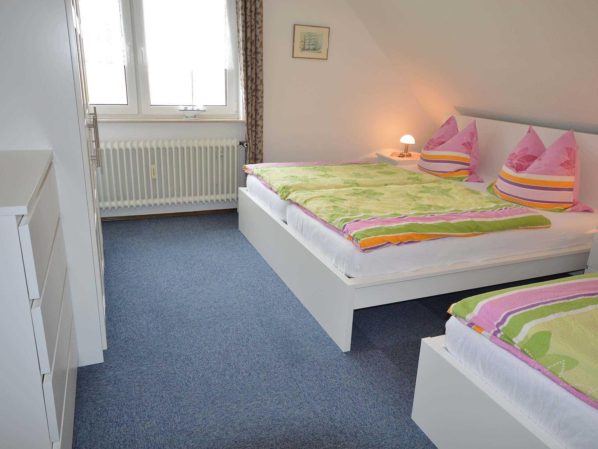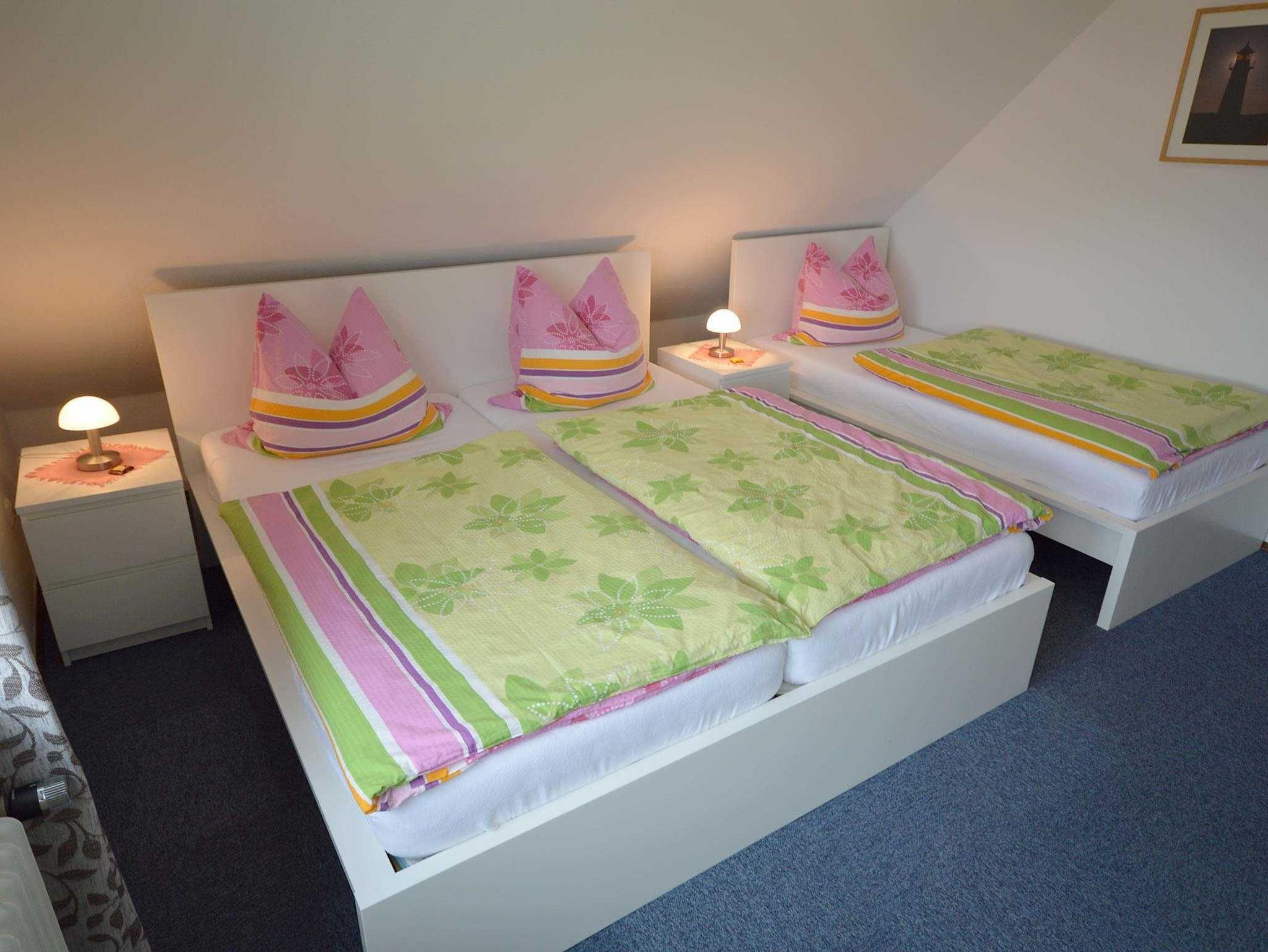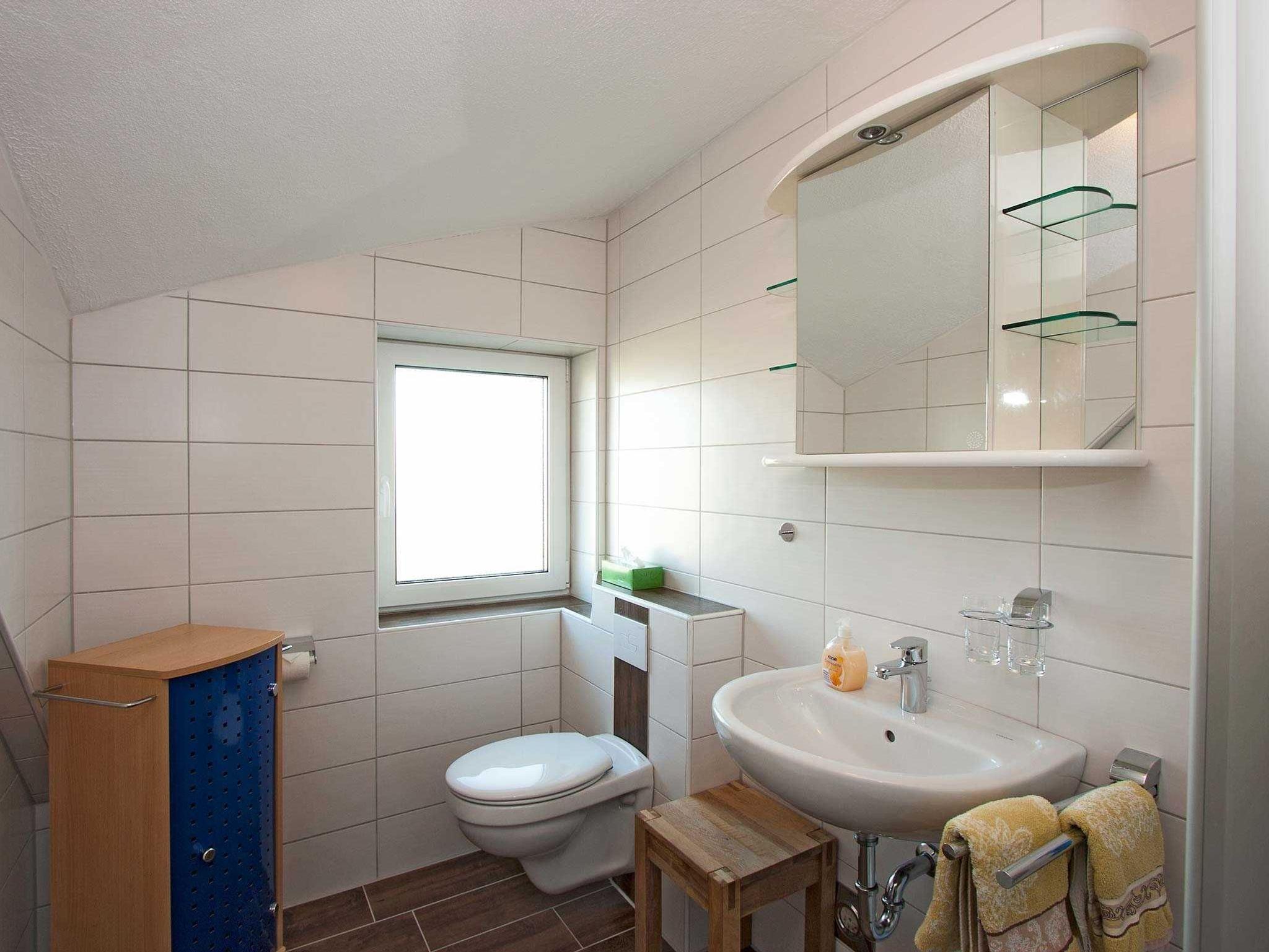 Helle und gemütlich eingerichtete Ferienwohnung für bis 3 Personen in der 1. Etage mit separatem Eingang. Ein Wohnzimmer mit Couchgarnitur (2er-Sofa, Sessel und 1 Ohrensessel), Essecke, SAT-TV Flachbildschirm und CD/Radio. Sep. Küche mit komplett eingerichteter Küchenzeile, Cerankochfeld, Backofen, Spülmaschine, Microwelle, Kühlschrank mit Gefrierfach etc. Das Schlafzimmer ist mit einem Doppelbett und einem Einzelbett ausgestattet. Das moderne Bad ist mit Dusche/WC, Fön und ein Fenster ausgestattet. Die komplette Ferienwohnung hat Außenrollos. Nichtraucherwohnung!