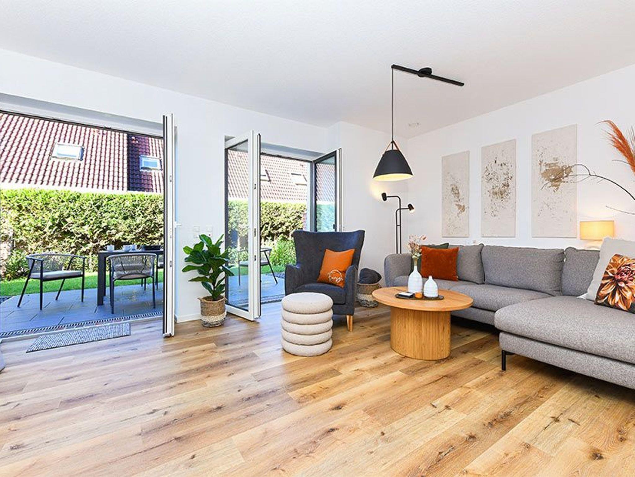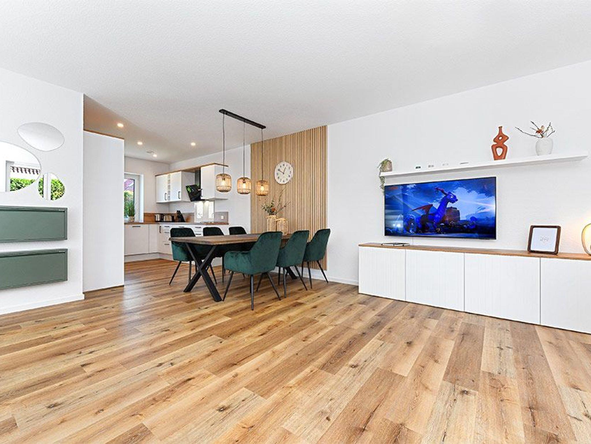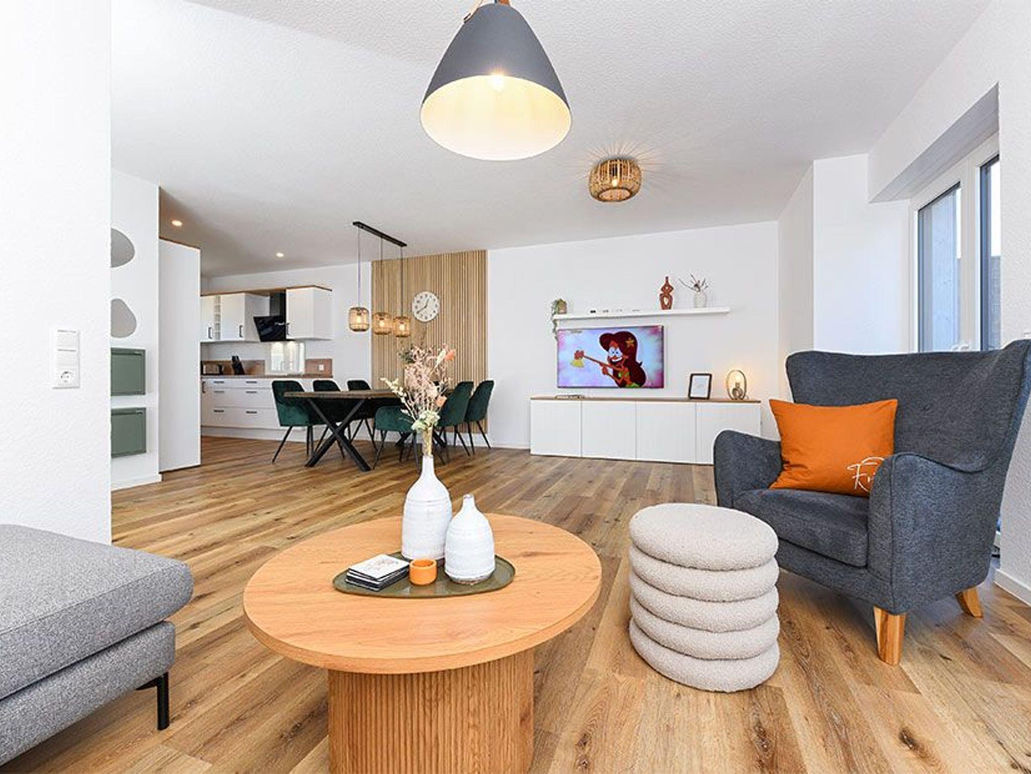 Wohnraum mit separatem Küchenteil bei offener Raumgestaltung