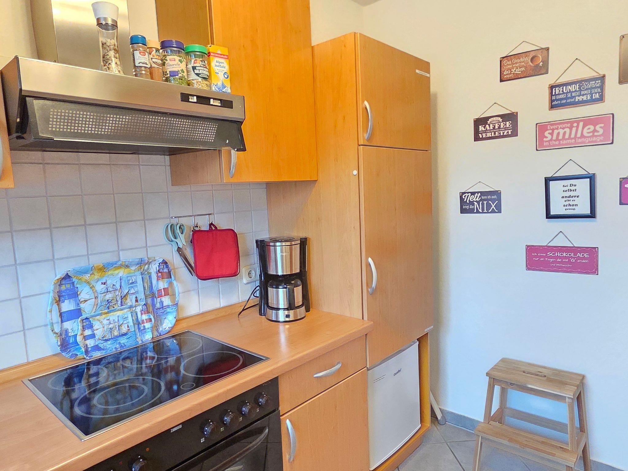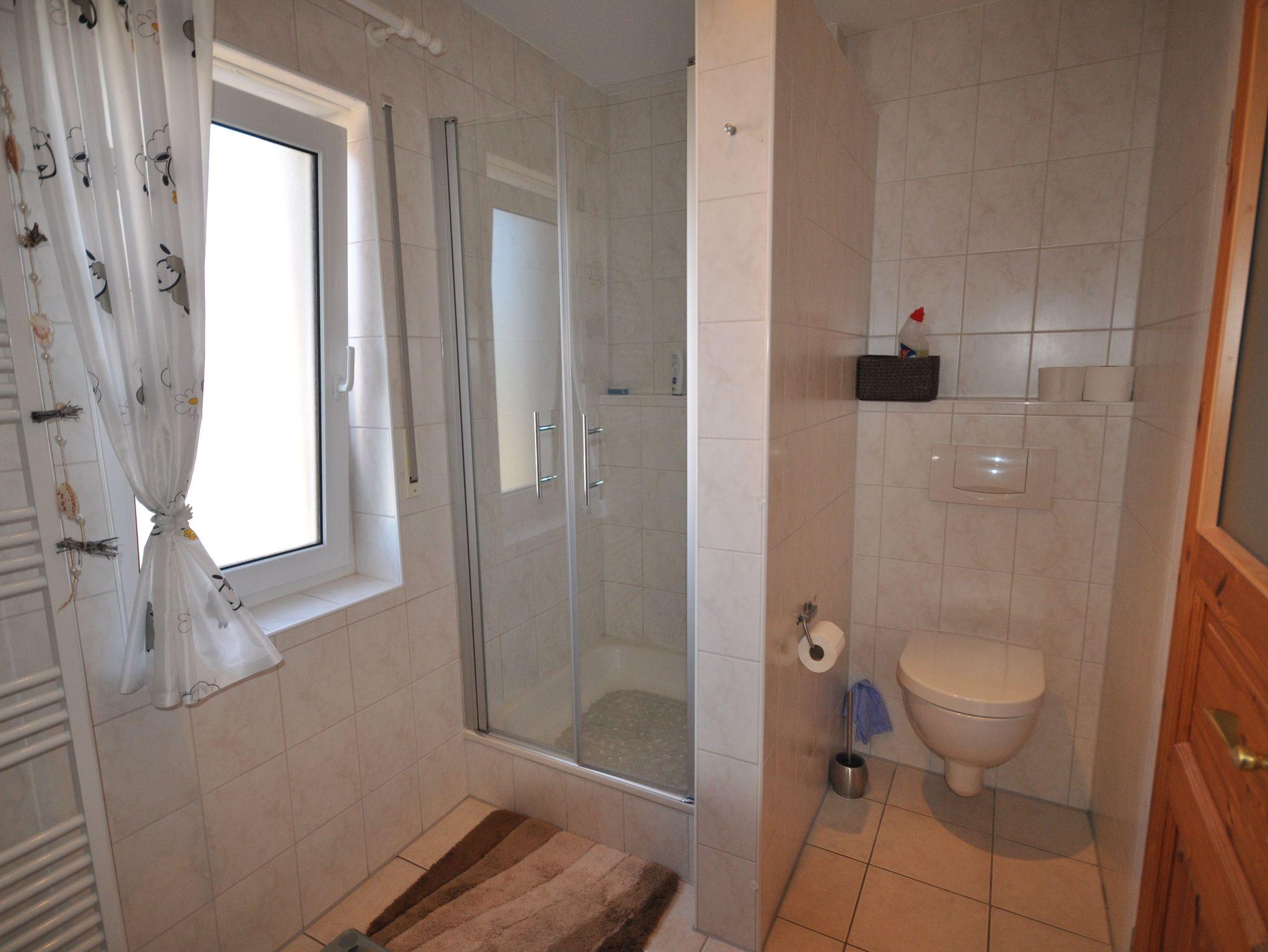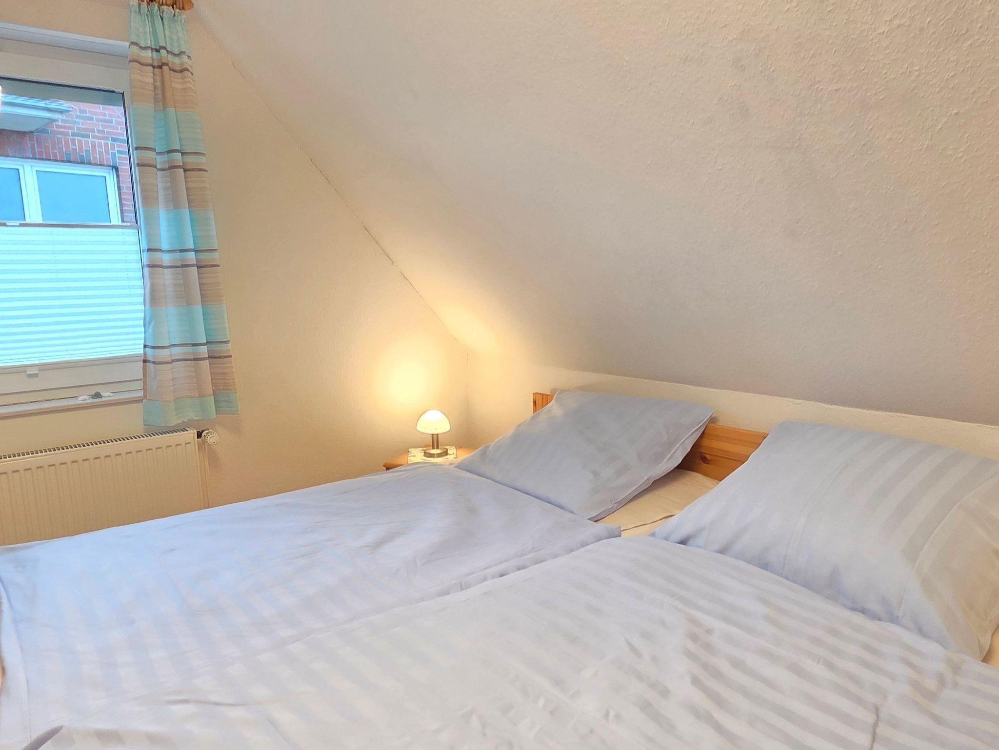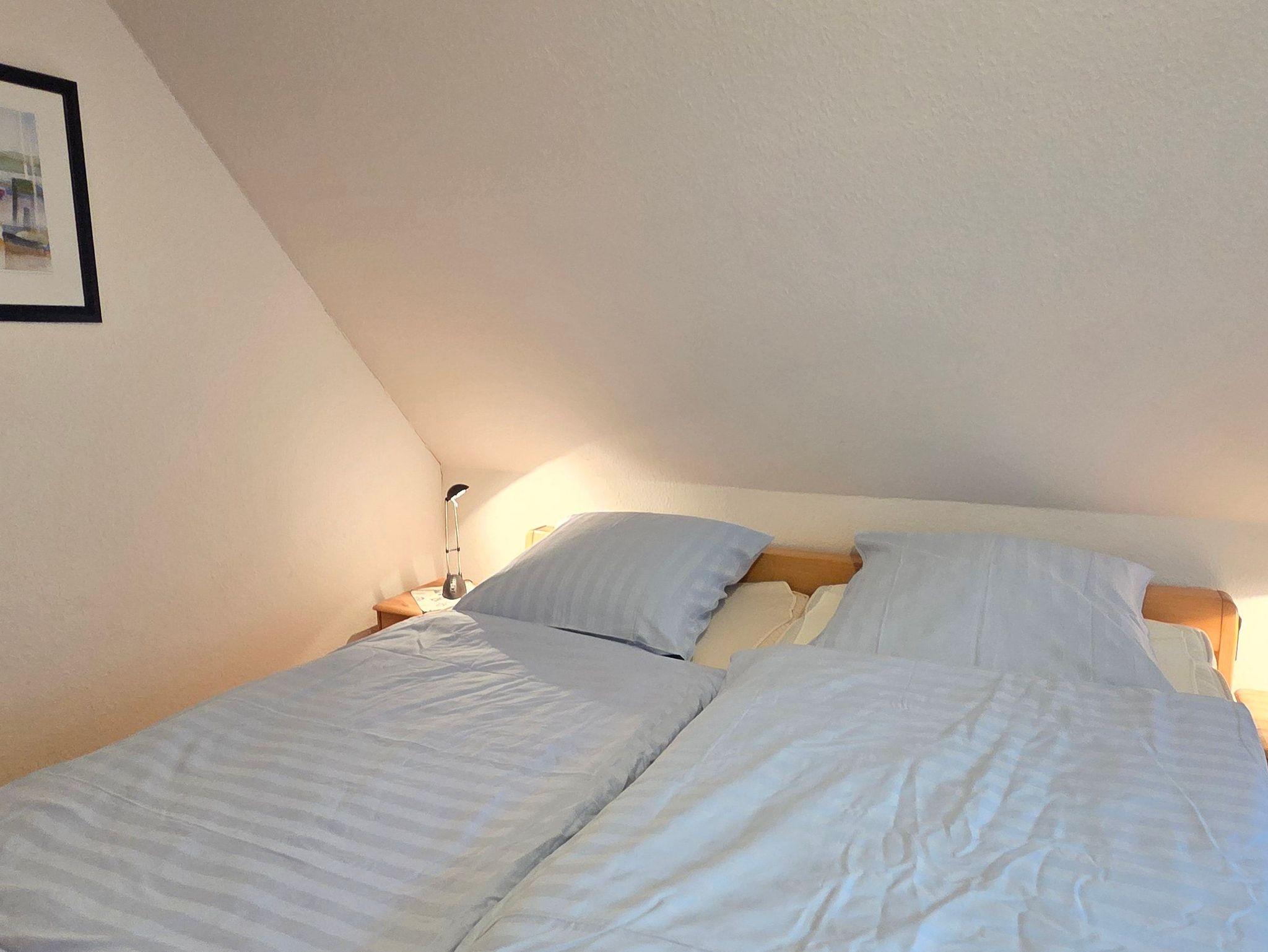 Das 4-Zimmer-Reihenendhaus bietet im Erdgeschoss ein gemütliches Wohnzimmer mit Kaminofen und Essbereich, eine separate Küche mit kleinem Esstisch, sowie ein Gäste-WC. Über eine offene Holztreppe gelangen Sie ins Obergeschoss. Hier befinden sich zwei Schlafzimmer und ein geräumiges Badezimmer mit Dusche und WC. Im ausgebauten Dachgeschoss ist ein weiteres Schlafzimmer vorhanden. Alle Fenster sind mit Rollläden, die Böden mit Fliesen bzw. PVC ausgestattet. Des Weiteren verfügt das Ferienhaus über 2 Fahrräder sowie einen Bollerwagen, auch WLAN kann kostenfrei genutzt werden.