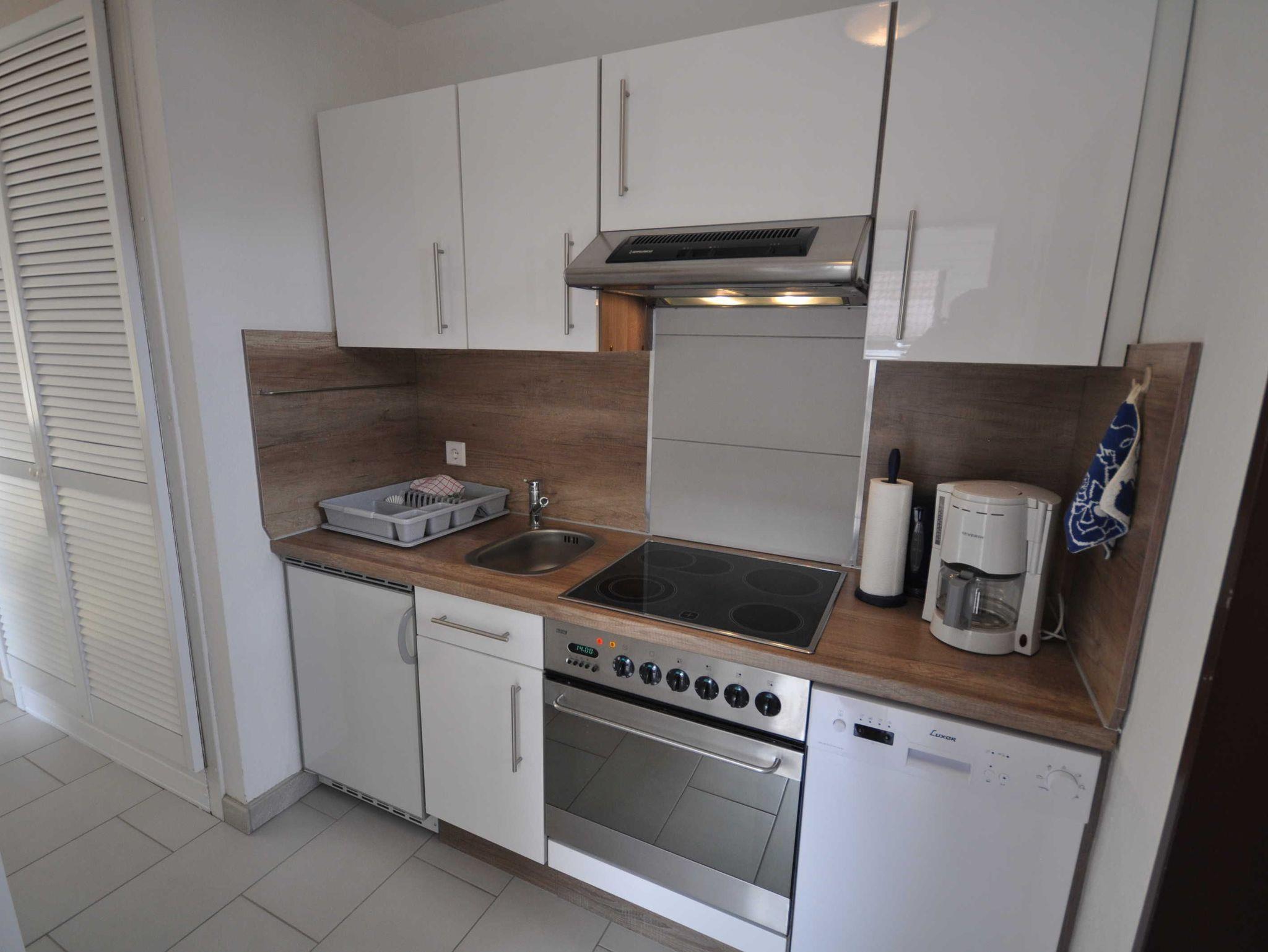 Diese etwa 48m² große, renovierte Obergeschosswohnung mit Balkon befindet sich in der 1. Etage und verfügt über einen lichtdurchfluteten Wohnbereich mit Couchgarnitur, einem Esstisch und eine integrierte Küchenzeile. Außerdem ist die Wohnung mit einem separaten Schlafzimmer mit einem Doppelbett, sowie mit einem im März 2018 sanierten Duschbad ausgestattet und bietet daher Platz für 2 Personen und ein Baby/Kleinkind. Auf den Böden sind Fliesen bzw. Laminat verlegt.