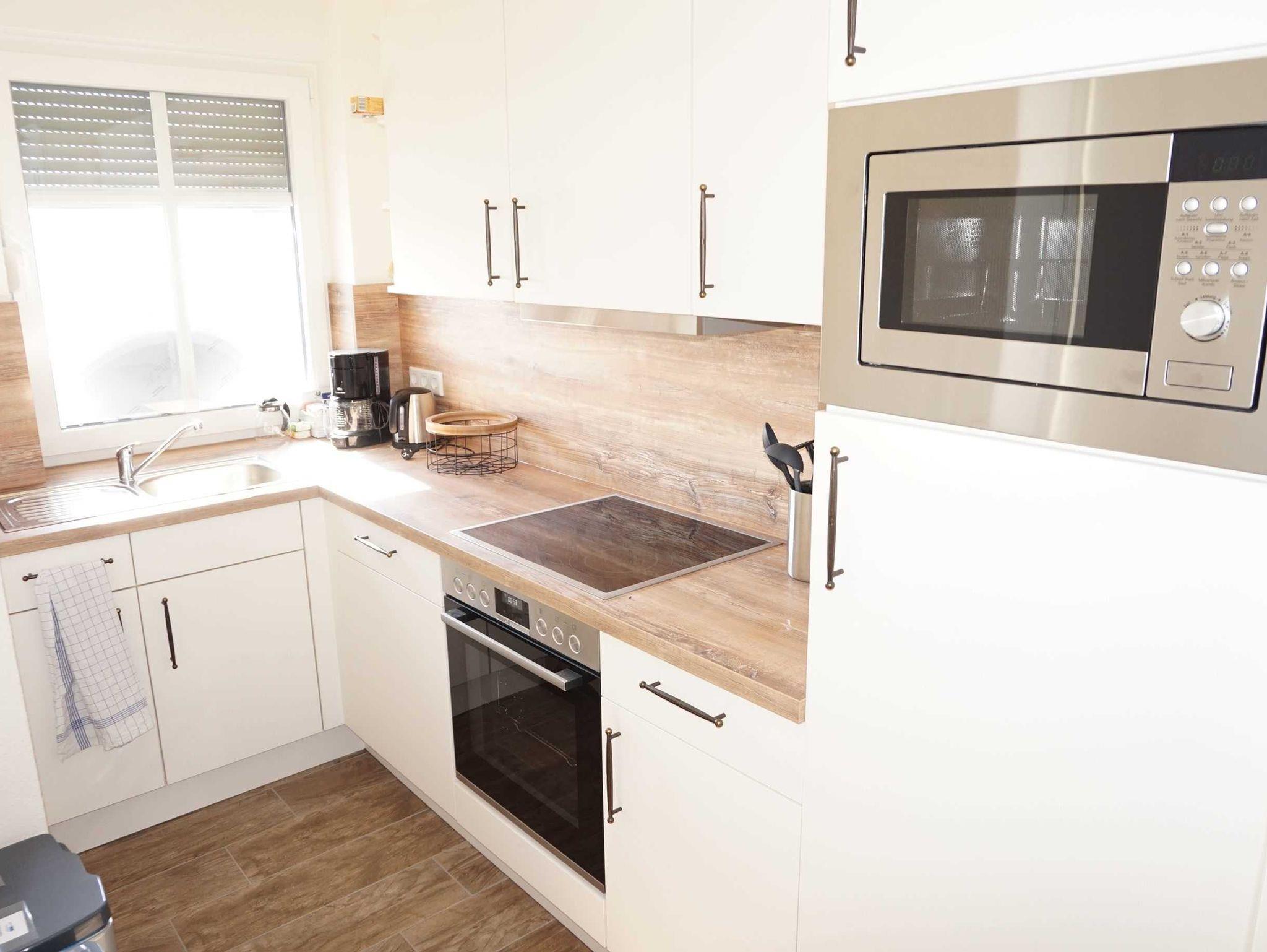 - Komplett-Küche: Ceran-Kochfeld, Backofen, Mikrowelle, Spülmaschine, Kaffee-Maschine, Toaster, Eier- und Wasserkocher