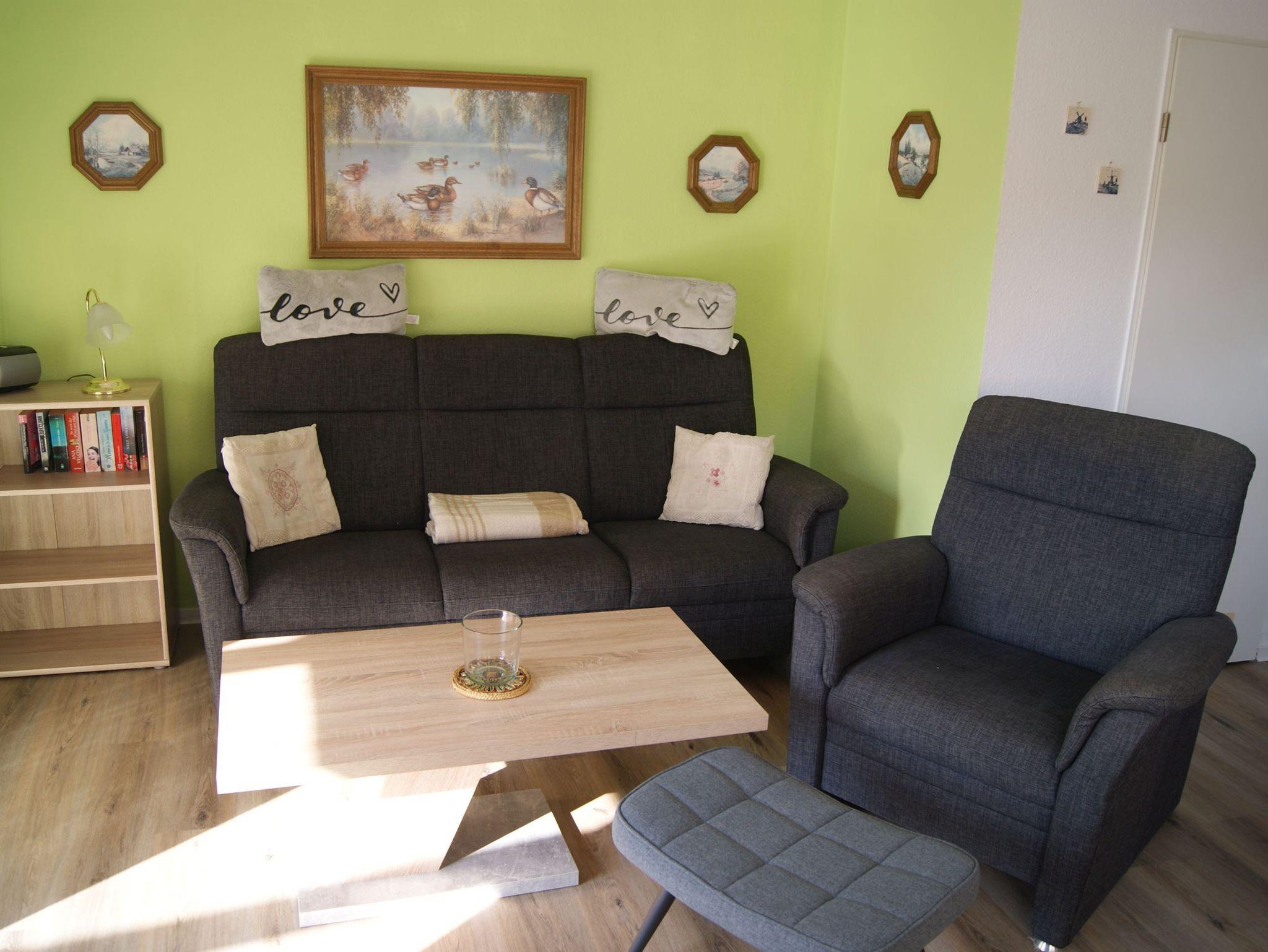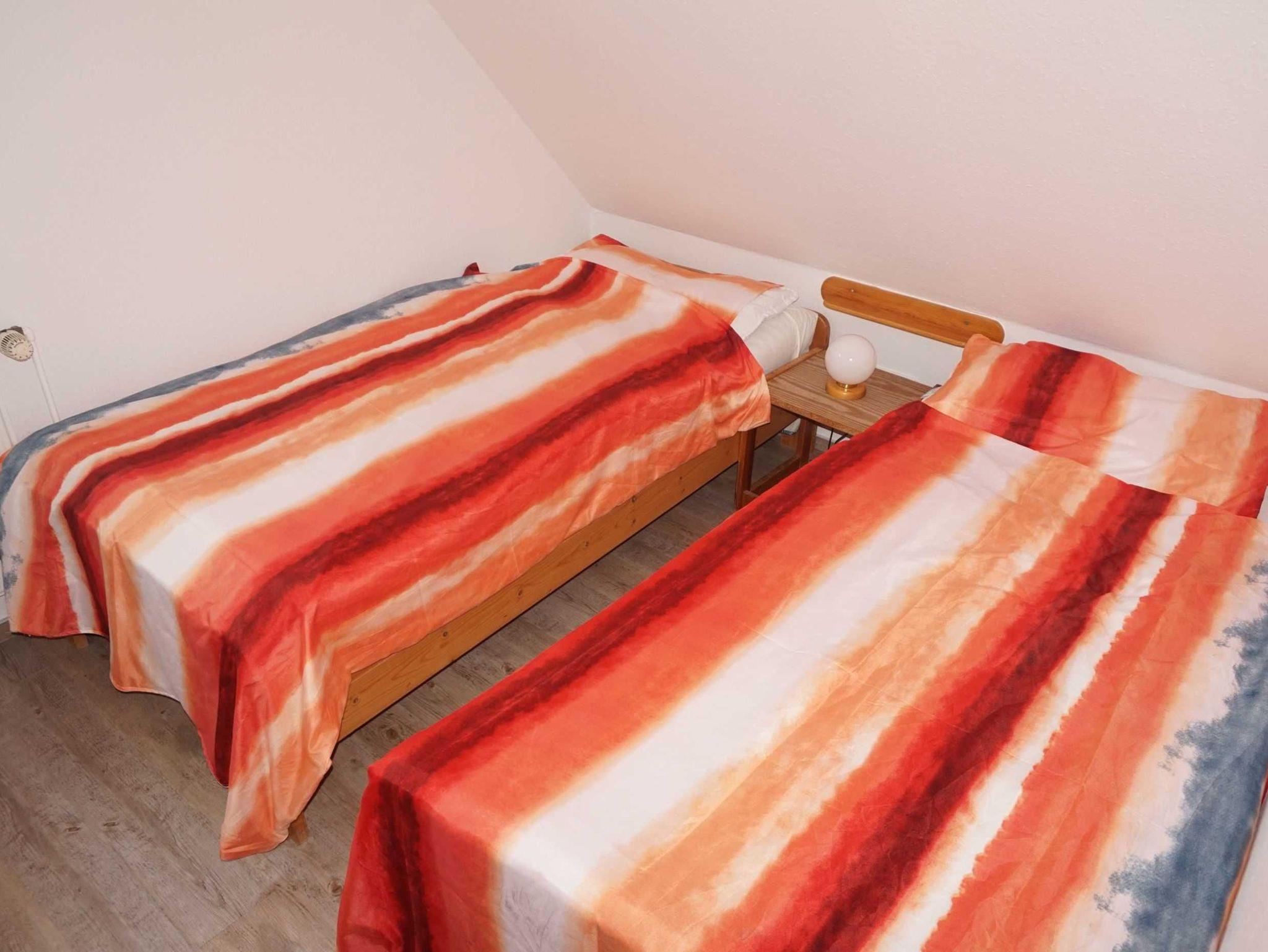 Doppelhaushälfte aufgeteilt in 3 Etagen: EG: sep. Küche, Wohn-Esszimmer, Gäste-WC, Abestellraum; OG: Elternschlafzimmer mit Kinderbett, Kinderzimmer mit 1 Bett, Bad mit Dusche, WC, Waschmaschine und Wäschetrockner; Dachgeschoß: mit 2 Betten. Vermietungen Juli und August nur von Samstag zu Samstag. WLAN im Haus. Bettwäsche und Handtücher bitte mitbringen. Alle Preise zzgl. Gästebeitrag.