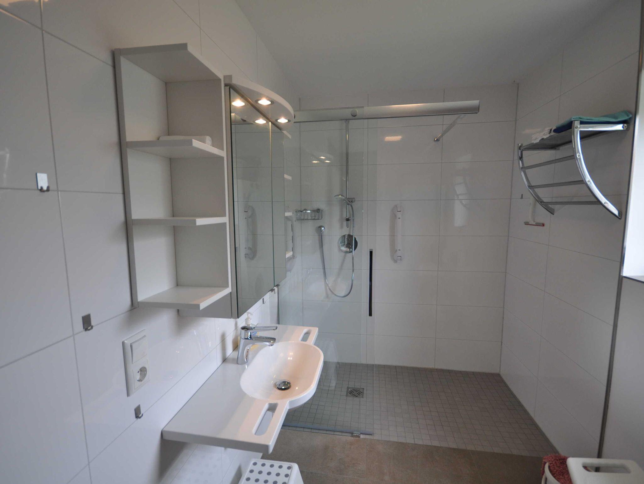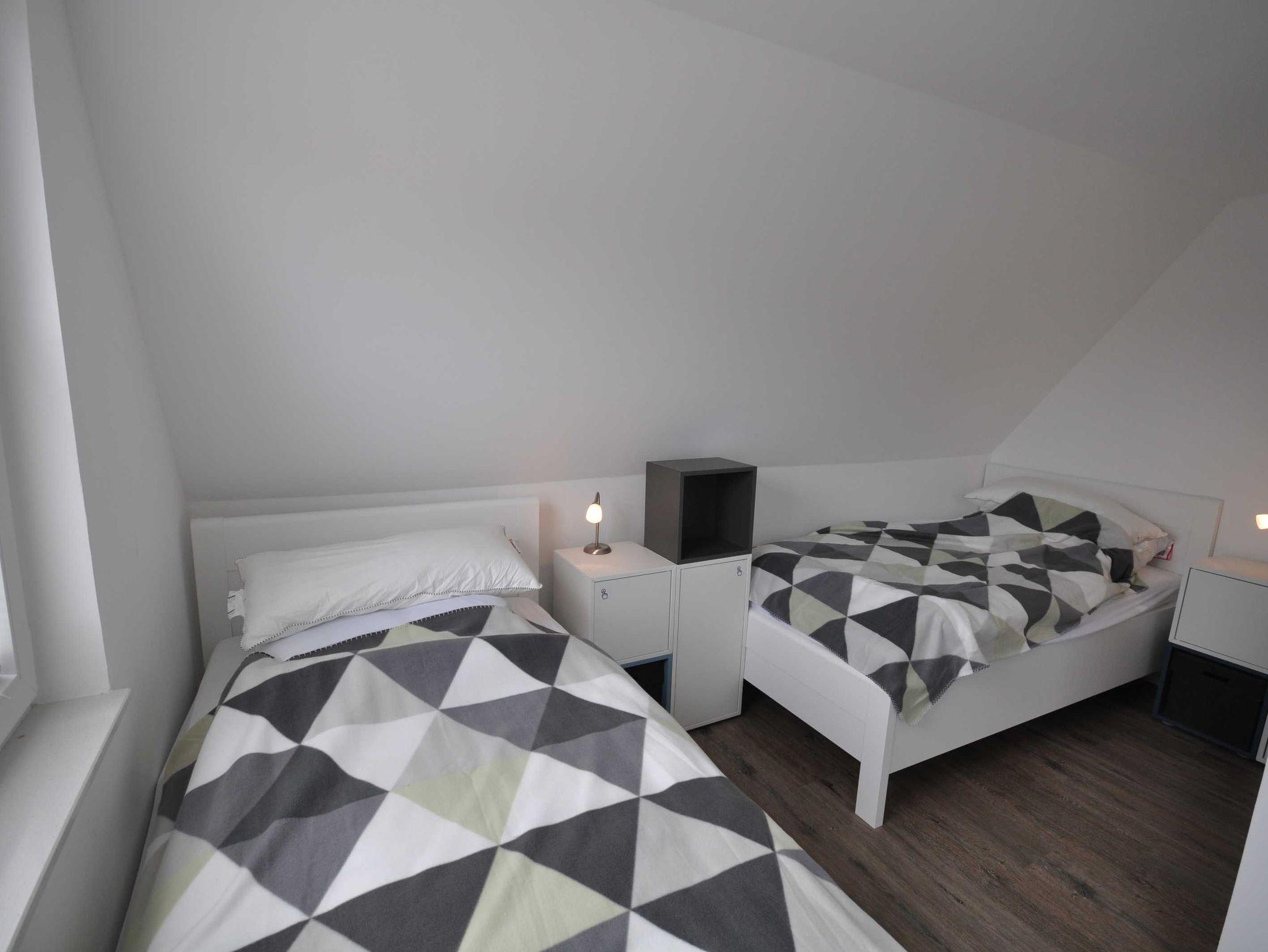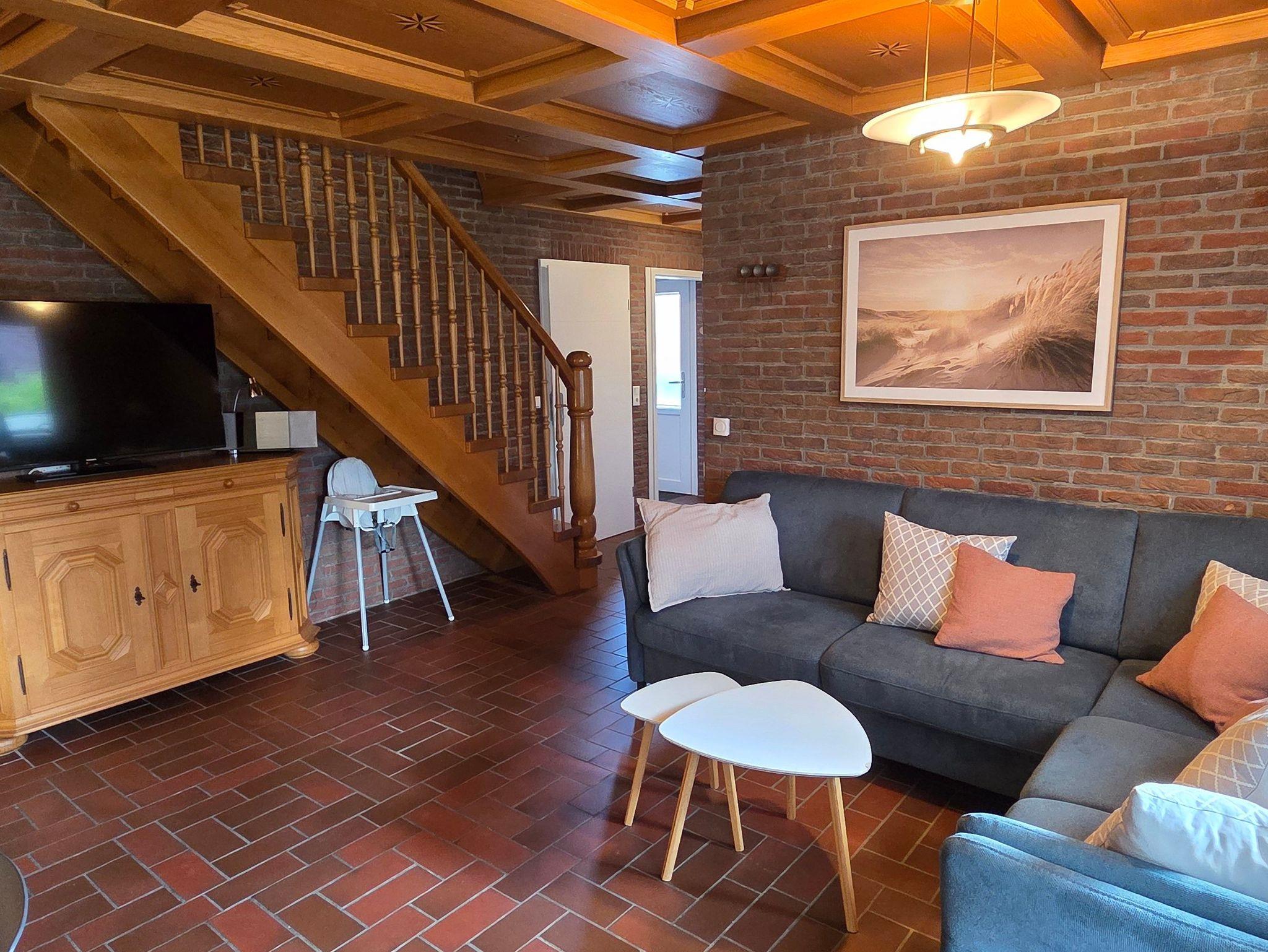 Das Fereinhaus verfügt im Erdgeschoss über einen großzügigen Wohn- und Essbereich, einer separaten Küche sowie über ein Schlafzimmer mit einem Doppelbett. Ebenso befindet sich hier ein geräumiges, behindertenfreundliches Badezimmer mit begehbarer Dusche und WC. Eine offene Holztreppe führt zum Obergeschoss. Hier befinden sich zwei Schlafzimmer (je ein Schlafzimmer mit zwei Einzelbetten, ein Schlafzimmer davon zusätzlich mit Wickelkommode) sowie ein WC. Ein Großteil der Fenster sind mit Rollläden ausgestattet. Auf den Böden sind Fliessen bzw. Vinyl verlegt. WLAN steht Ihnen kostenfrei zur Verfügung. Eine attraktive Ausstrahlung sorgt für entsprechende Wohnqualität. Gerne können Sie auch Ihren Vierbeiner mitbringen.